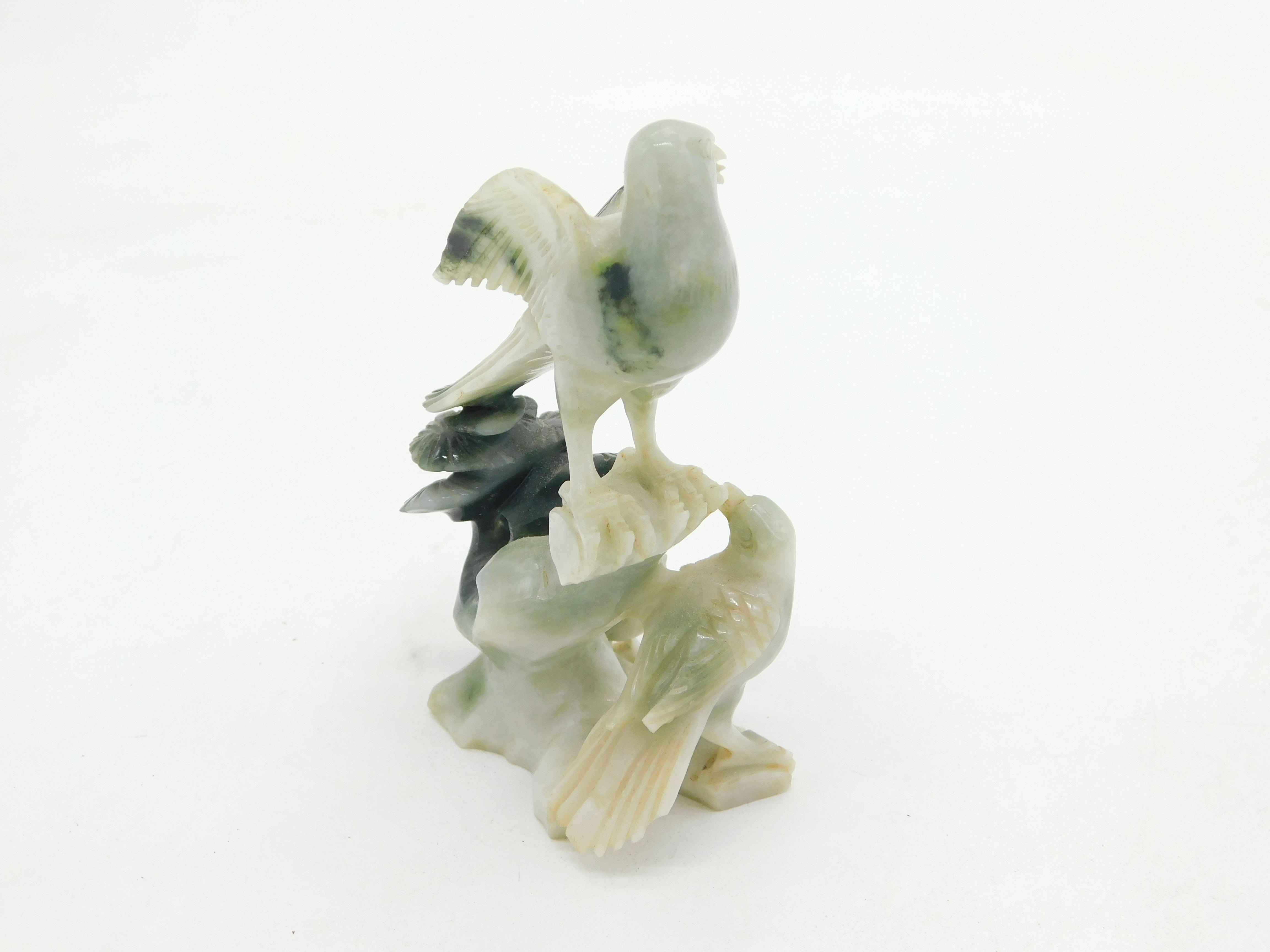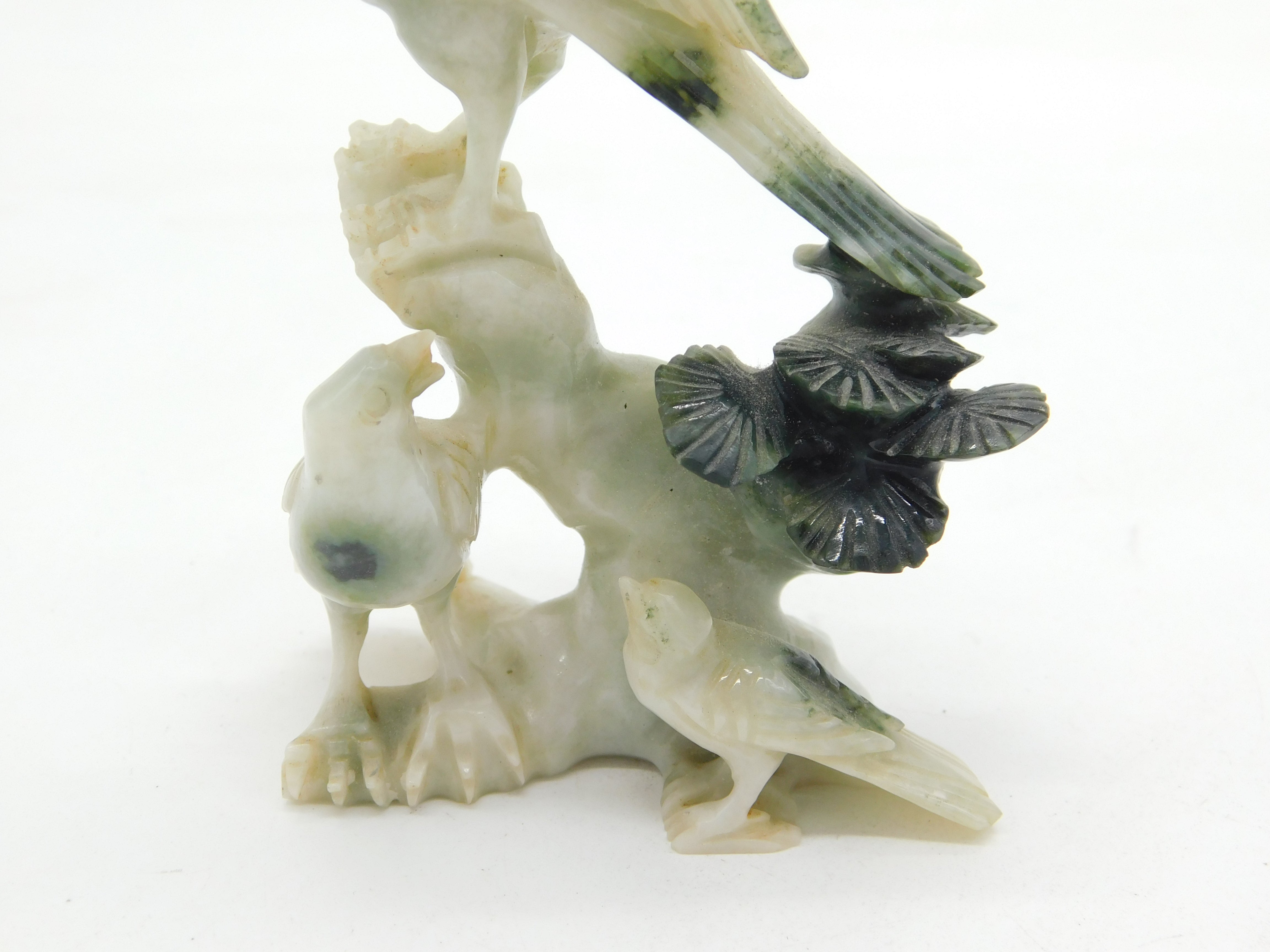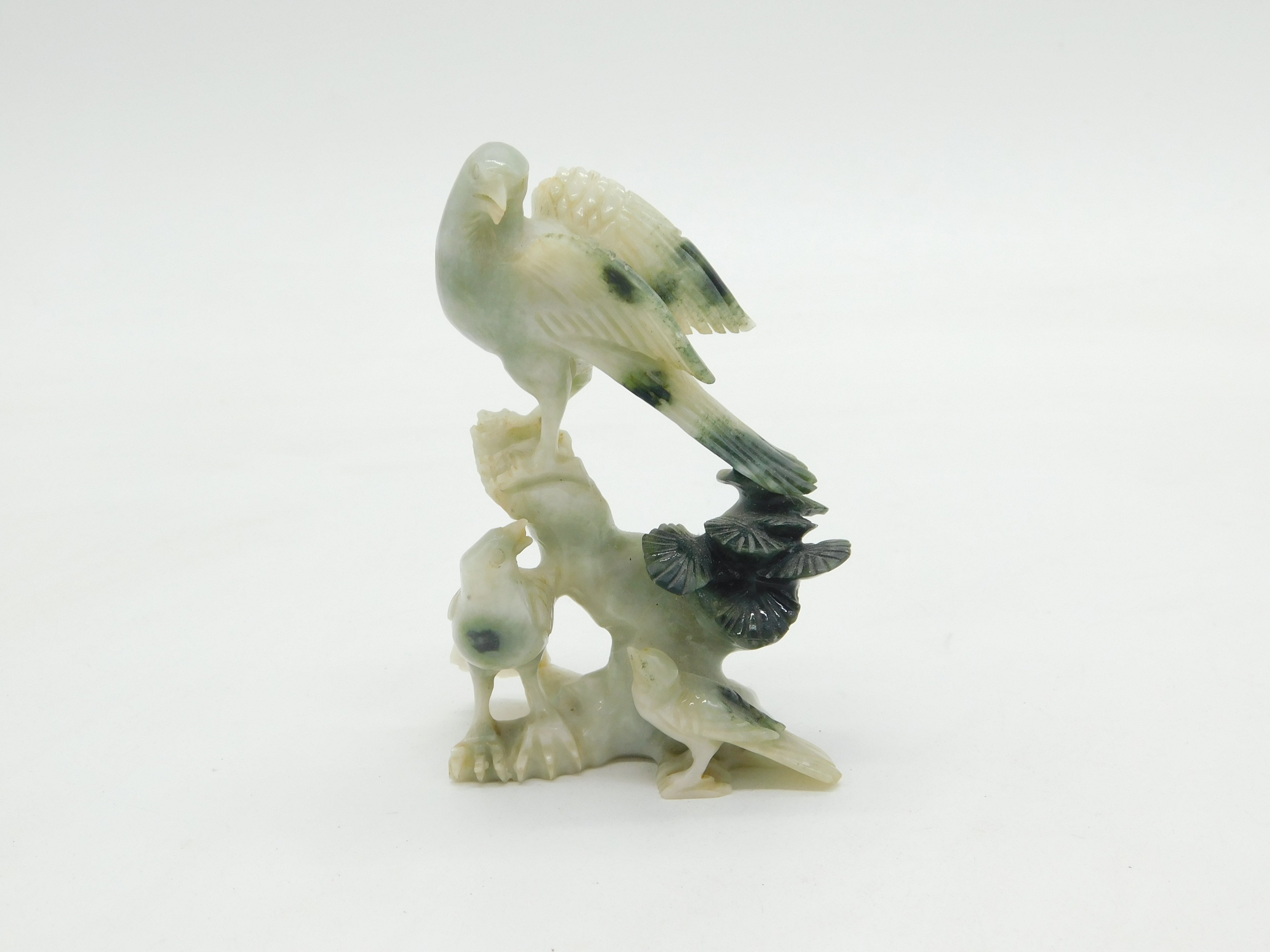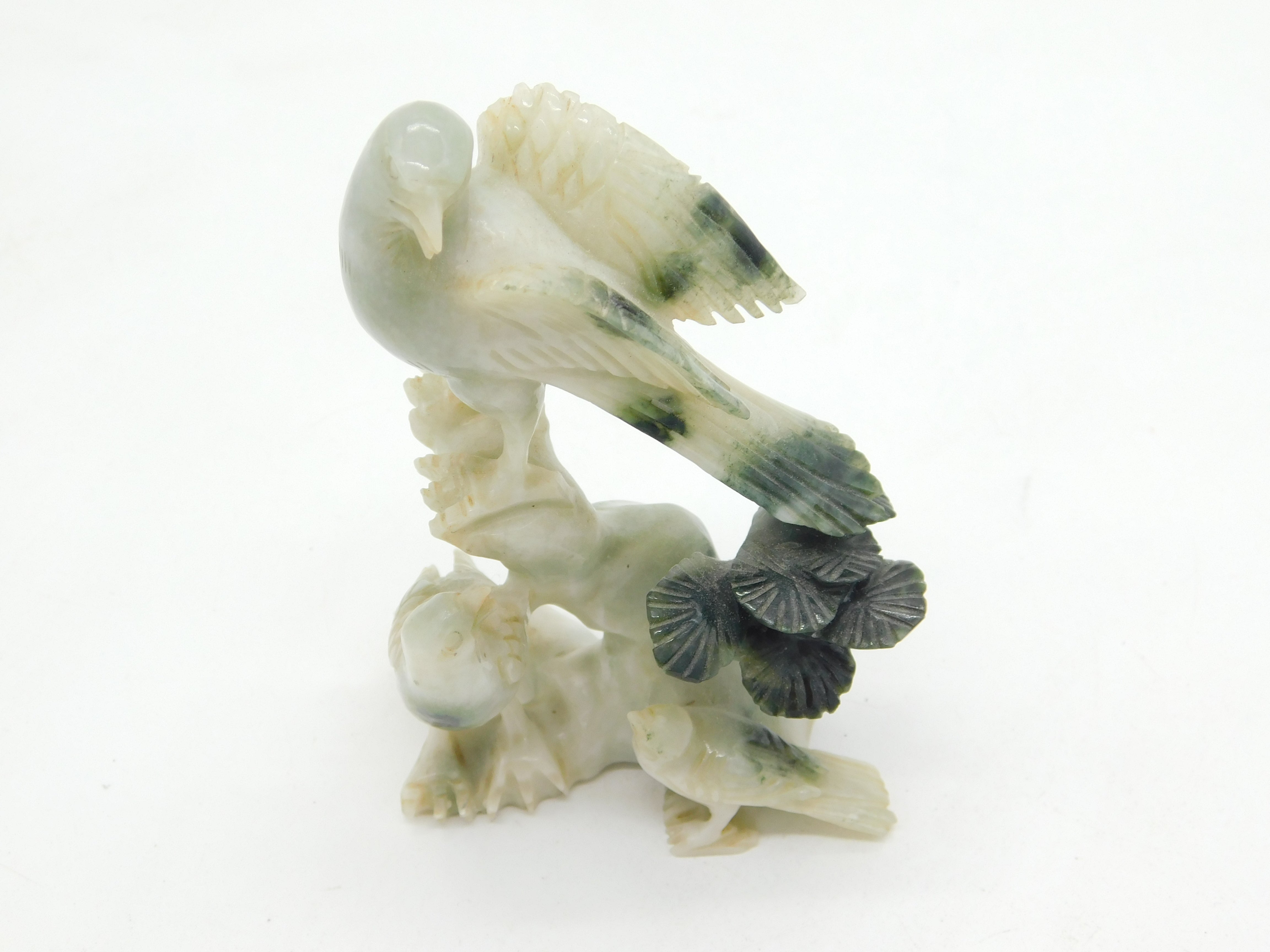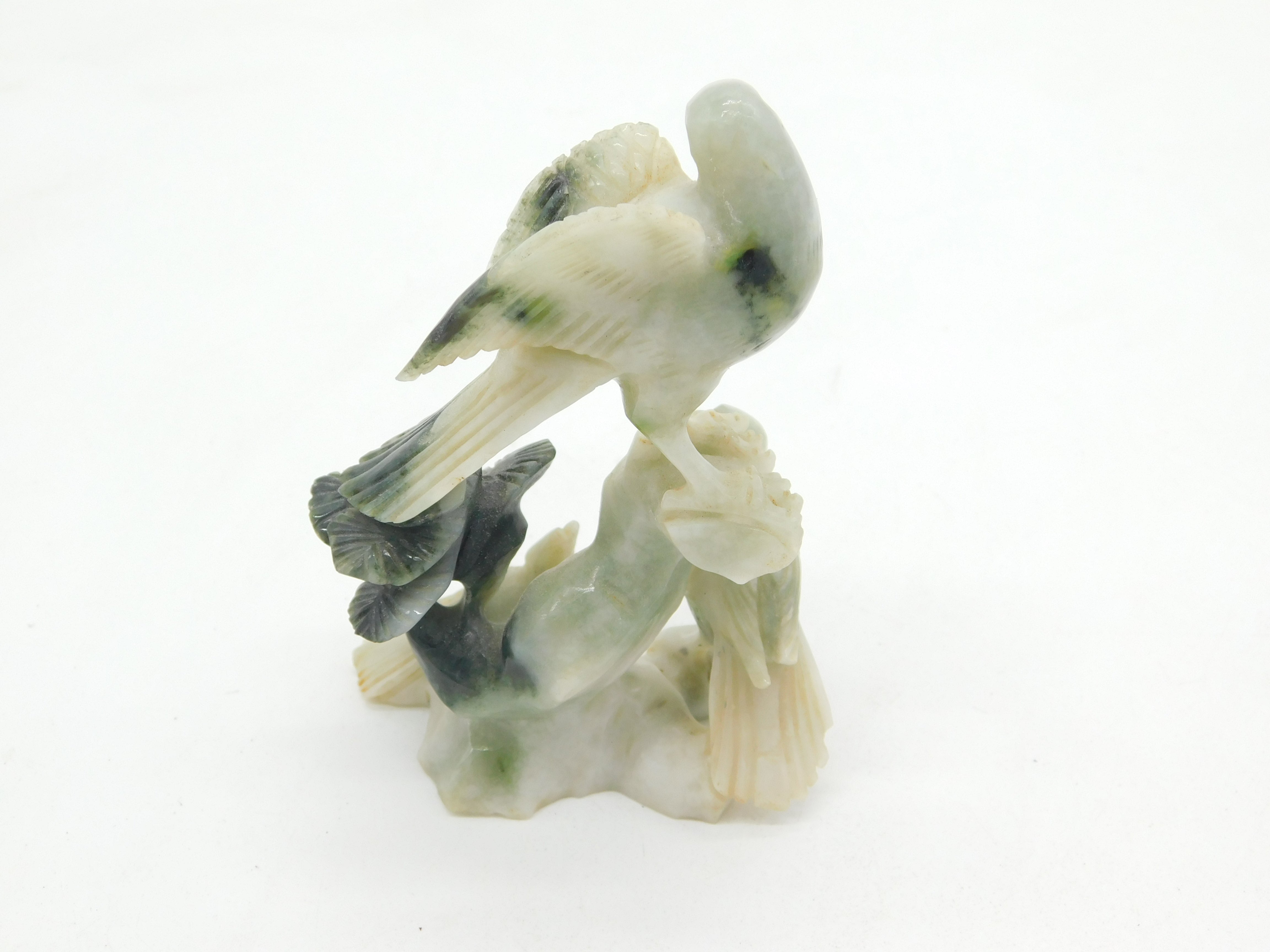 19th Century Chinese Carved Jade Bird & Floral Group Ornament Antique c1880