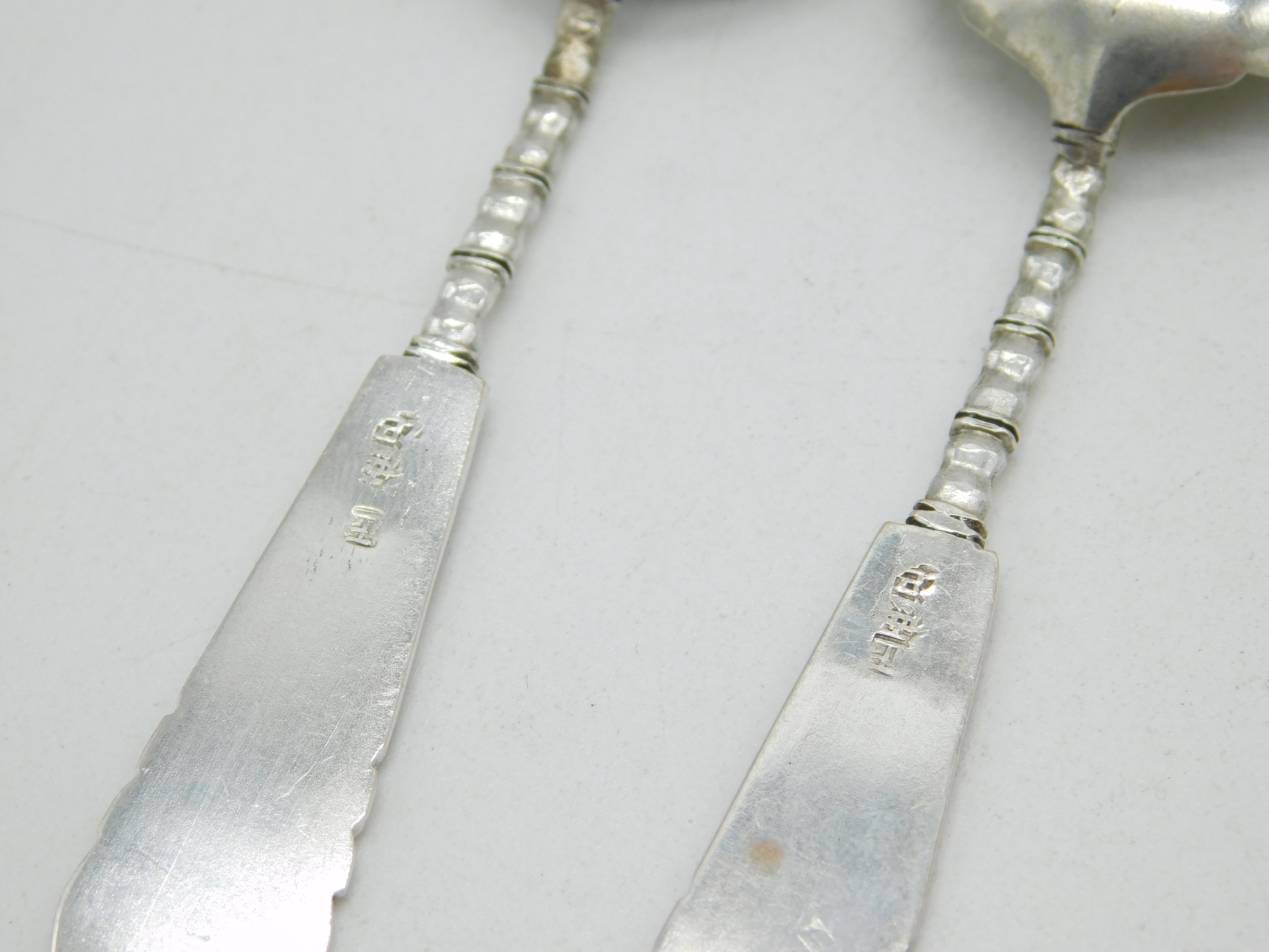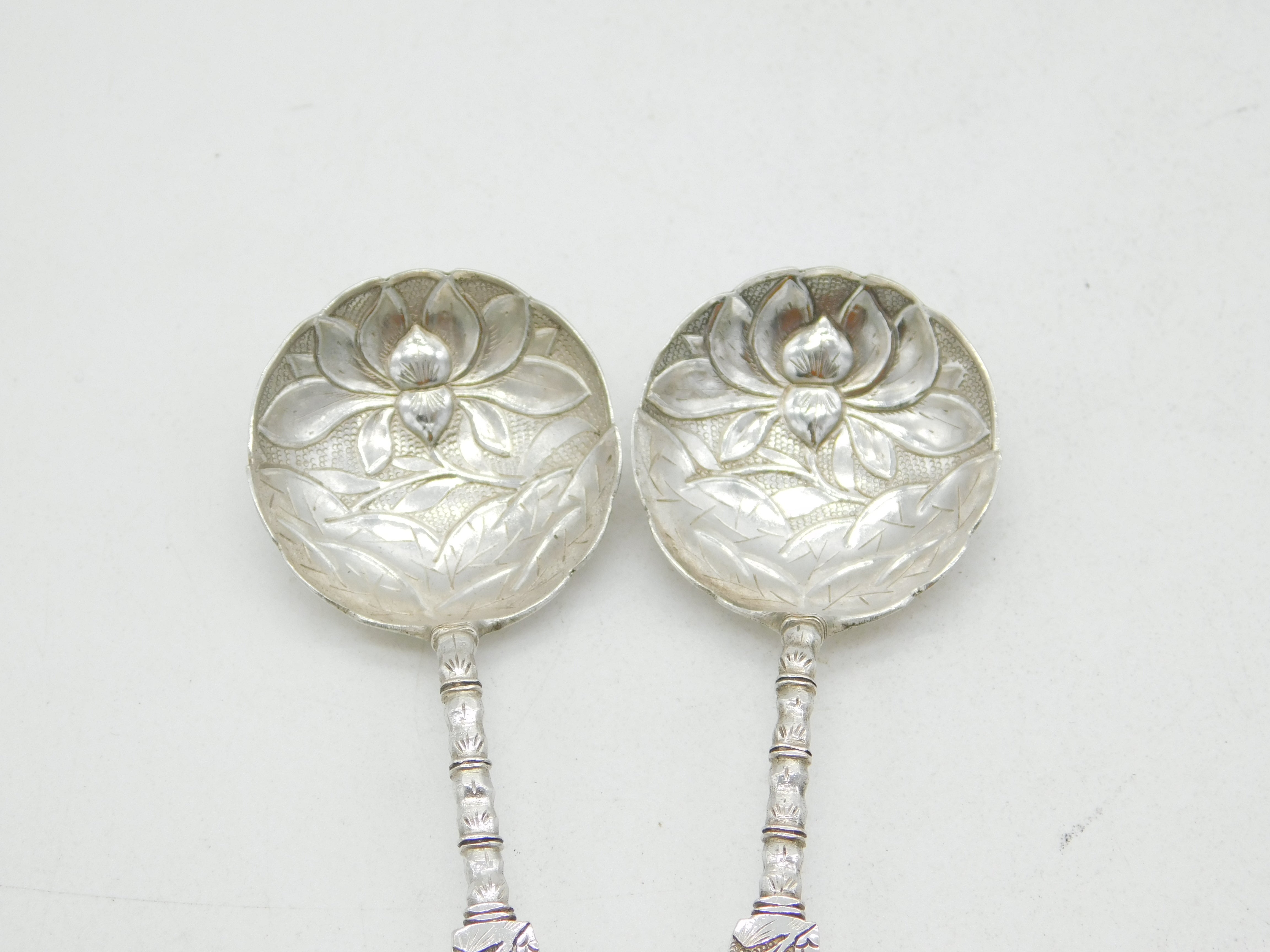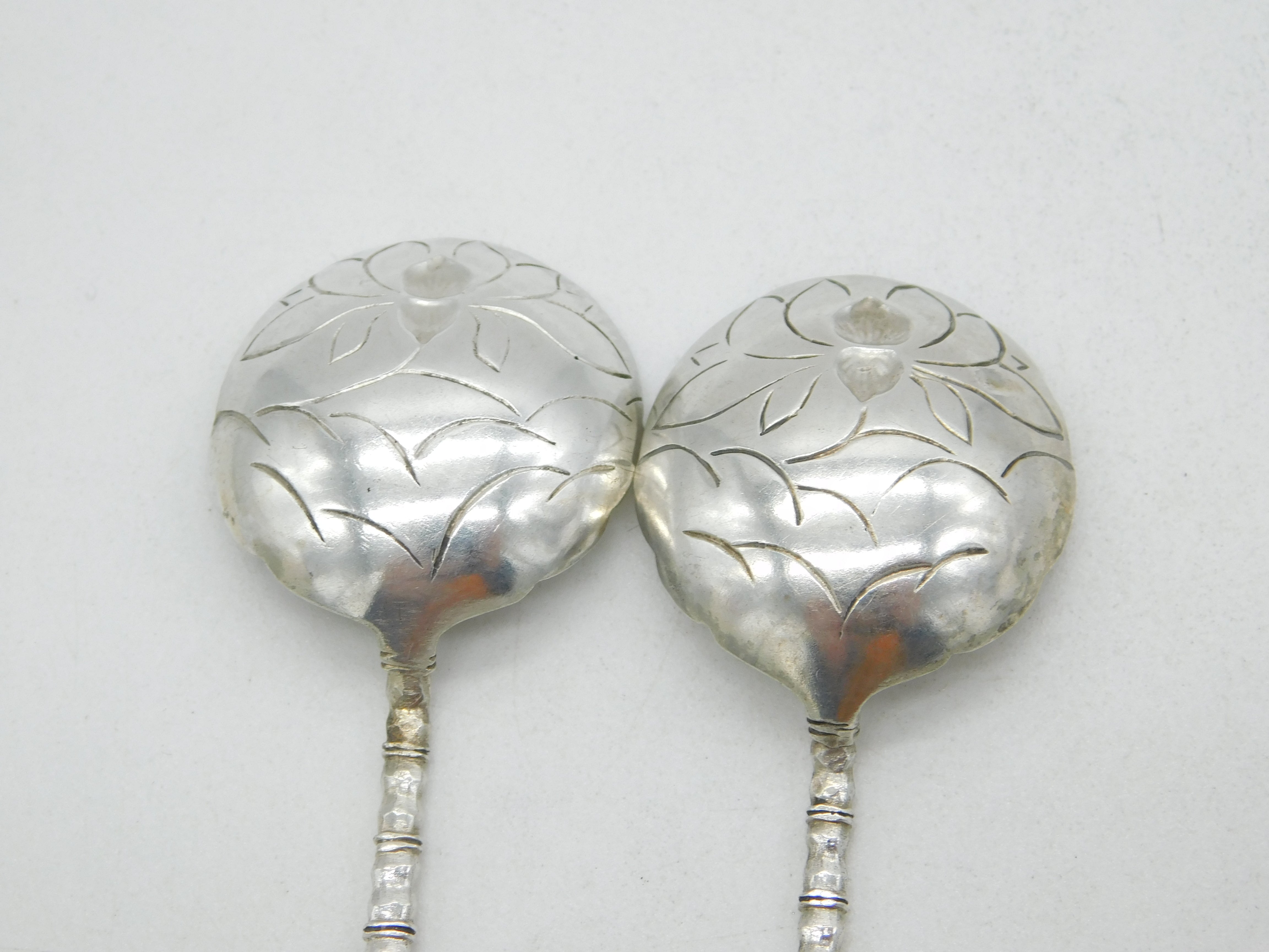 19th Century Chinese Pair of Sterling Silver Floral Teaspoons Antique c1880