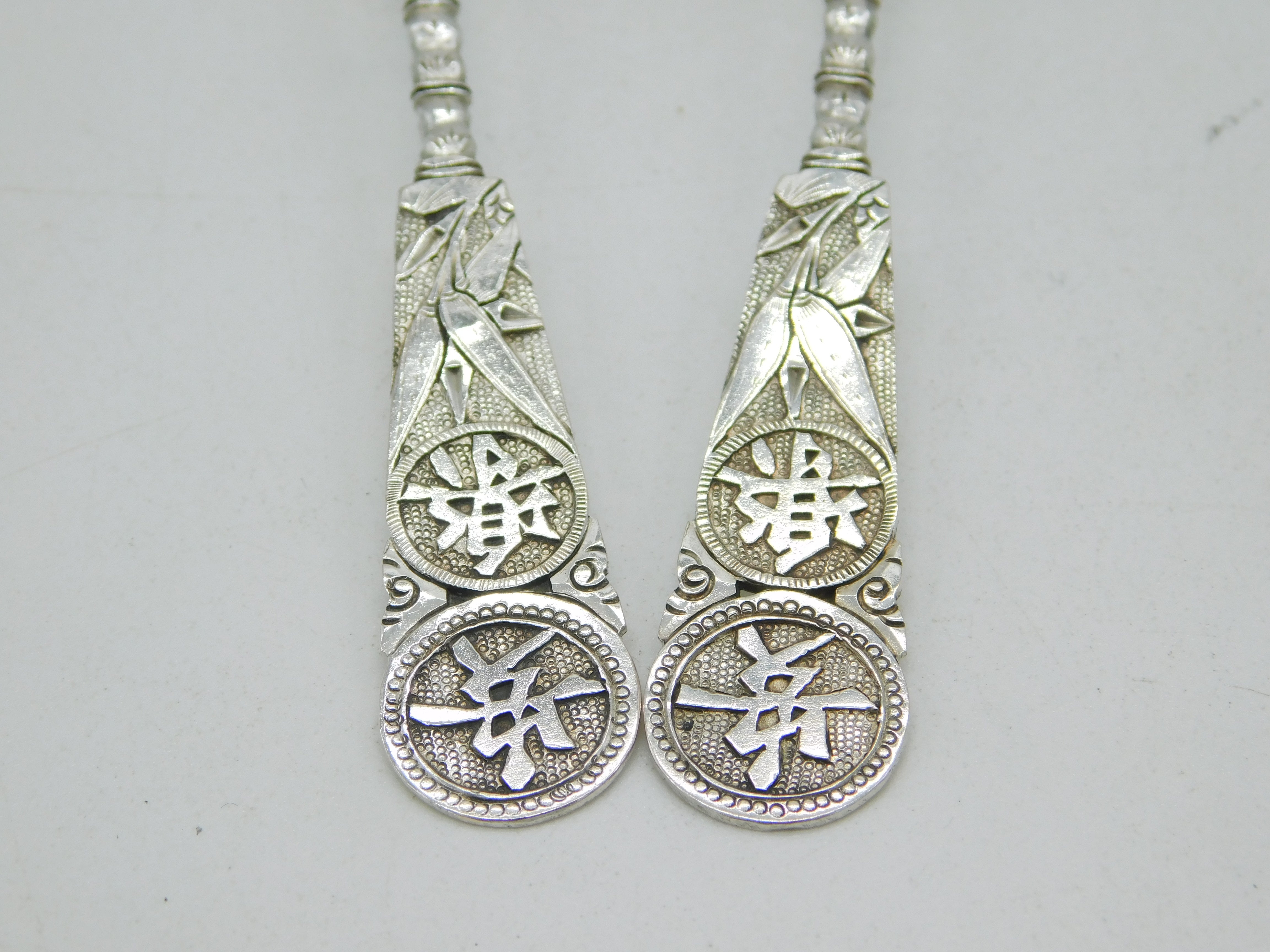 Details: A fantastic and wonderfully designed antique 19th century Chinese sterling silver pair of beautifully decorated teaspoons hallmarked to the reverse c1880. This is a wonderful item that would make a perfect gift or addition to any collection. We are more than happy to provide XRF reports for items upon request.