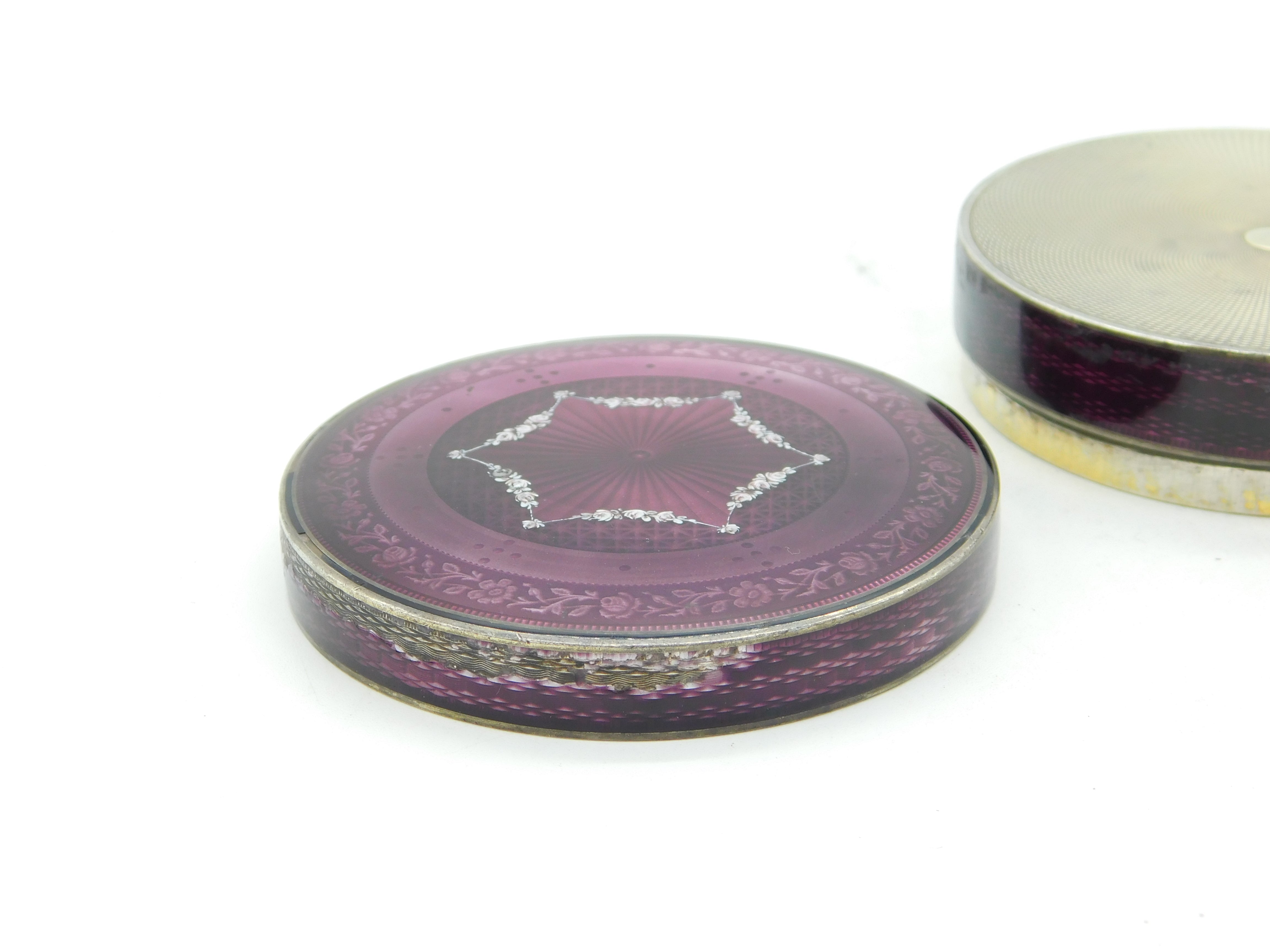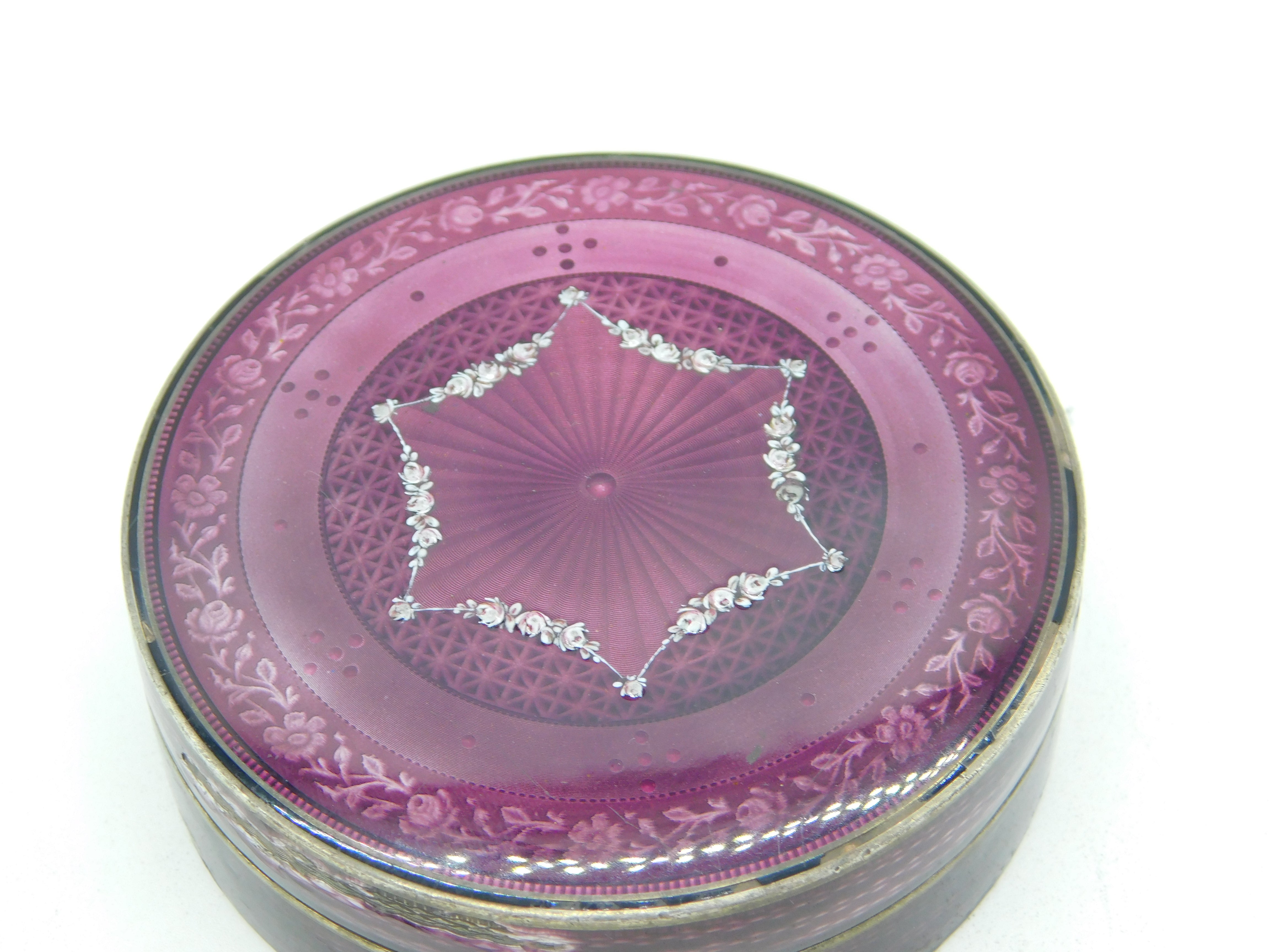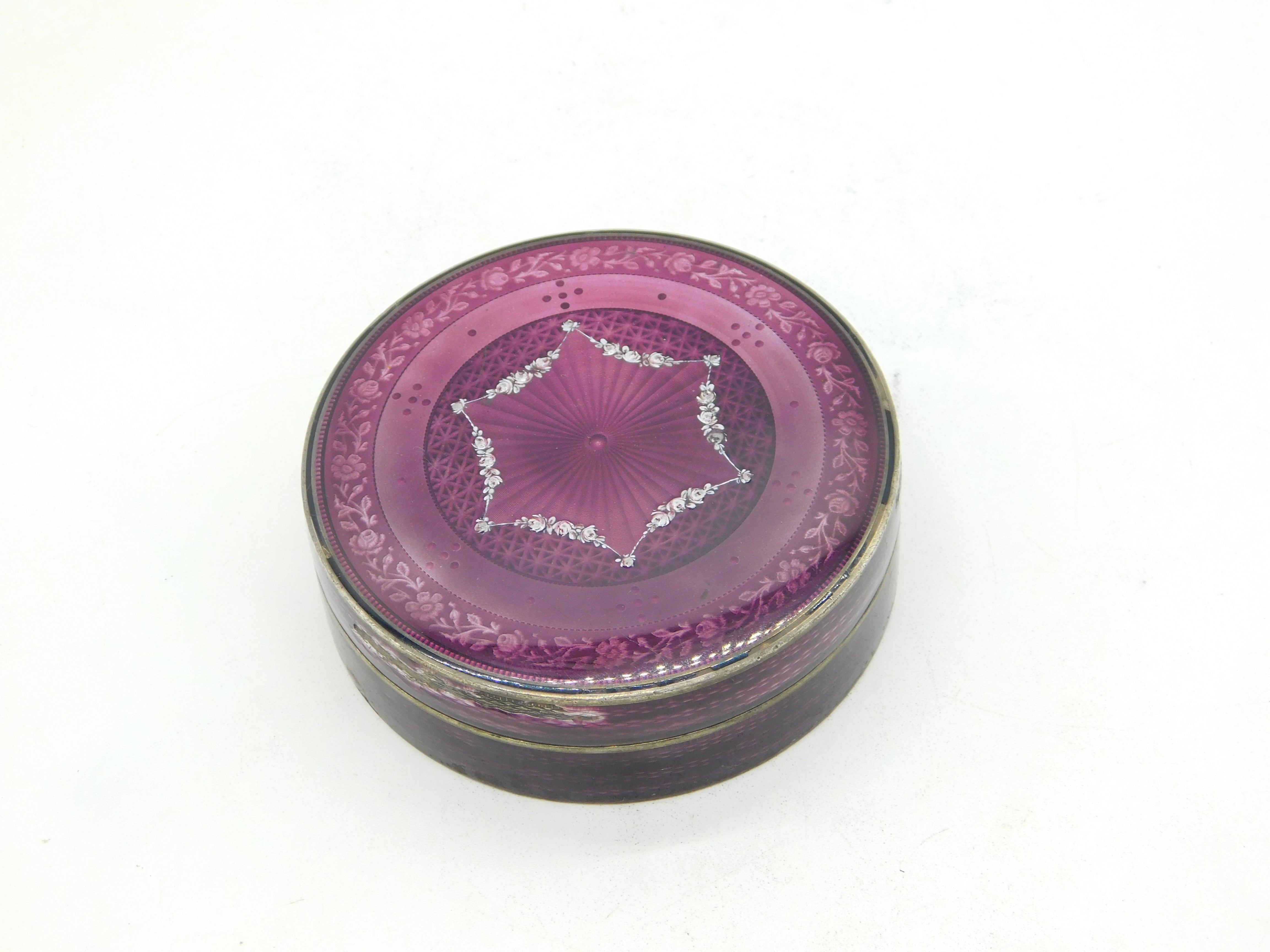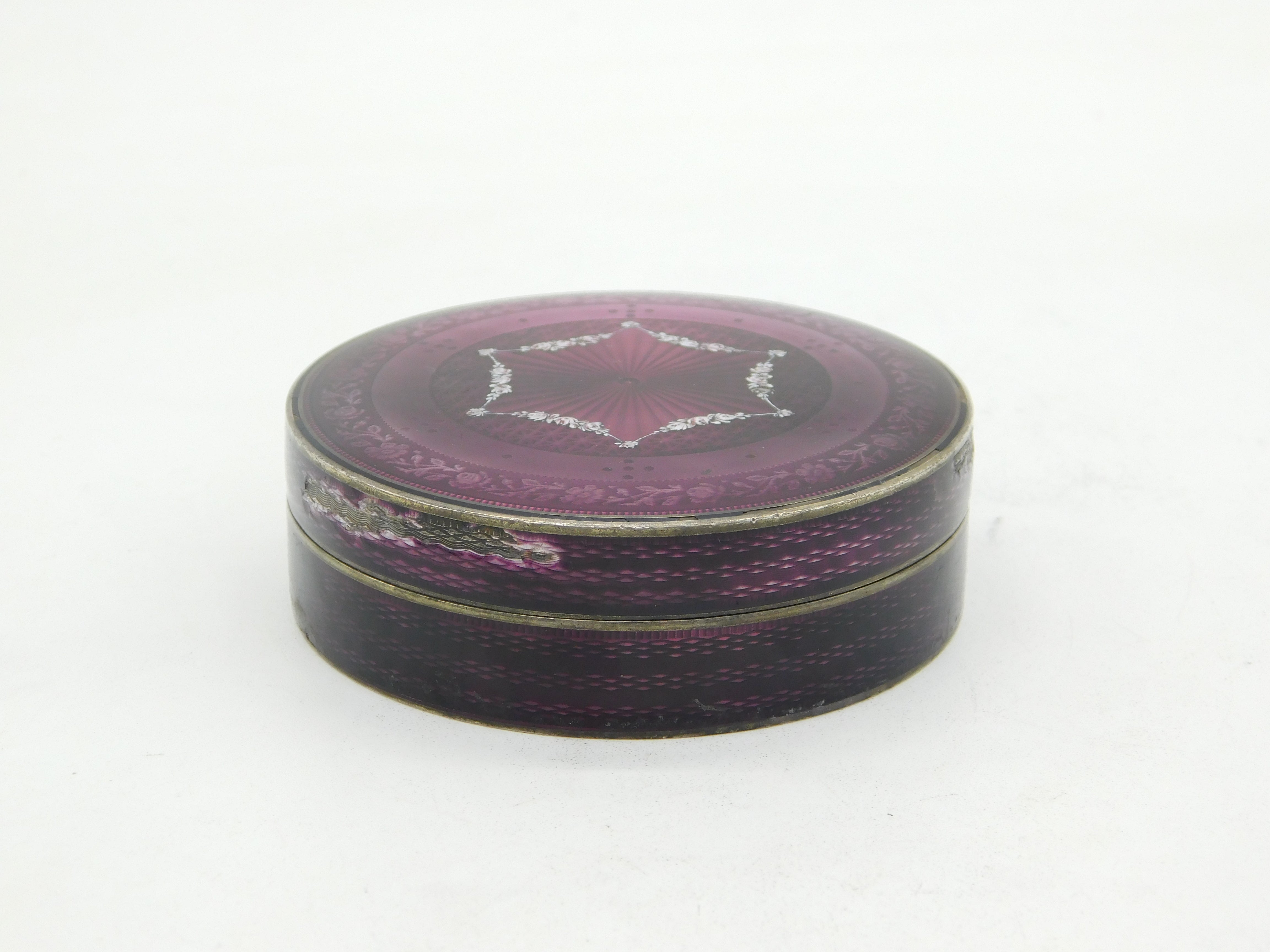 19th Century French .950 Silver Purple-White Guilloche Enamel Jewellery Box c1860