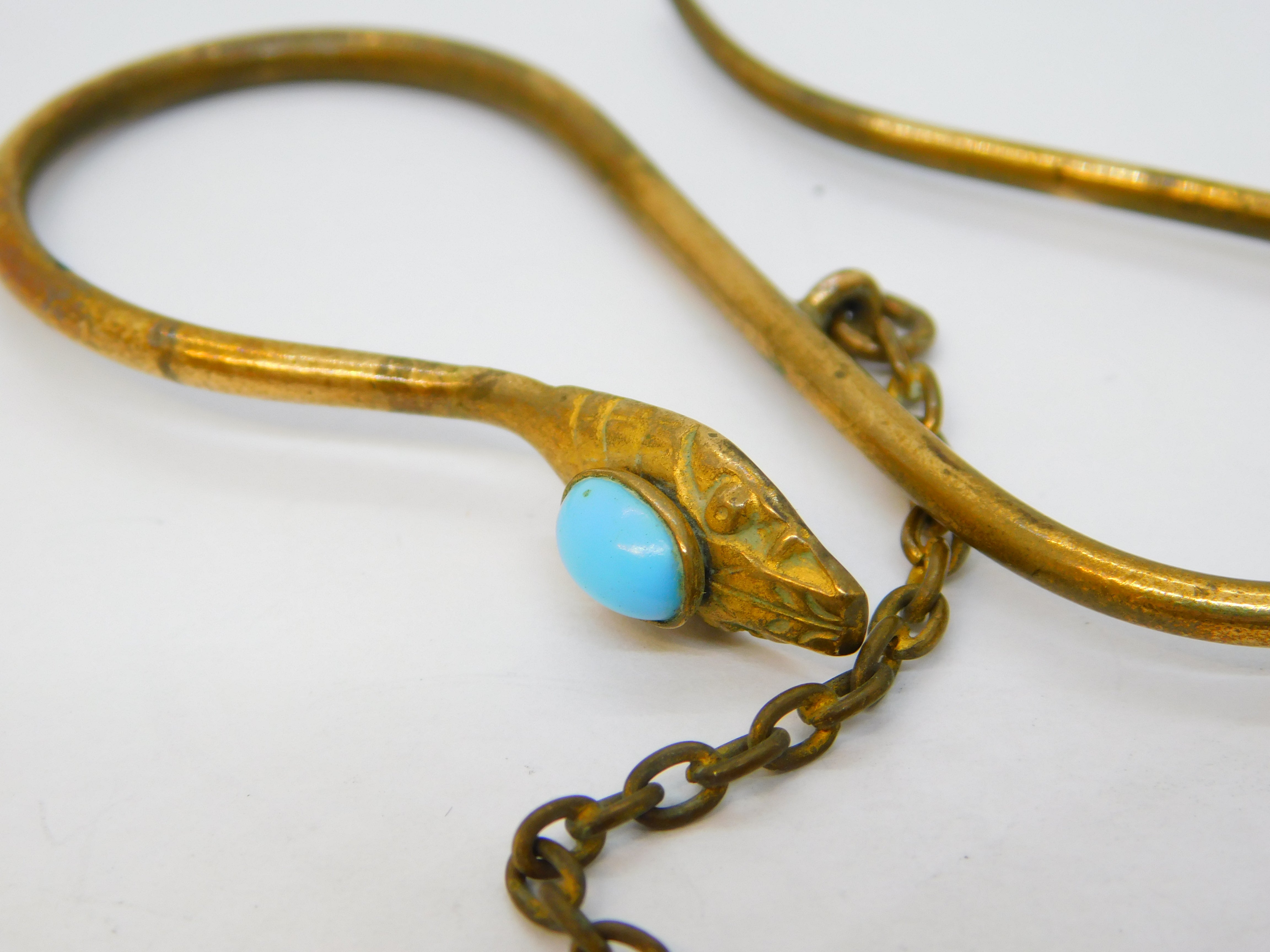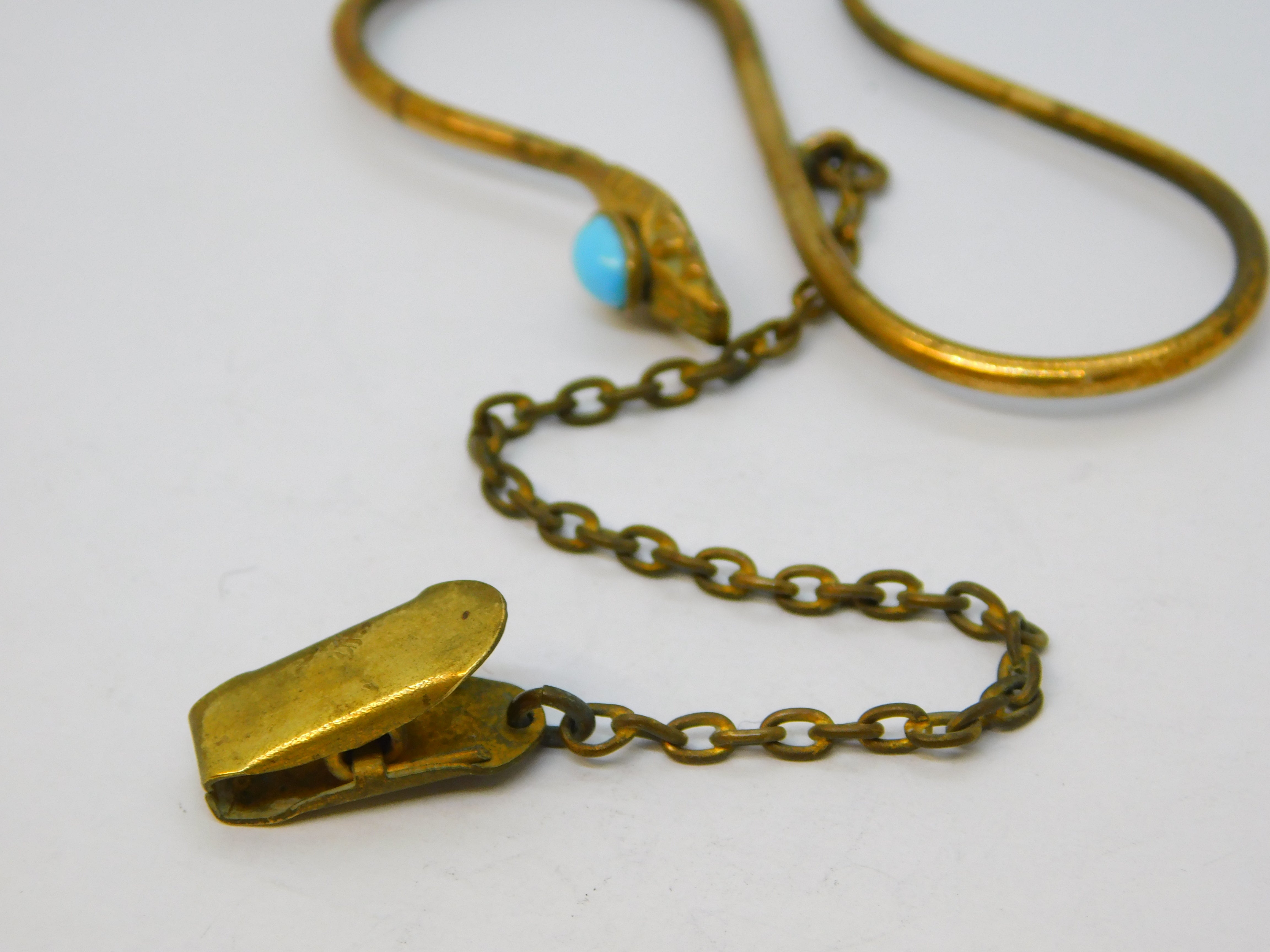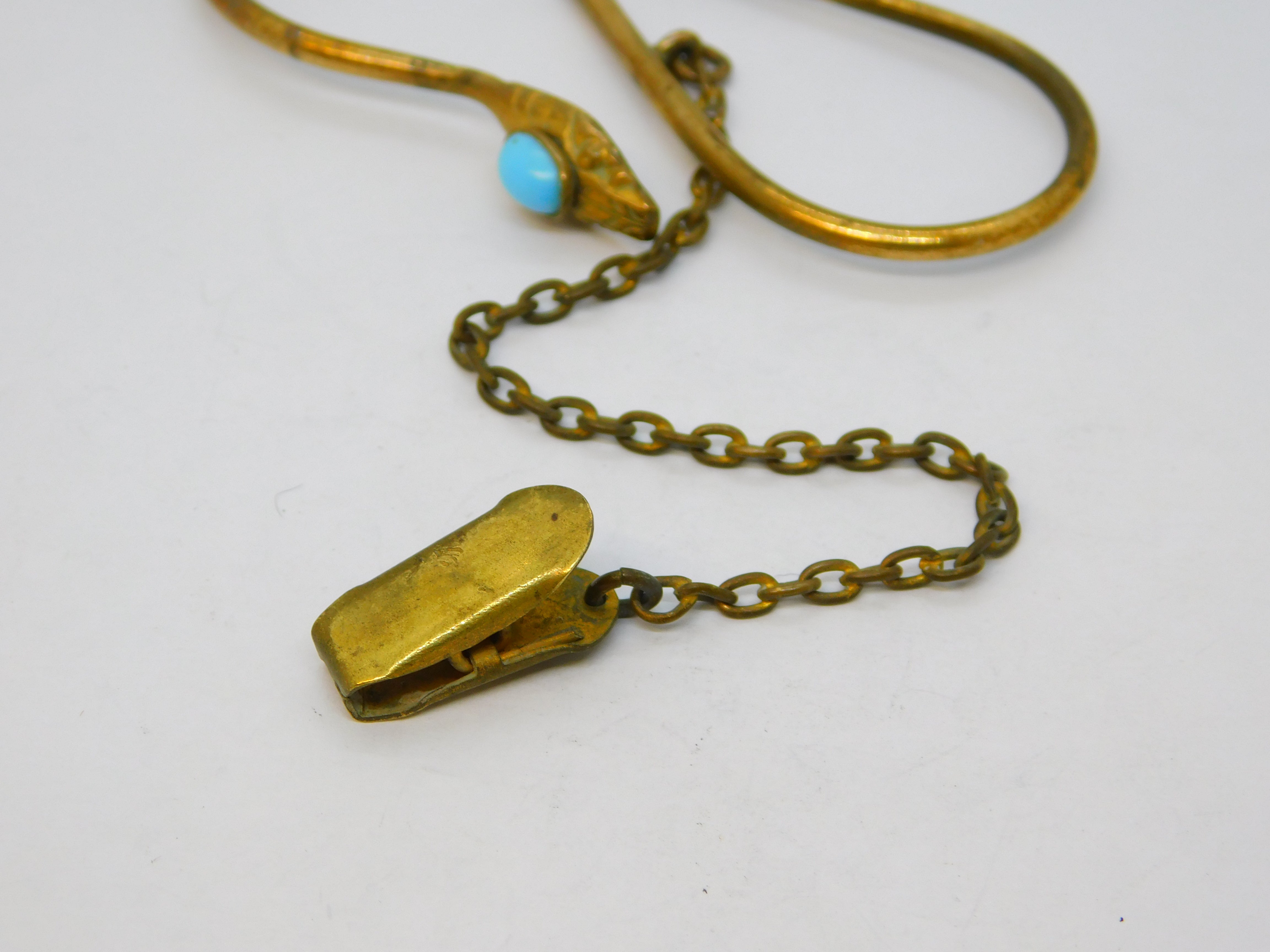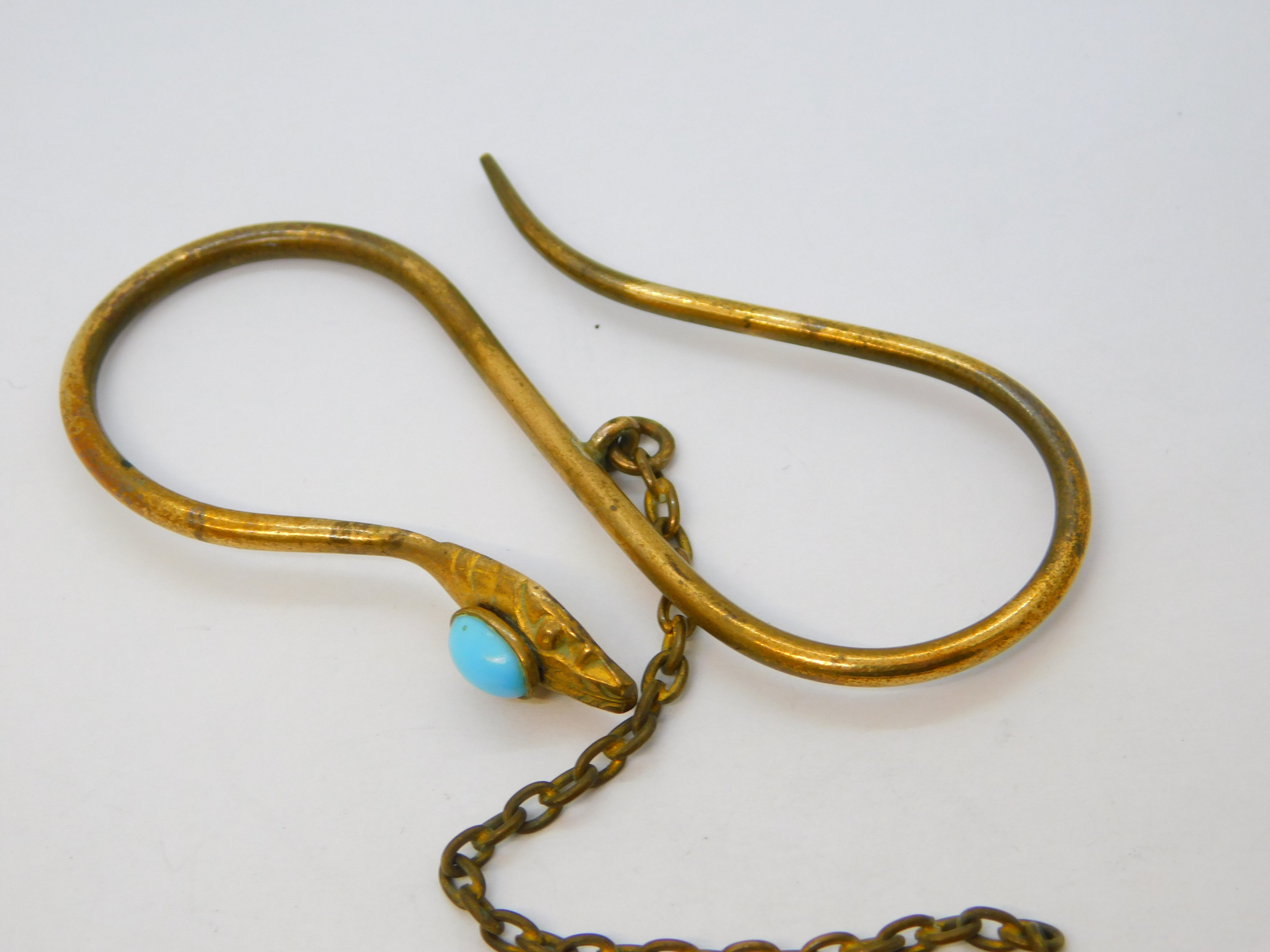 19th Century Gilt Metal Turquoise Set Snake Sewing Skirt Lifter Antique c1860