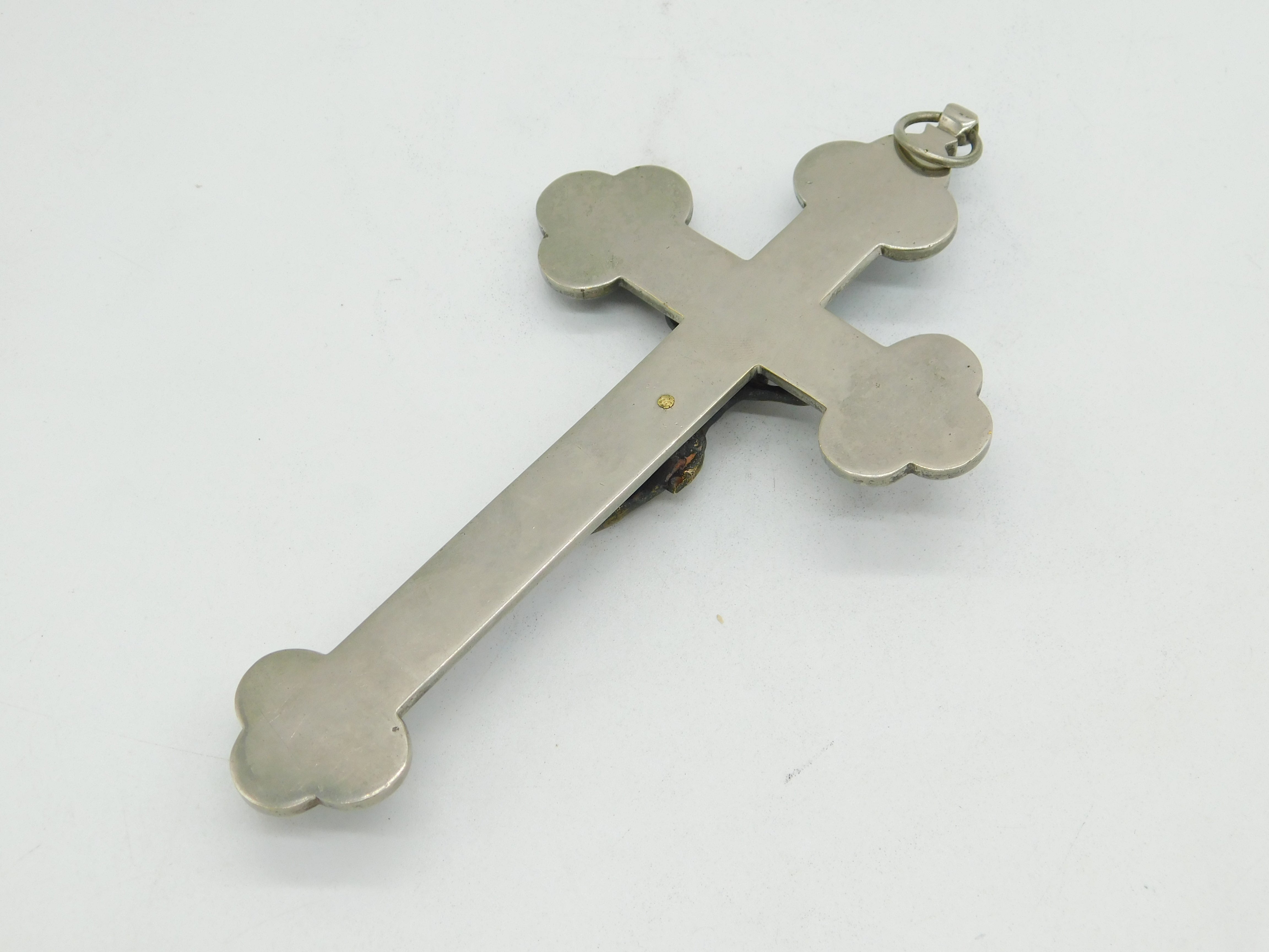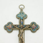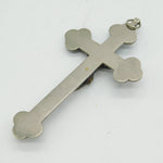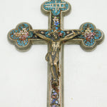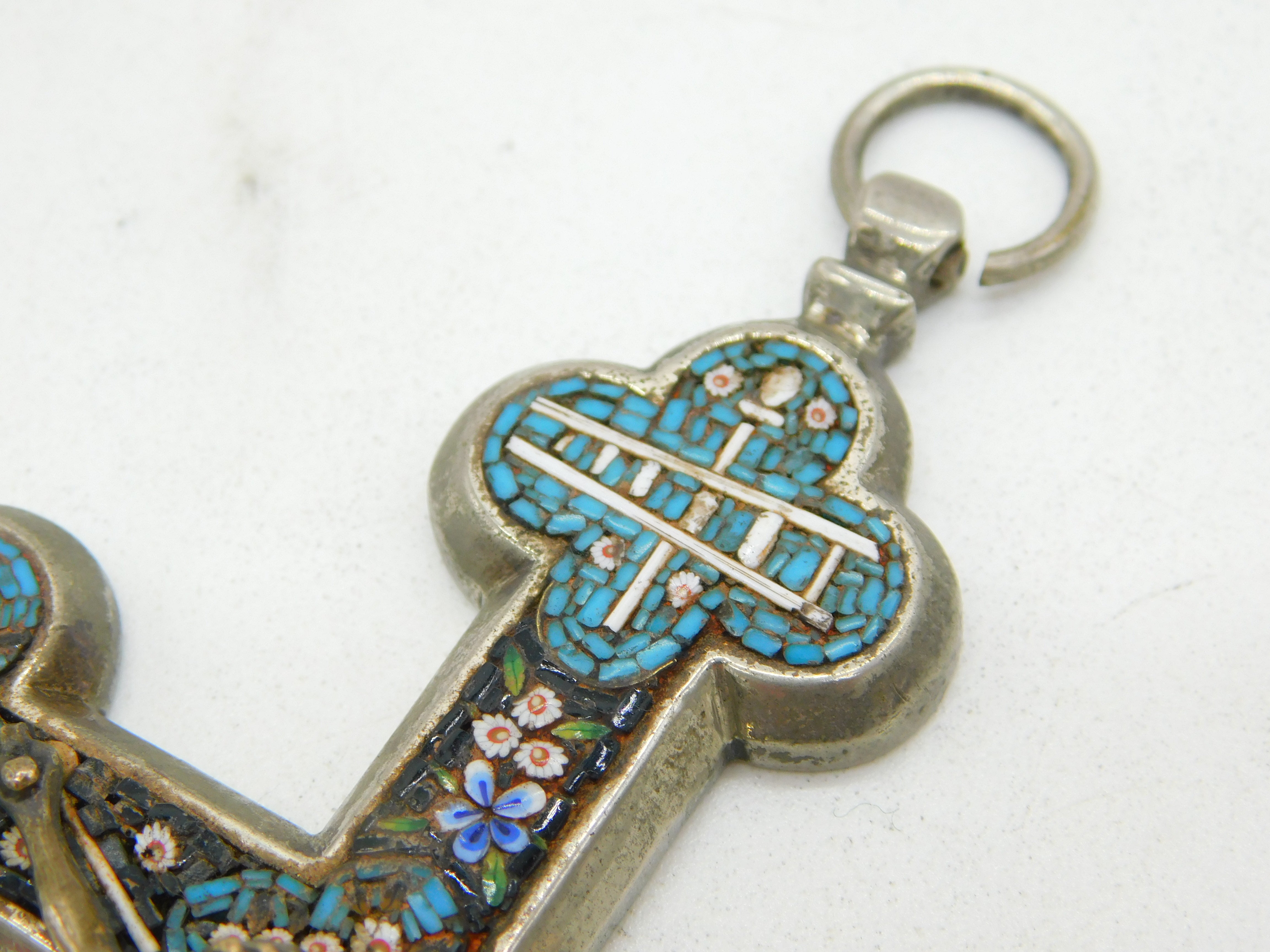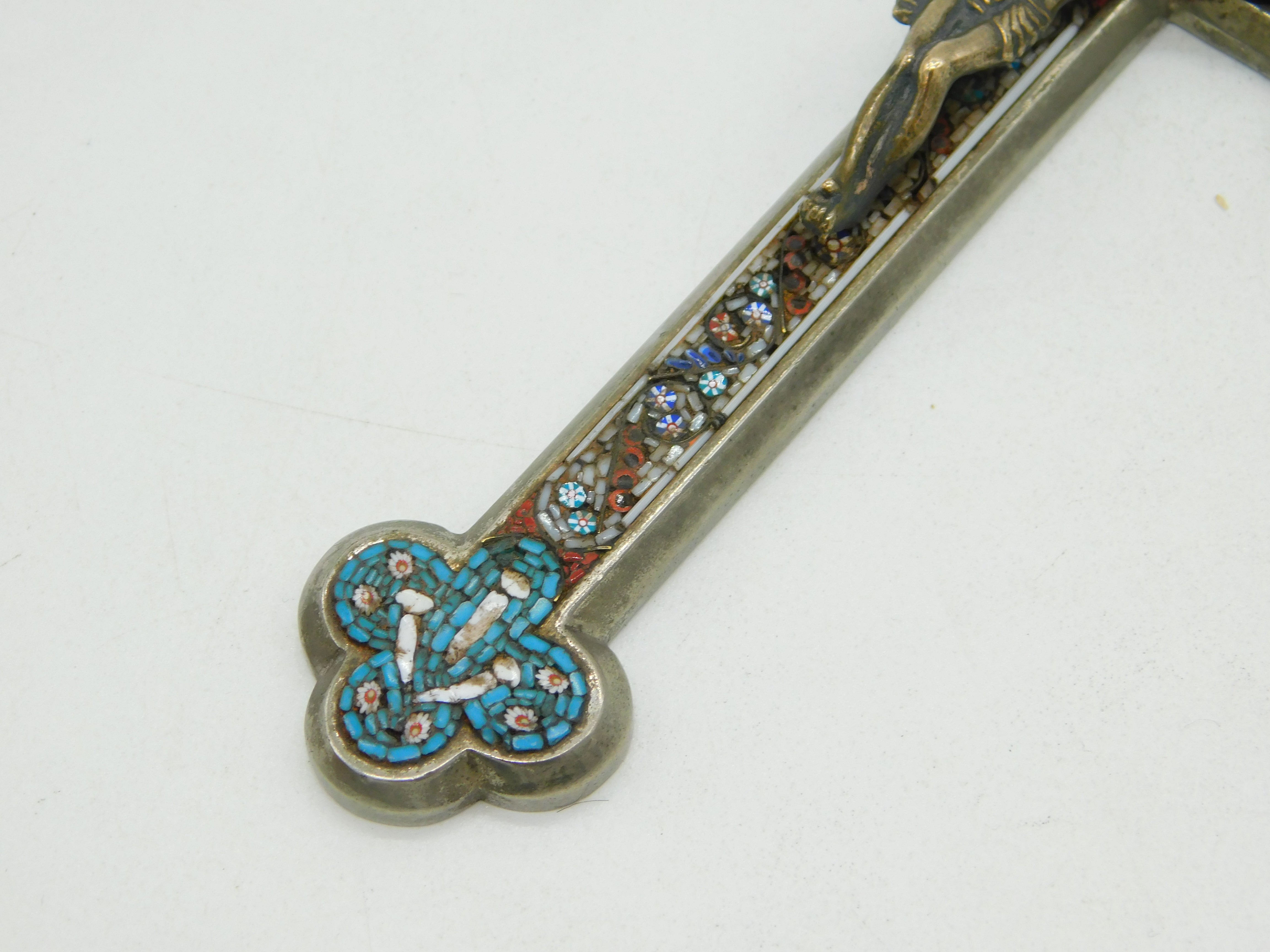 Details: A fantastic and wonderfully designed antique 19th century Italian large white metal corpus christi crucifix with silvered bronze christ to the front adorned throughout with superb floral micro mosaic decorations c1880. Bale ring to the top so could be hung as a decoration or worn as a large medallion. This is a wonderful item that would make a perfect gift or addition to any collection.