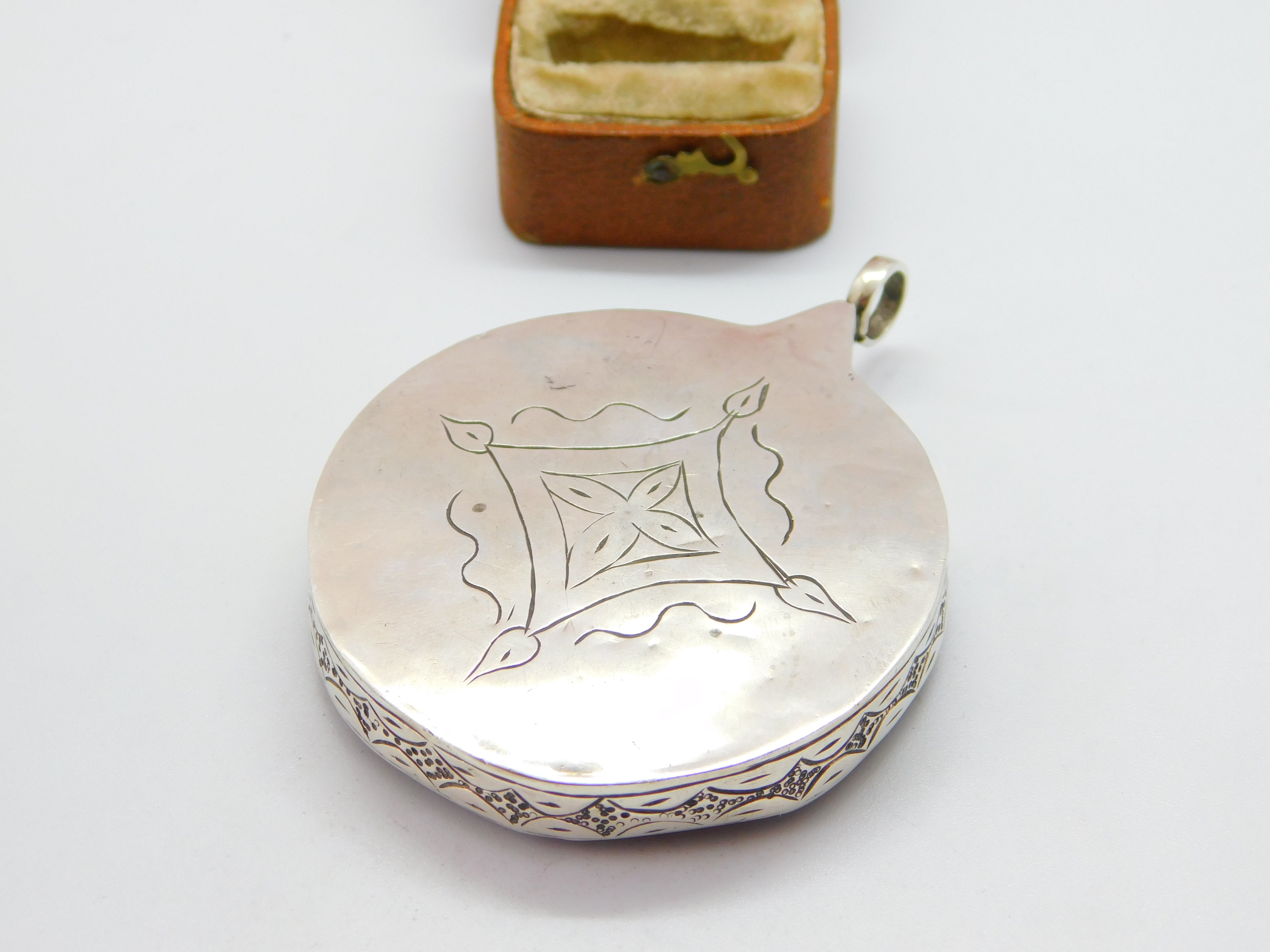 Details: A fantastic and wonderfully designed antique early 19th century sterling silver large so-called sand compass almost certainly originating from the Ottoman empire with superb carved glass front and compass to the reverse c1840, the silver has been XRF tested as it is unmarked. A very unique example. This is a wonderful item that would make a perfect gift or addition to any collection. The BOX pictured is for PRESENTATION ONLY and is NOT included in the listings but used to frame the pictures unless specifically stated otherwise.