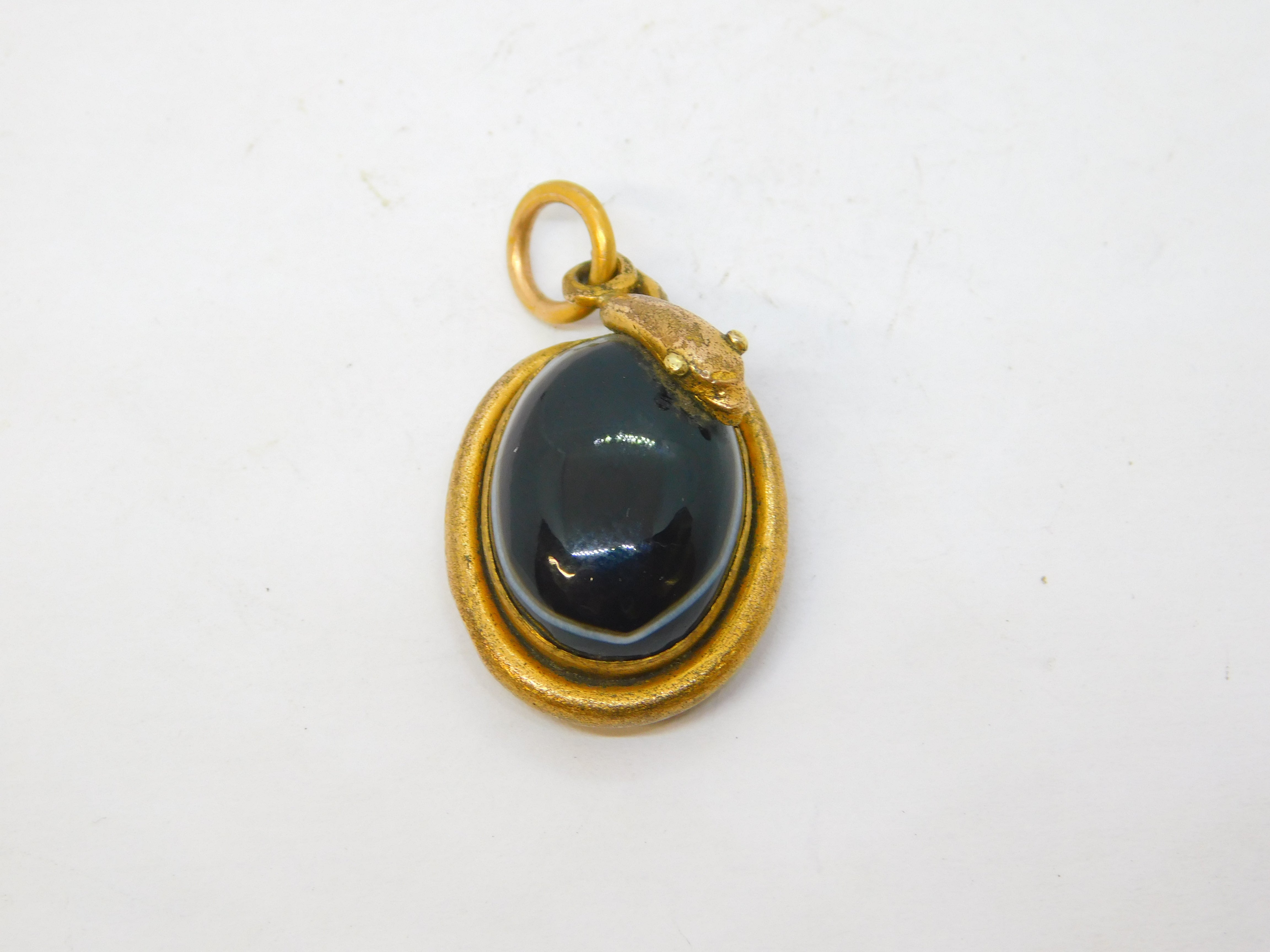 19th Century Rolled Gold Banded Agate Snake Serpent Pendant Antique c1880
