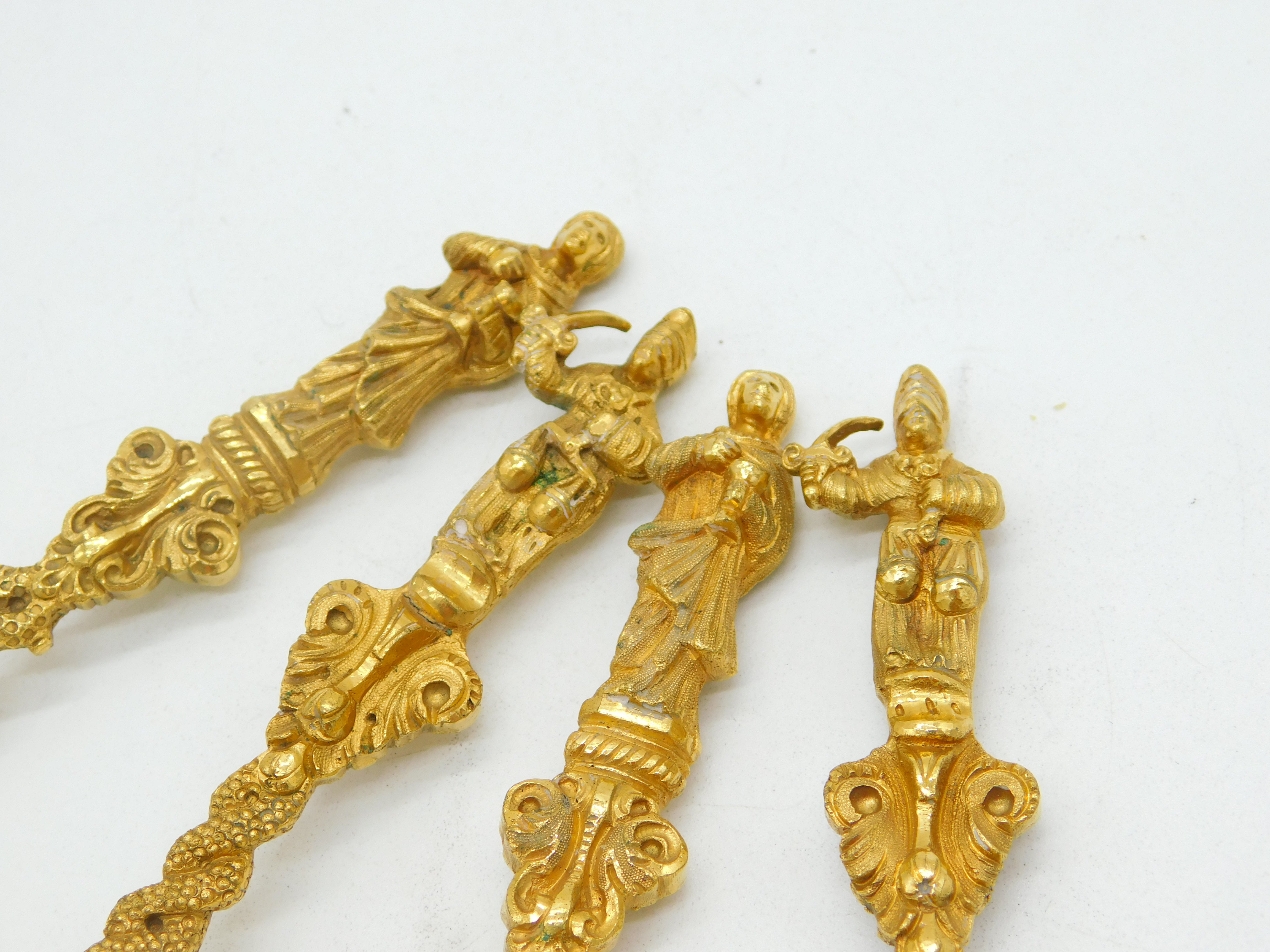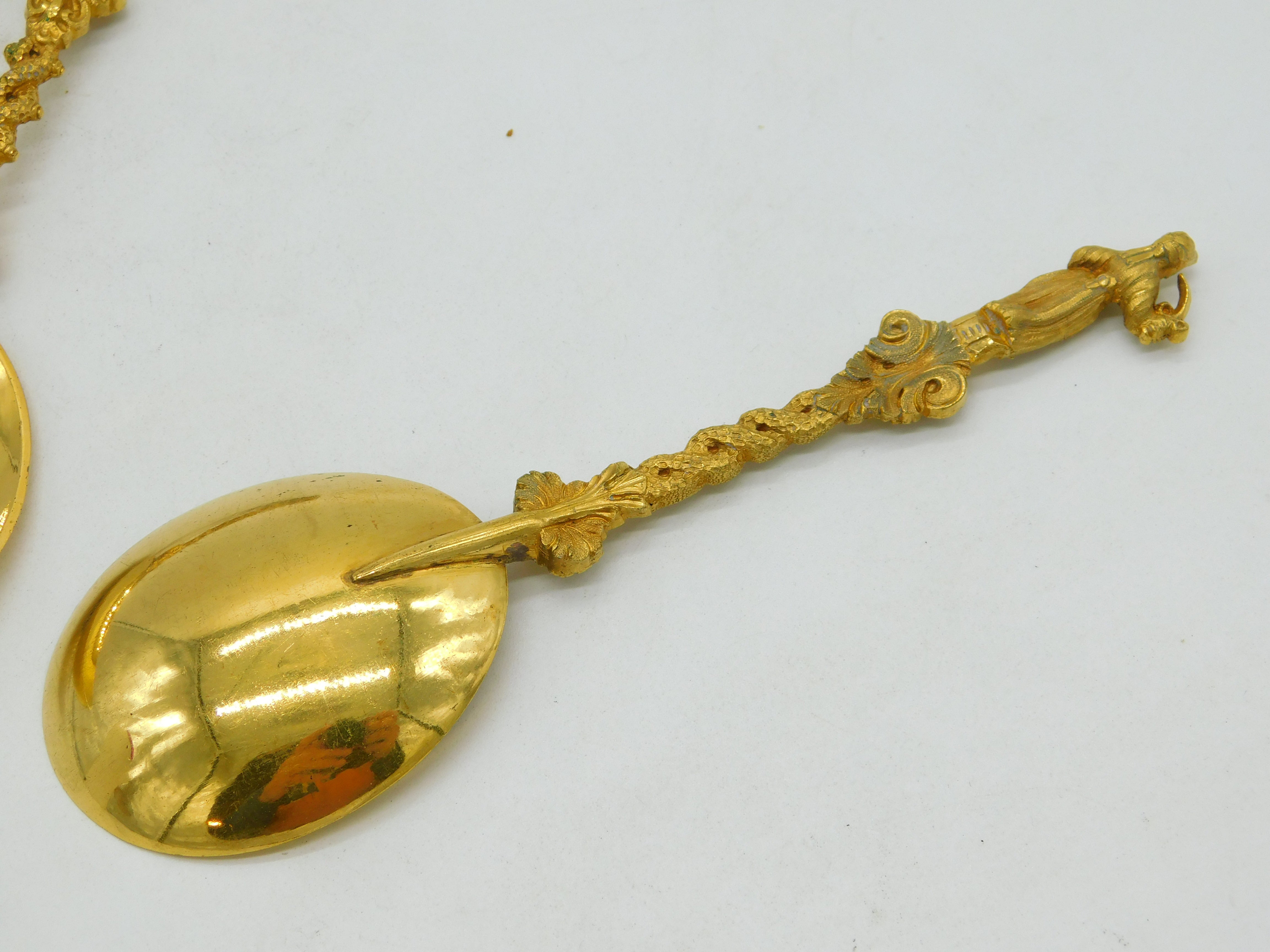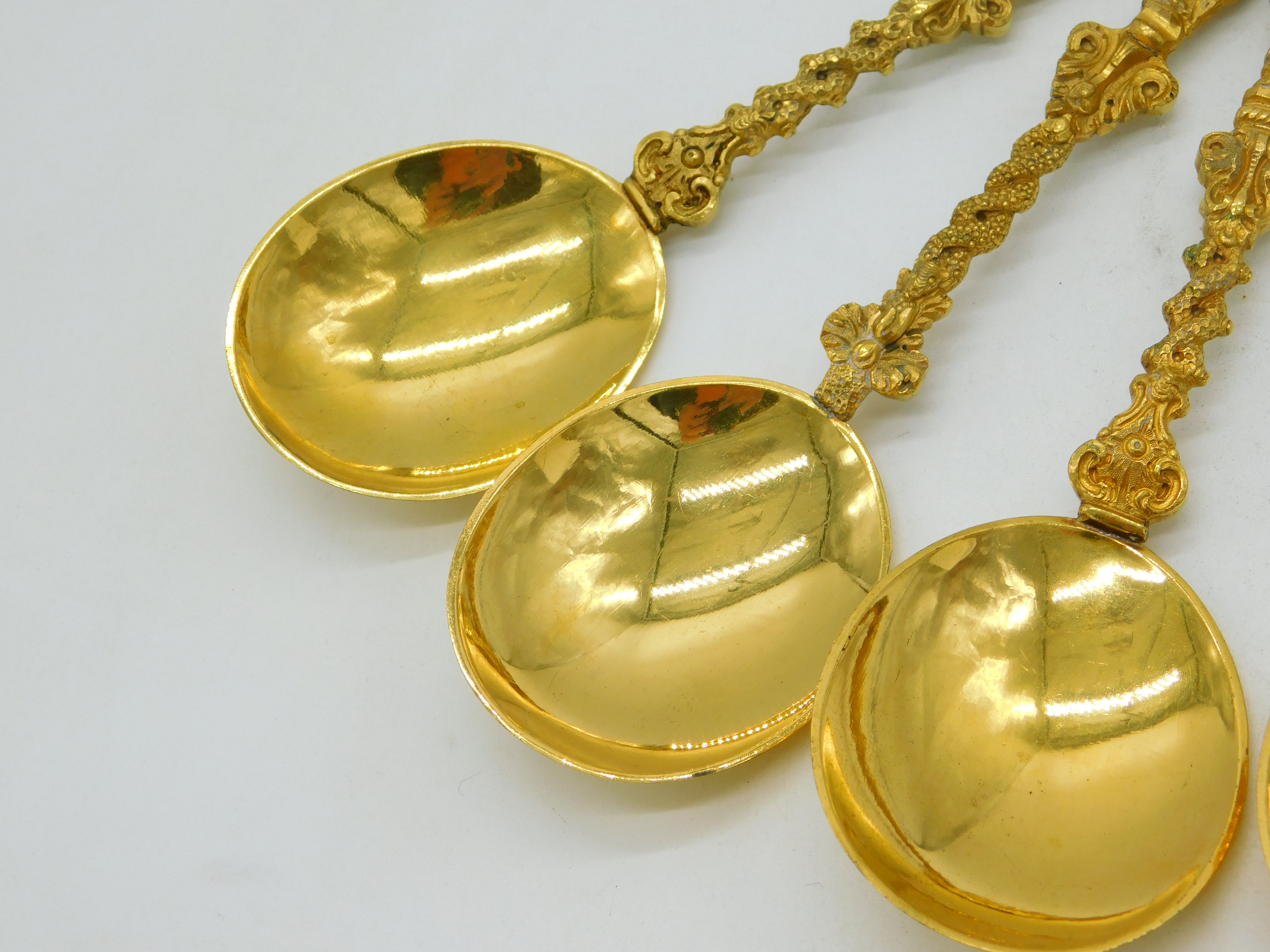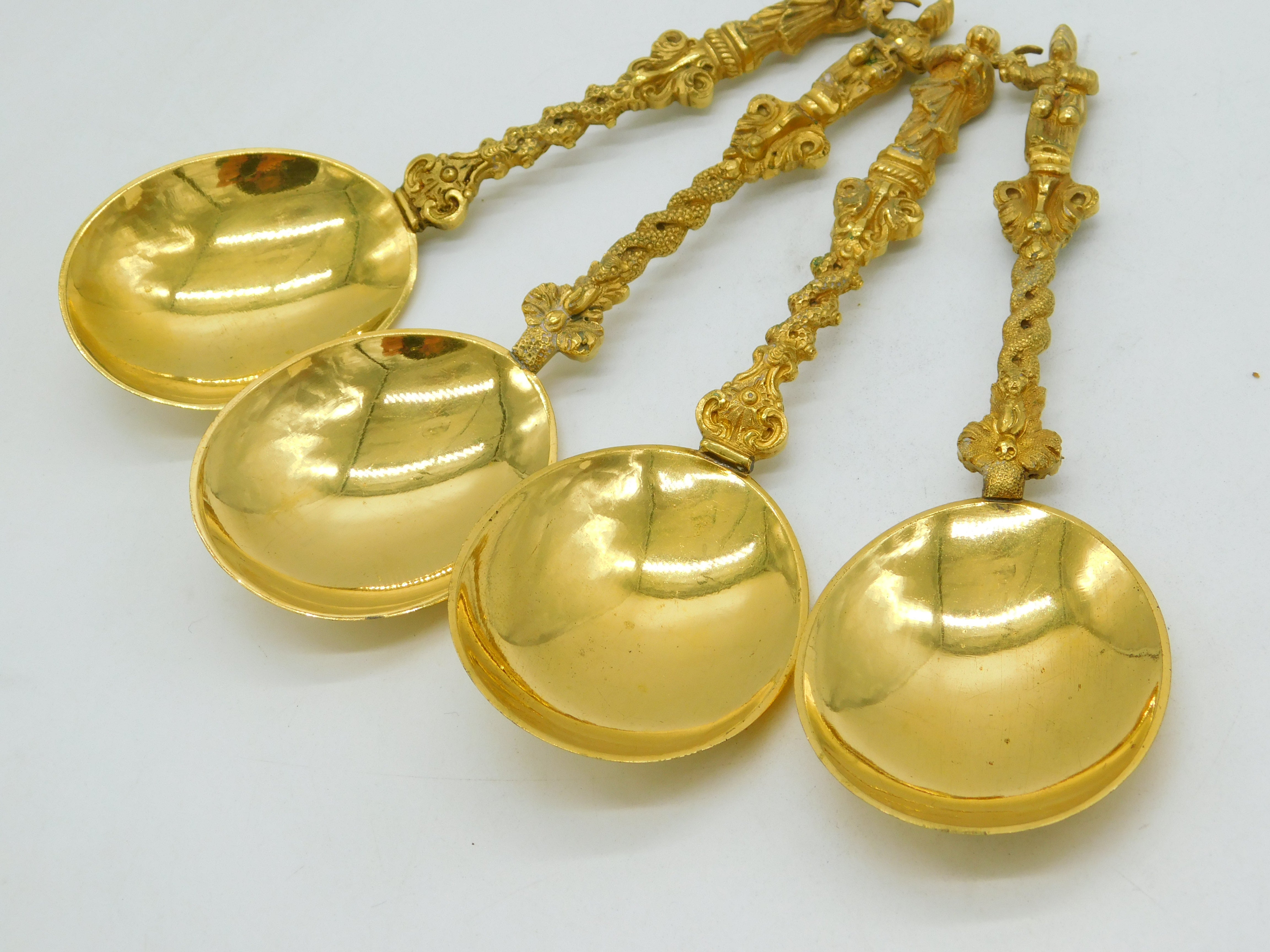 19th Century Set of Four Gold Plated Decorative Apostle Tablespoons Antique c1880