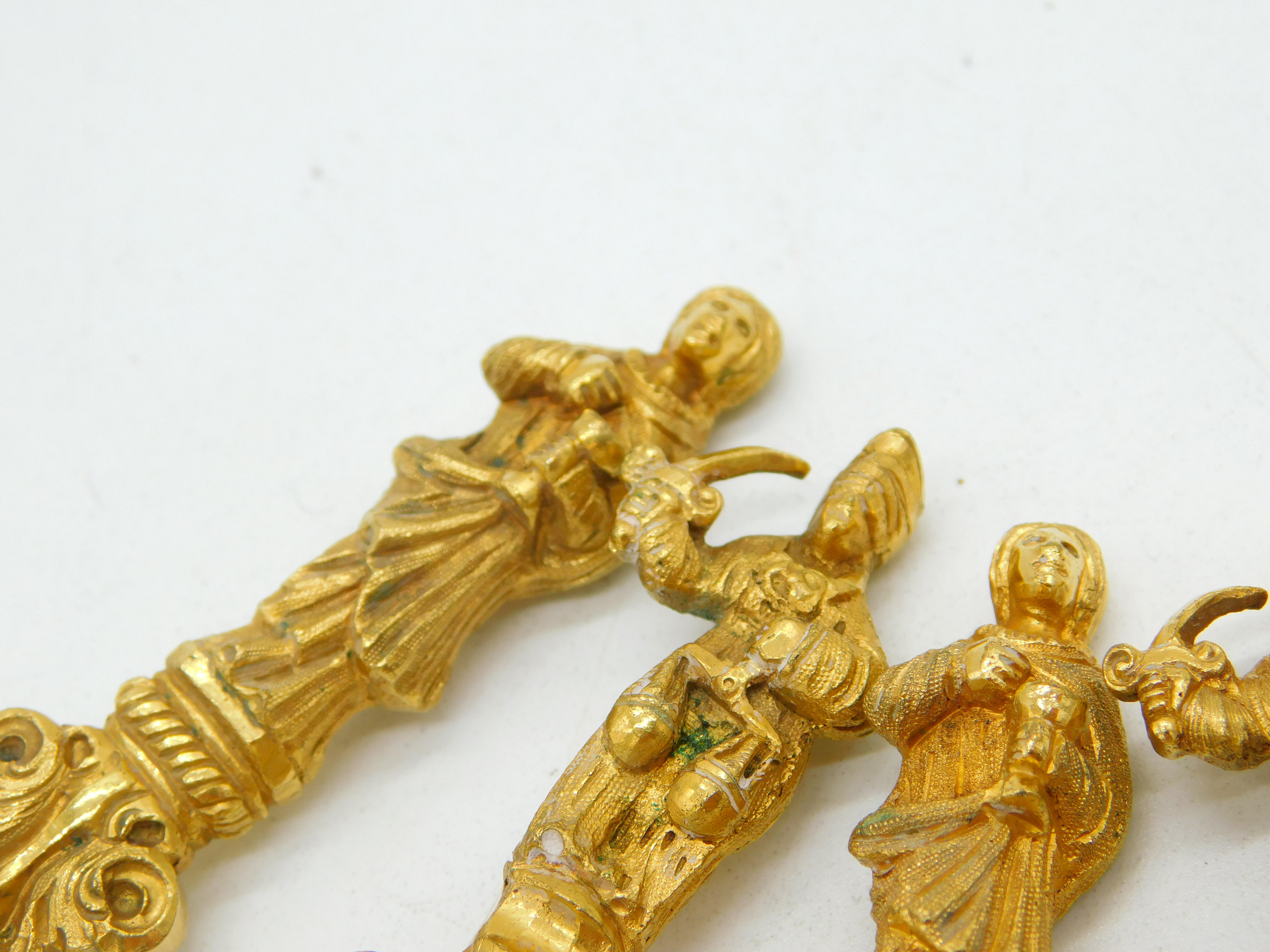 Details: A fantastic and wonderfully designed antique 19th century, possibly anglo-Indian set of four gold plated decorative spoons with apostle or maybe zodiac scenes to the top terminal c1880, they test with a good layer of gold on top of base metal. This is a wonderful item that would make a perfect gift or addition to any collection. We are more than happy to provide XRF reports for items upon request.
