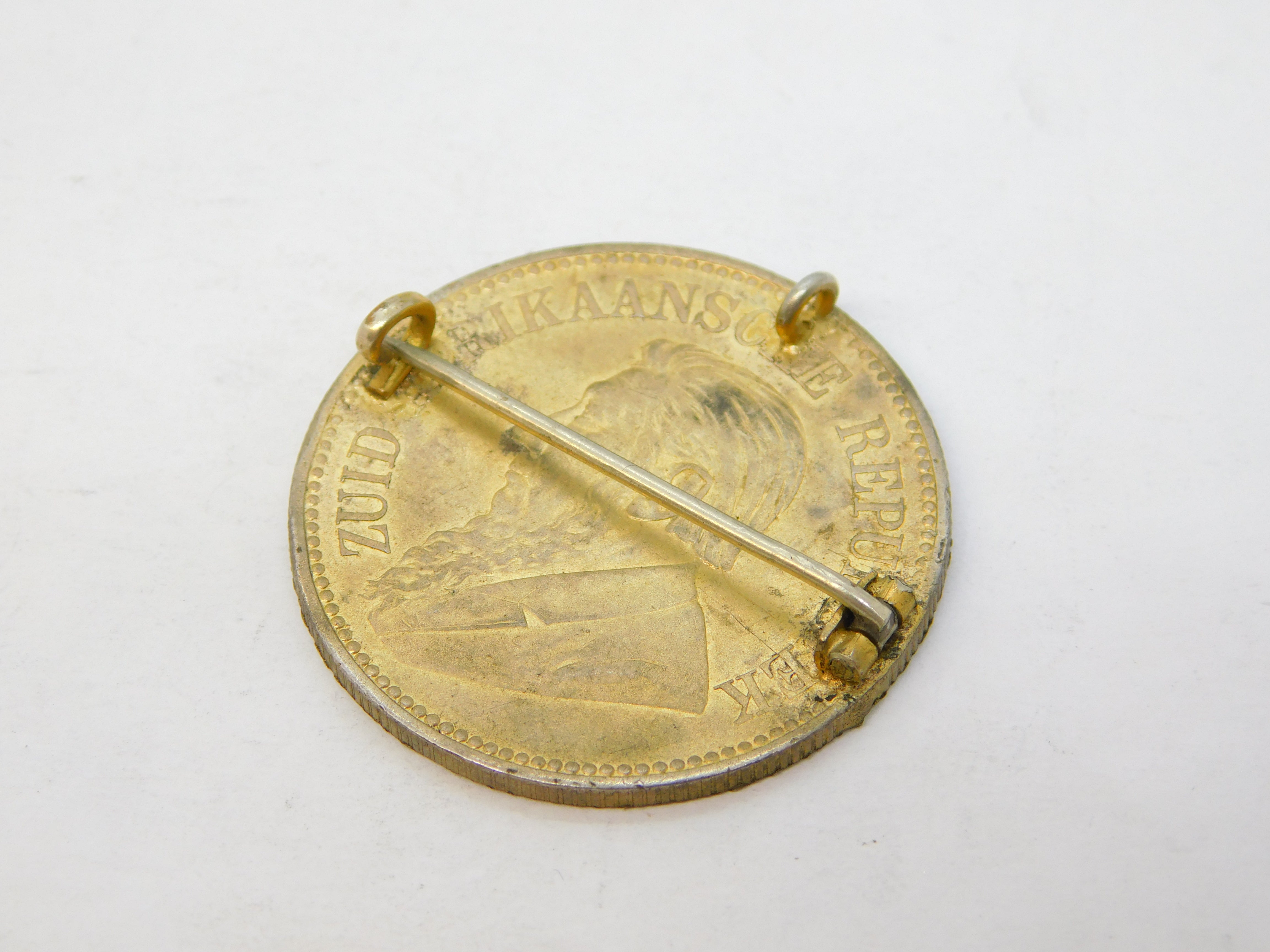19th Century South African Sterling Silver 2 Shilling Coin Brooch Antique 1896