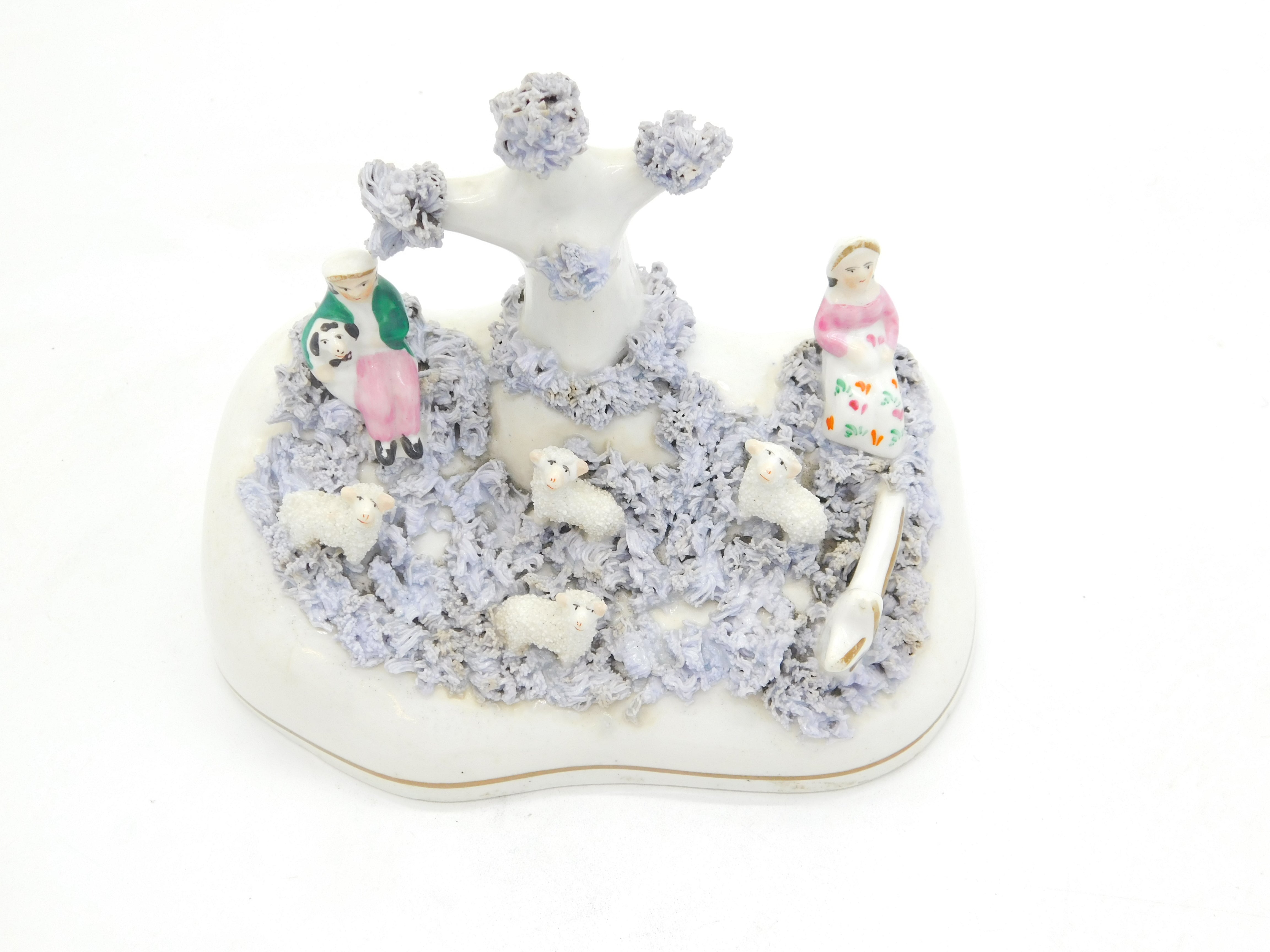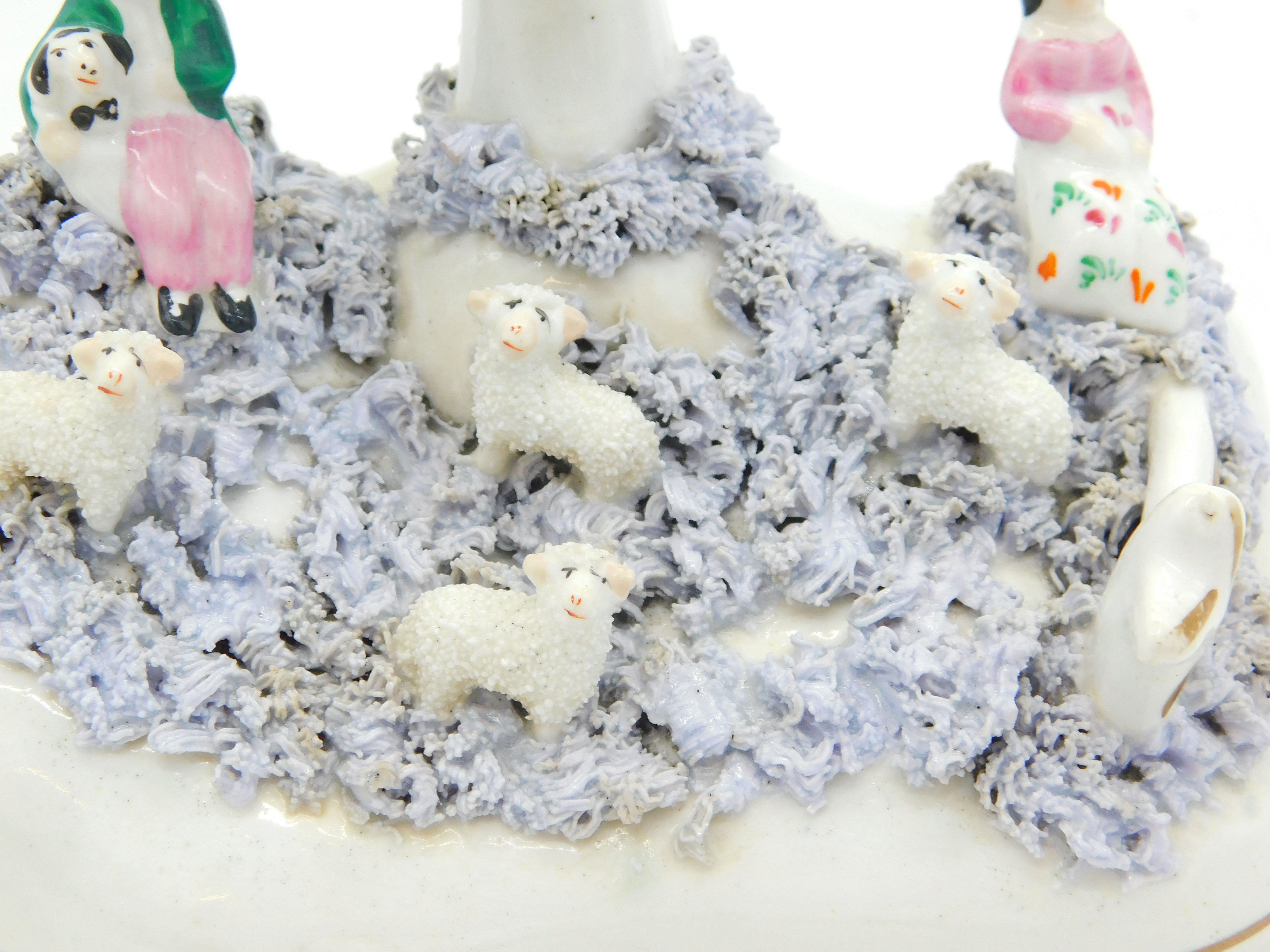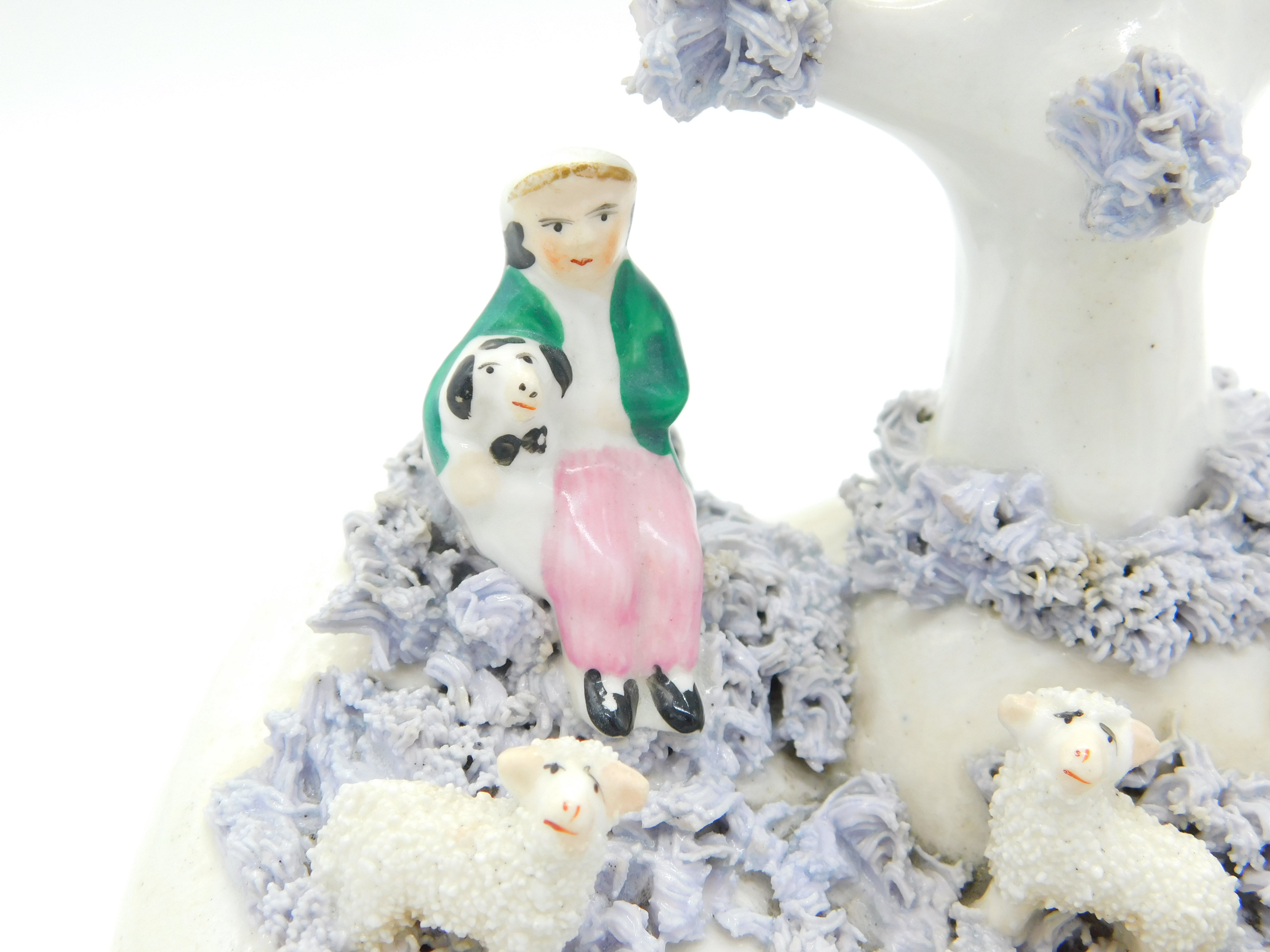 19th Century Staffordshire Porcelaneous Shepherd & Sheep Figure Group Antique Georgian