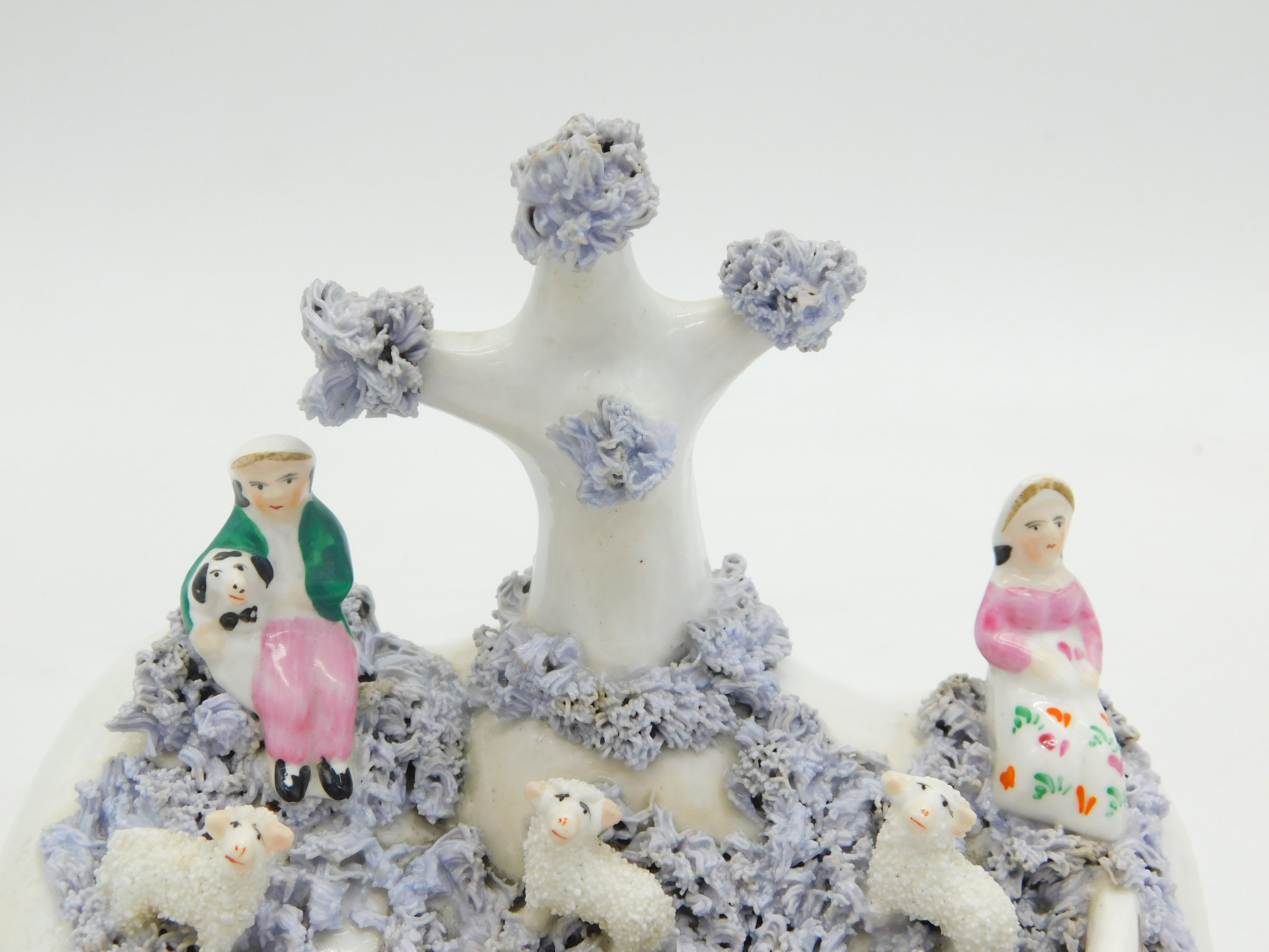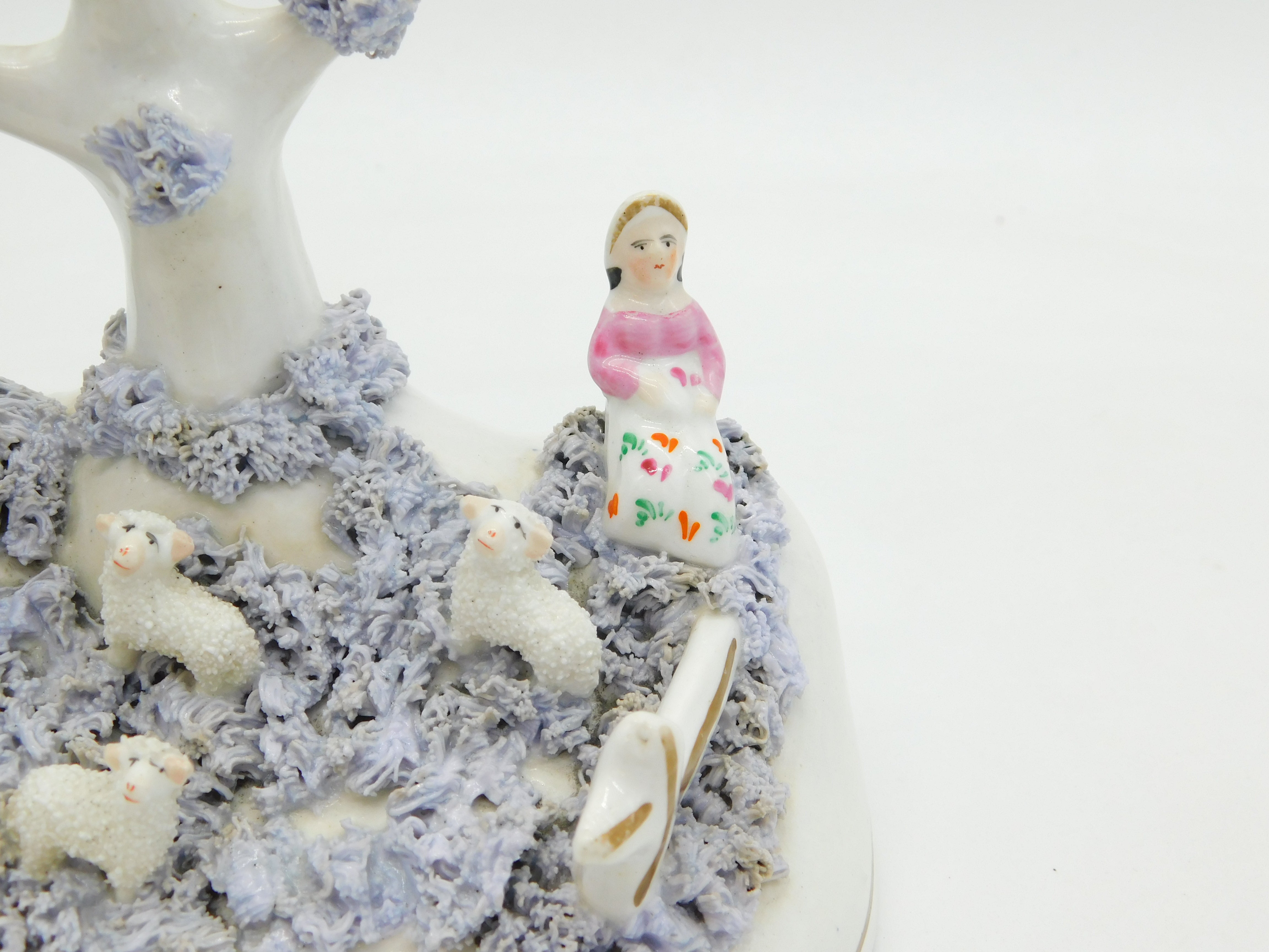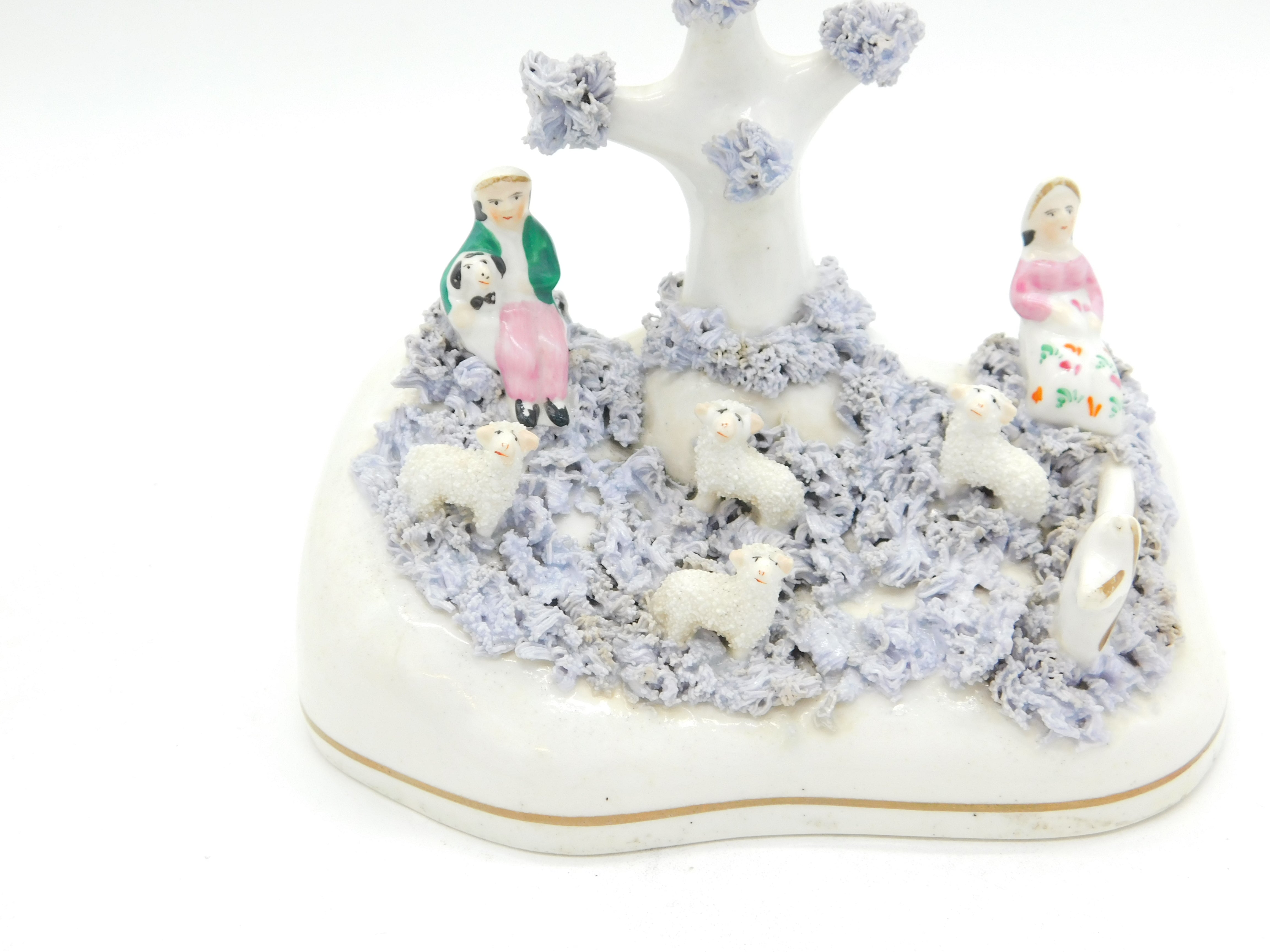 19th Century Staffordshire Porcelaneous Shepherd & Sheep Figure Group Antique Georgian