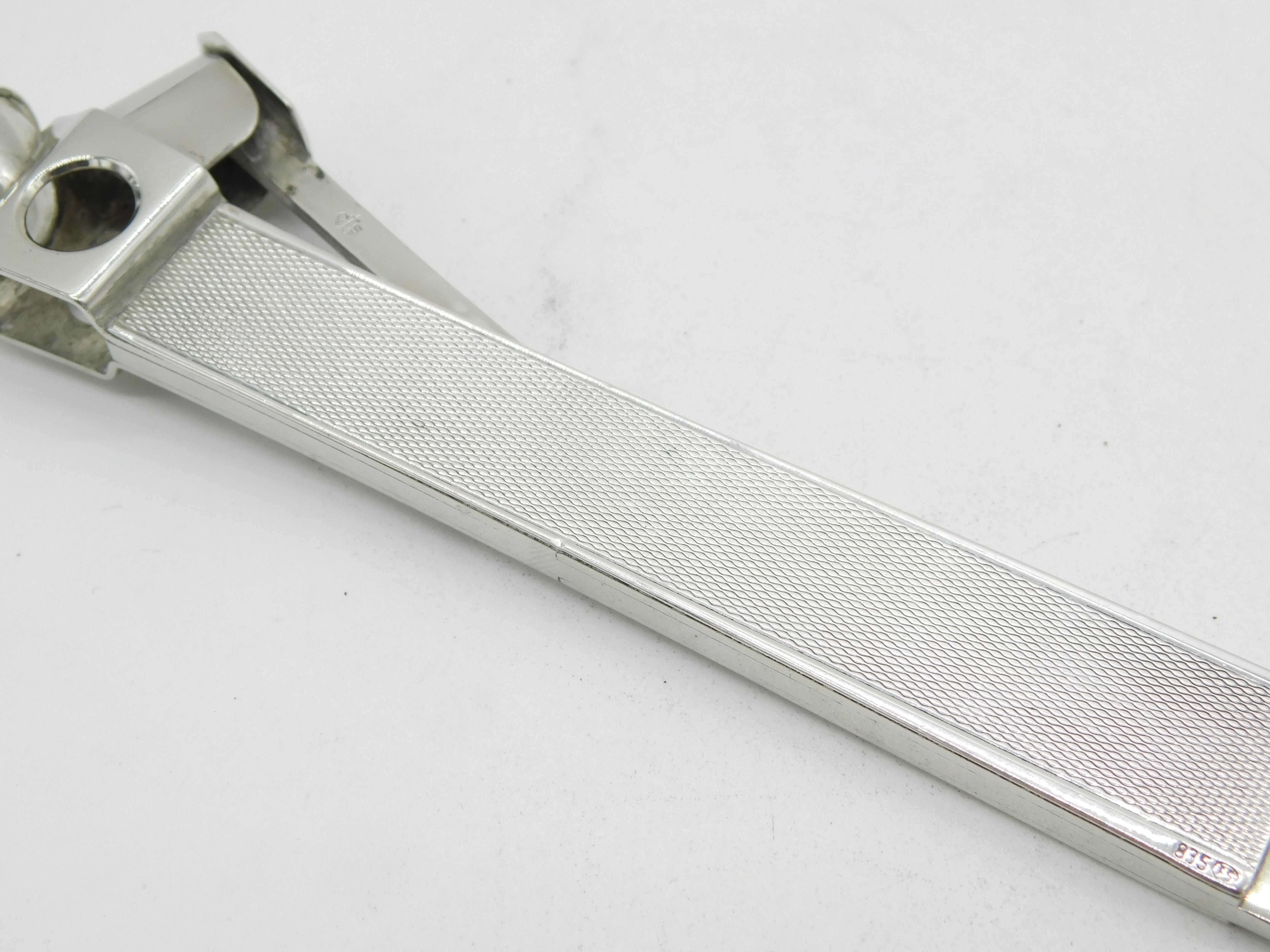 20th Century .835 Silver Engine Turned Cigar Cutter Tool Antique c1920 Art Deco