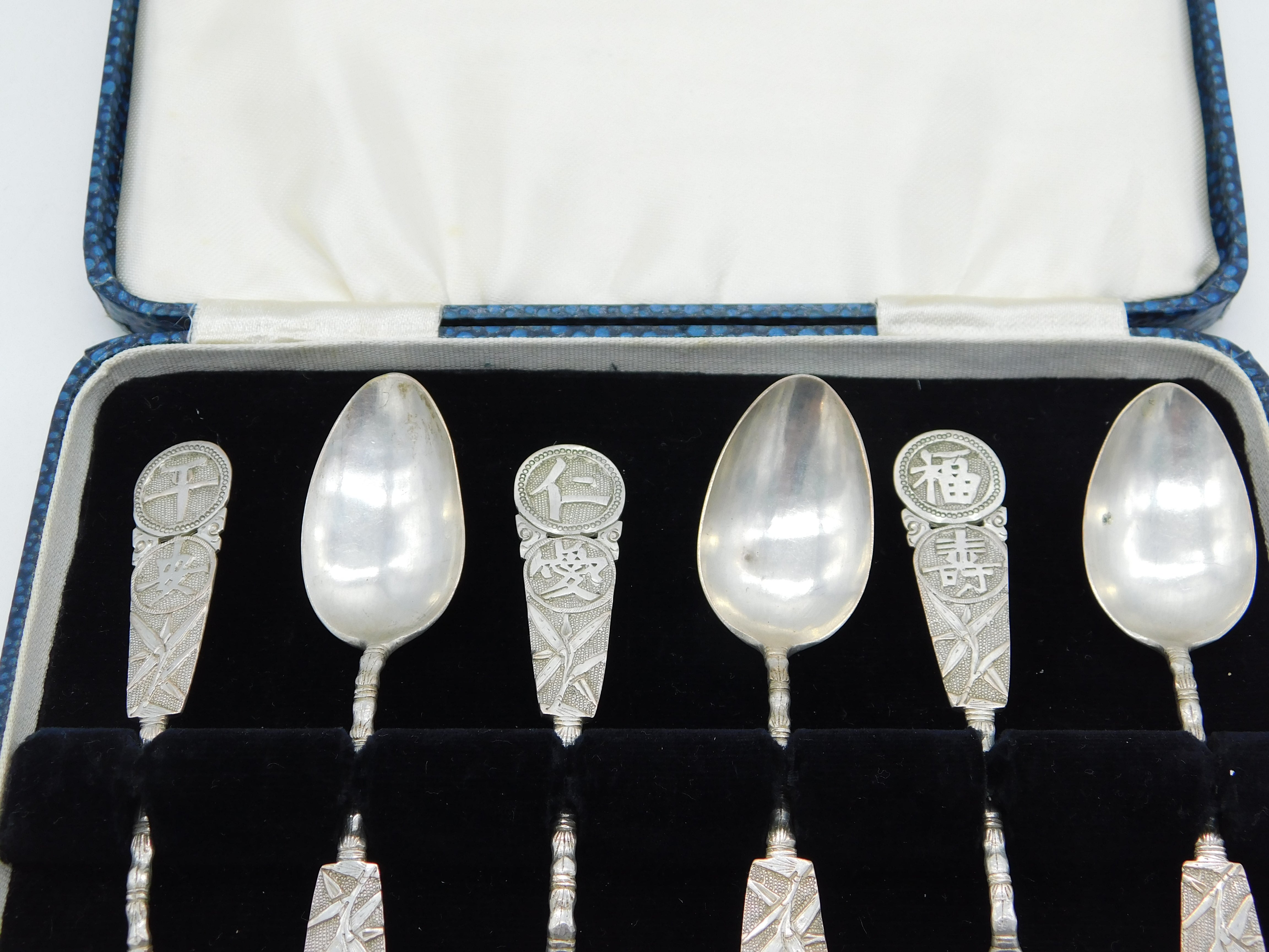 20th Century Boxed Chinese Export Sterling Silver Teaspoons Antique c1930