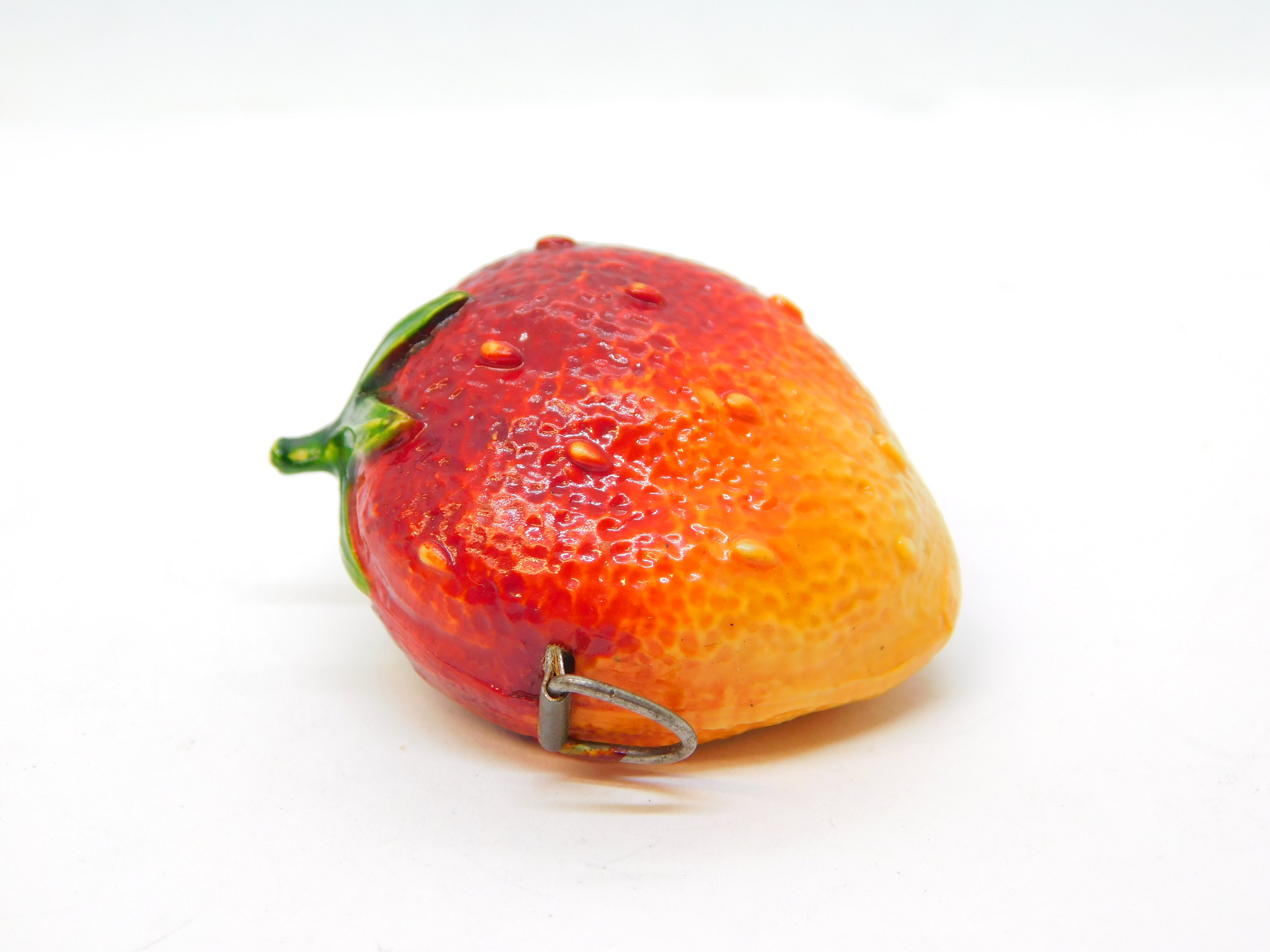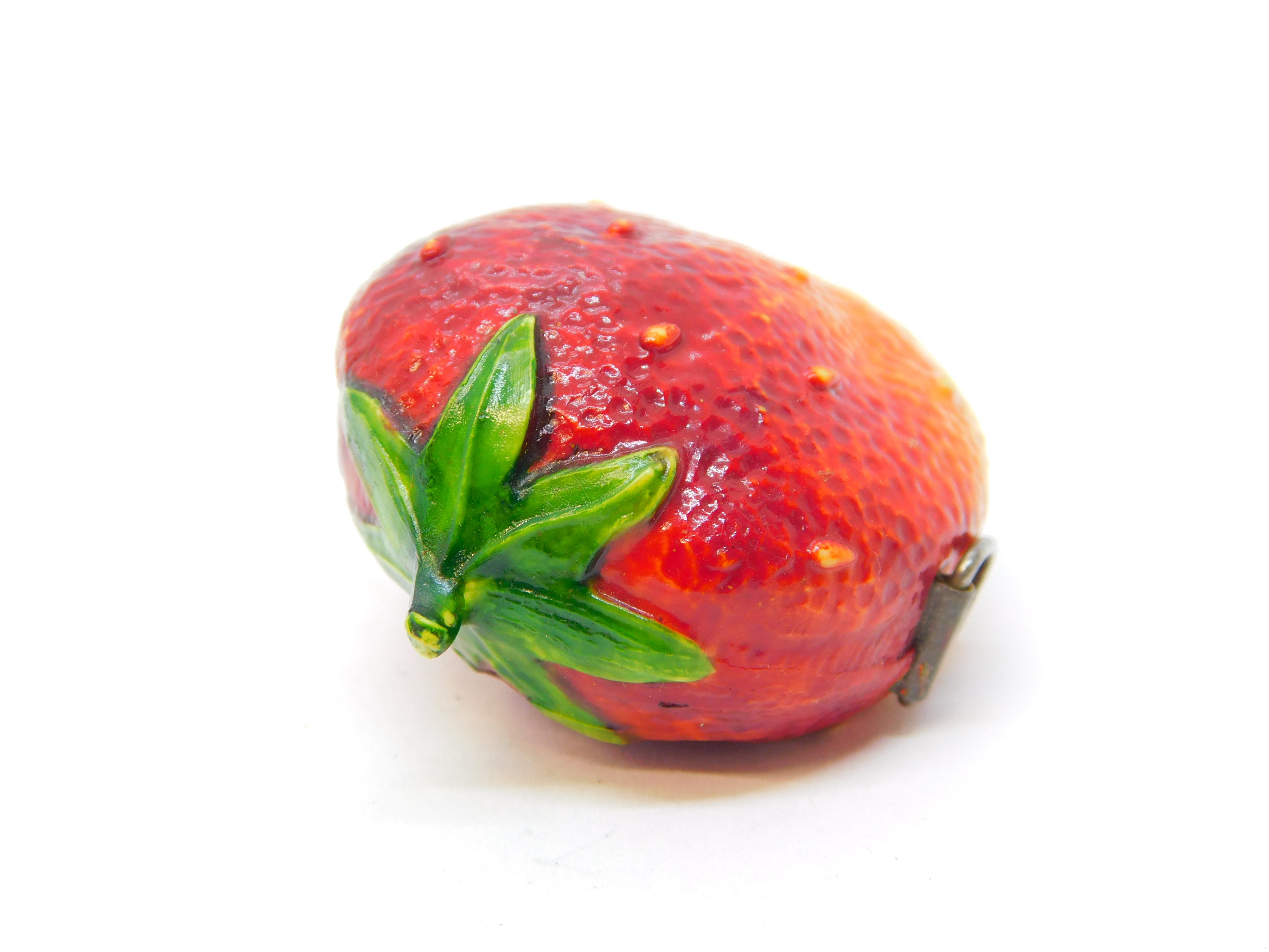 Details: A fantastic and wonderfully designed antique early 20th century early bakelite sewing tape measure in the form of a strawberry with lovely detailing c1920, the tape is slightly frayed at the end so needs to be carefully pulled out but still works well. This is a wonderful item that would make a perfect gift or addition to any collection. We are more than happy to provide XRF reports for items upon request.