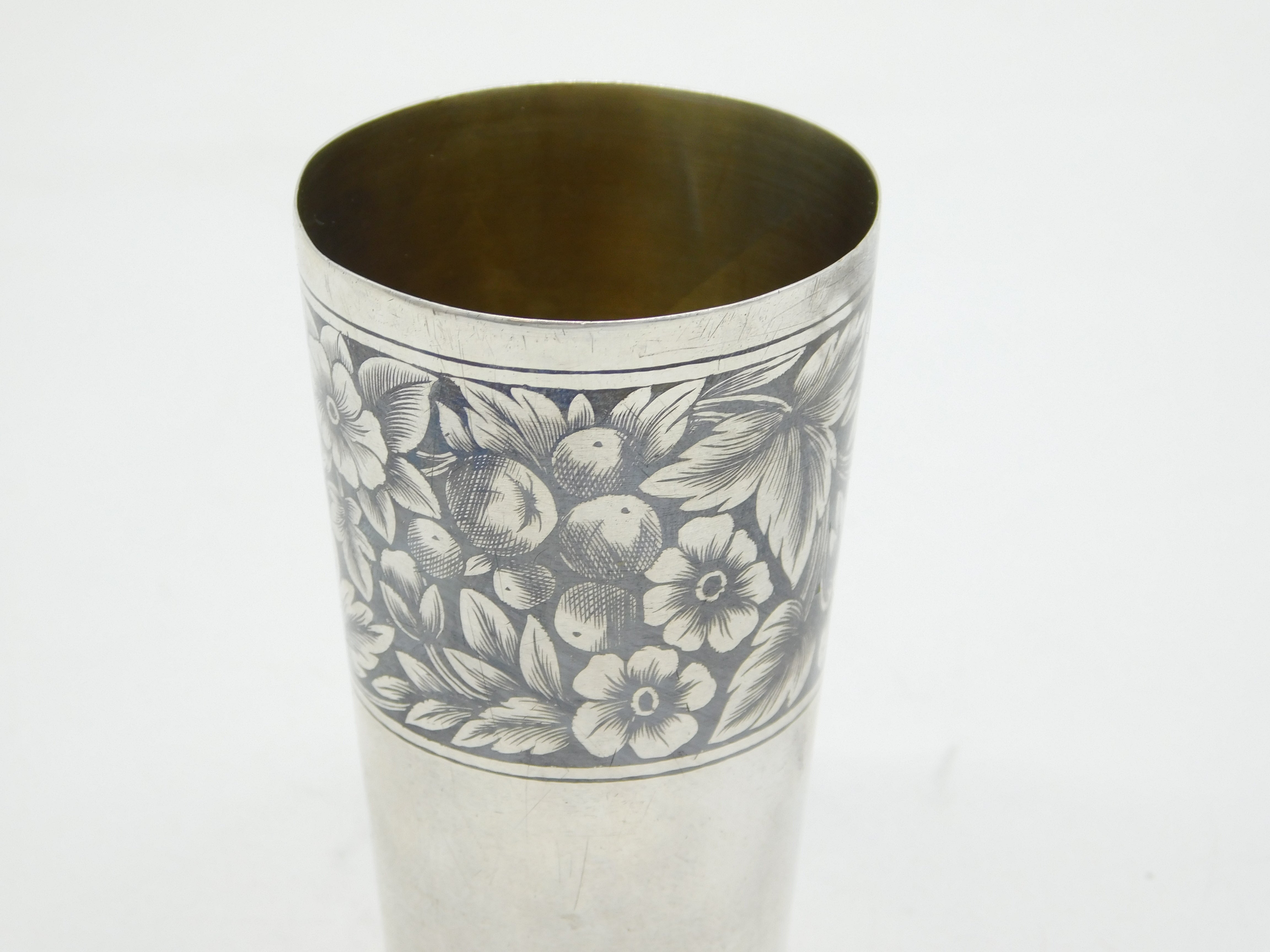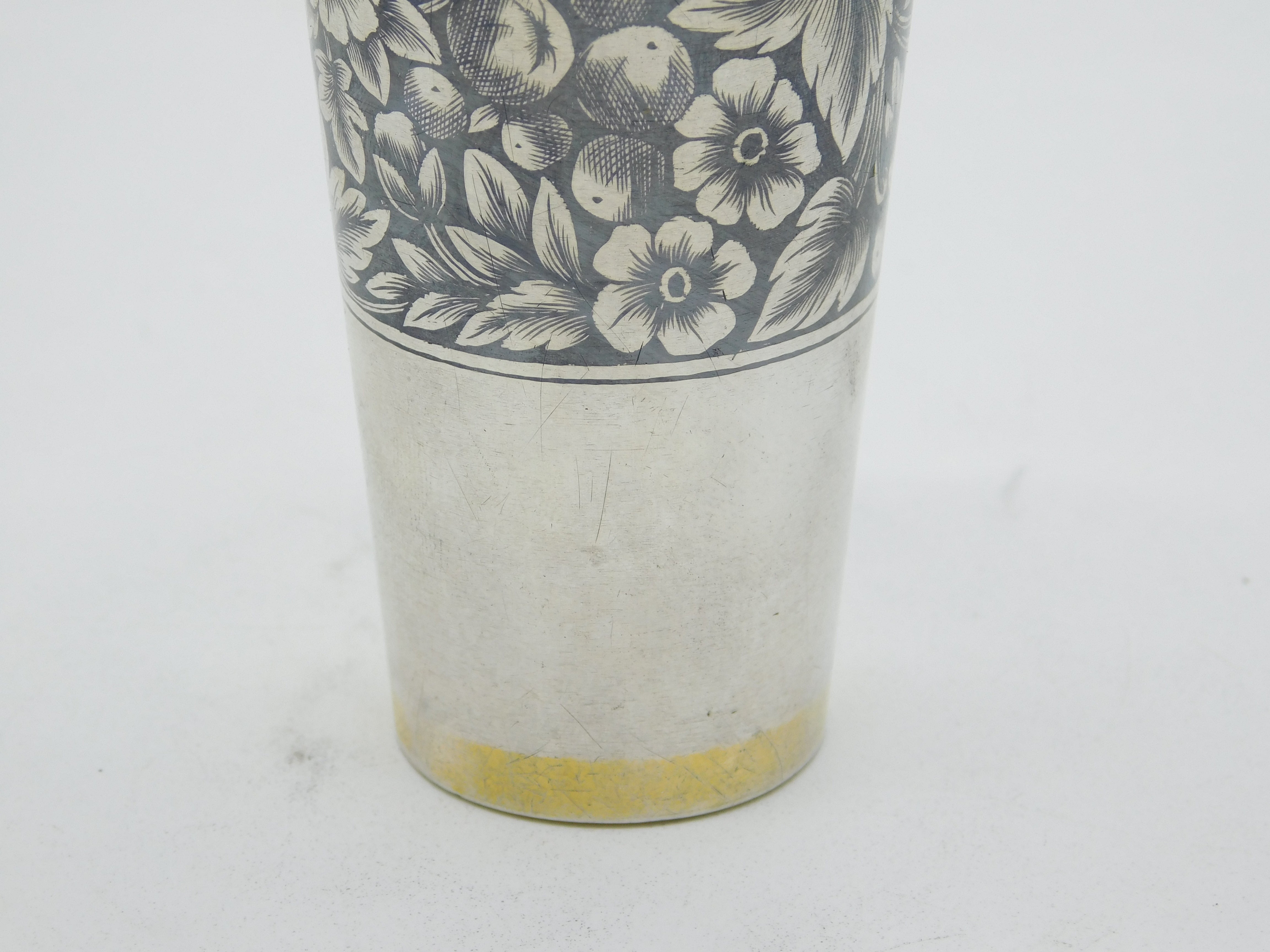 20th Century Russian .84 Zolotniks Silver Niello Enamel Beaker Antique c1920s