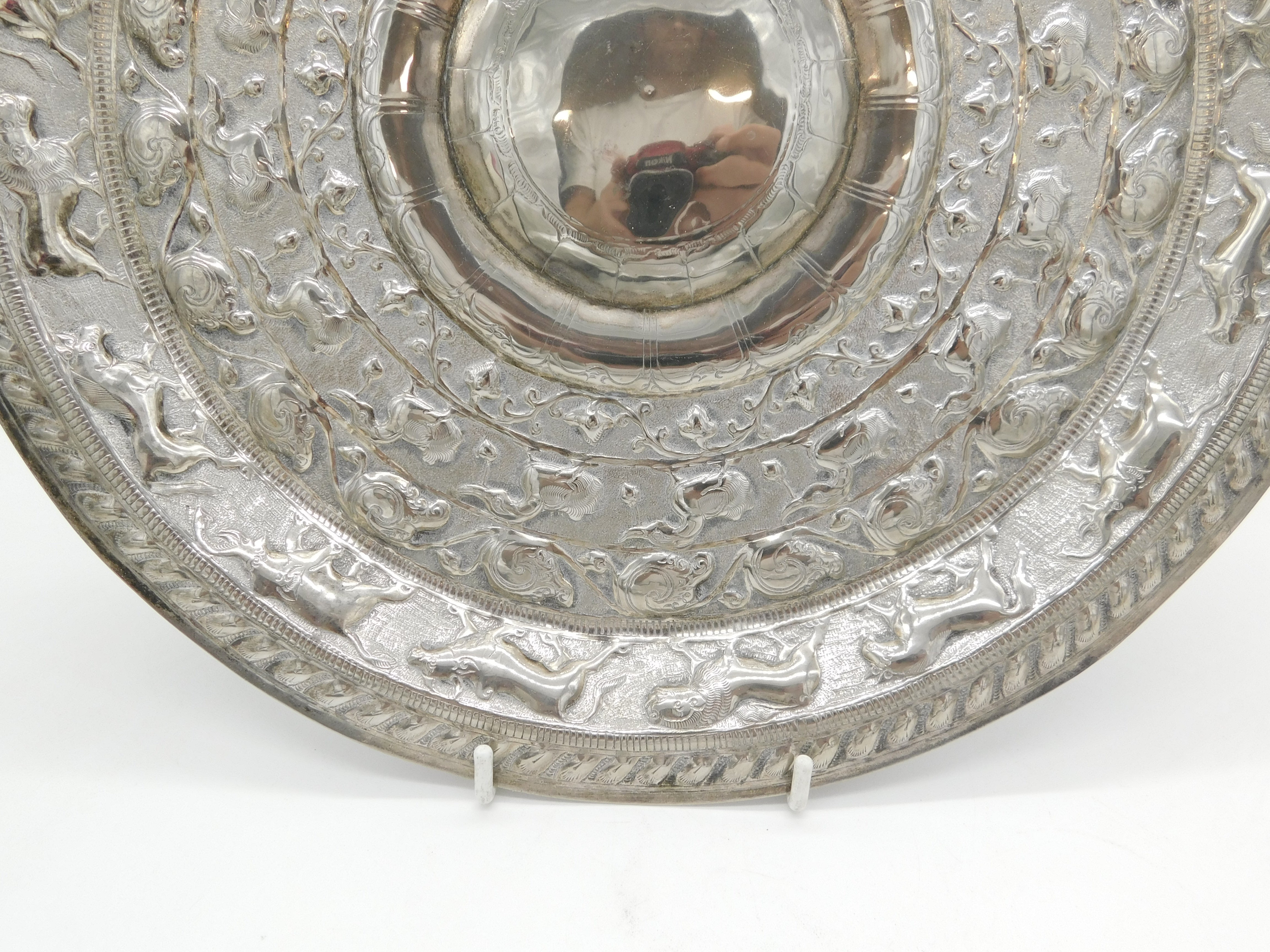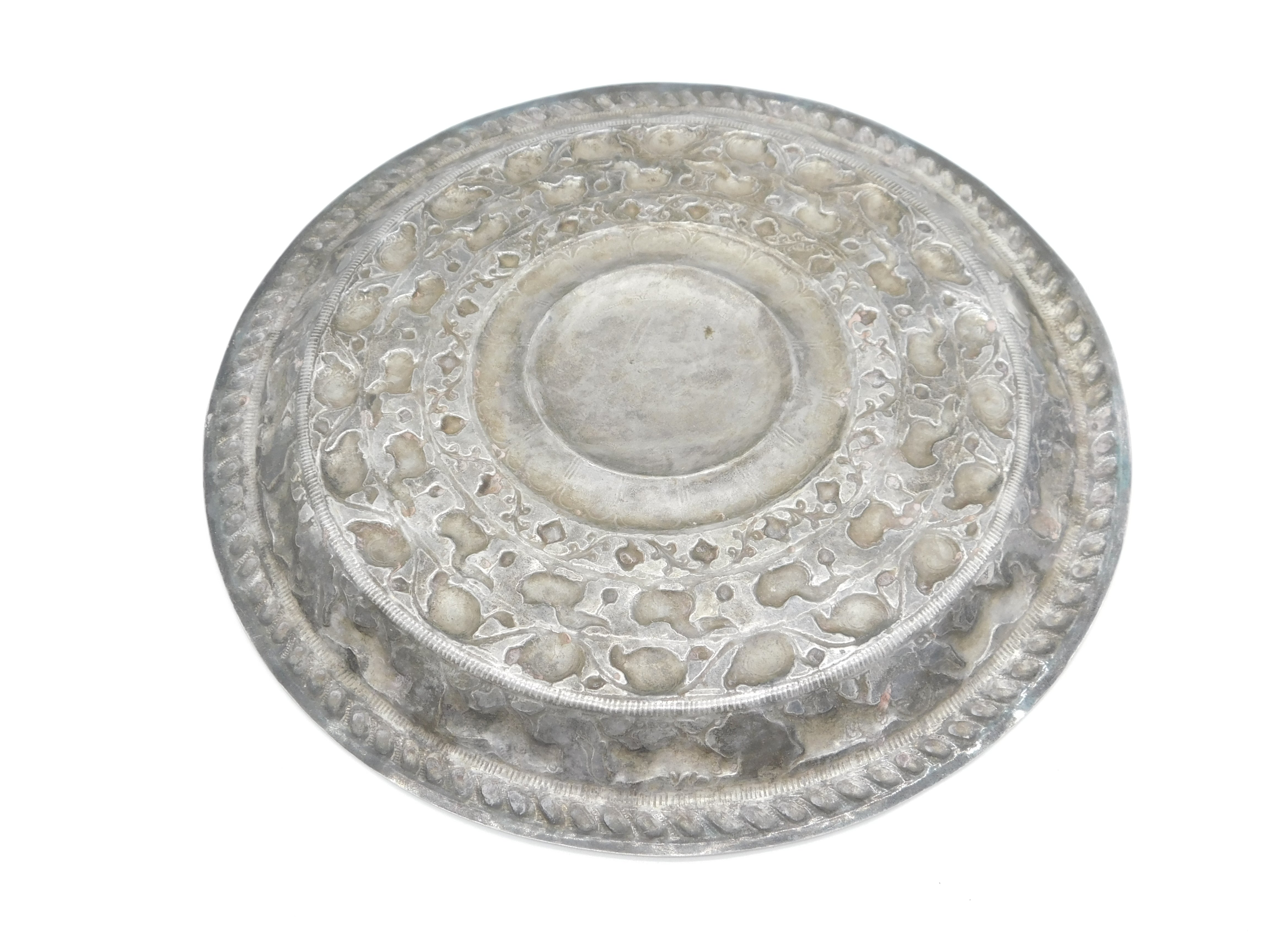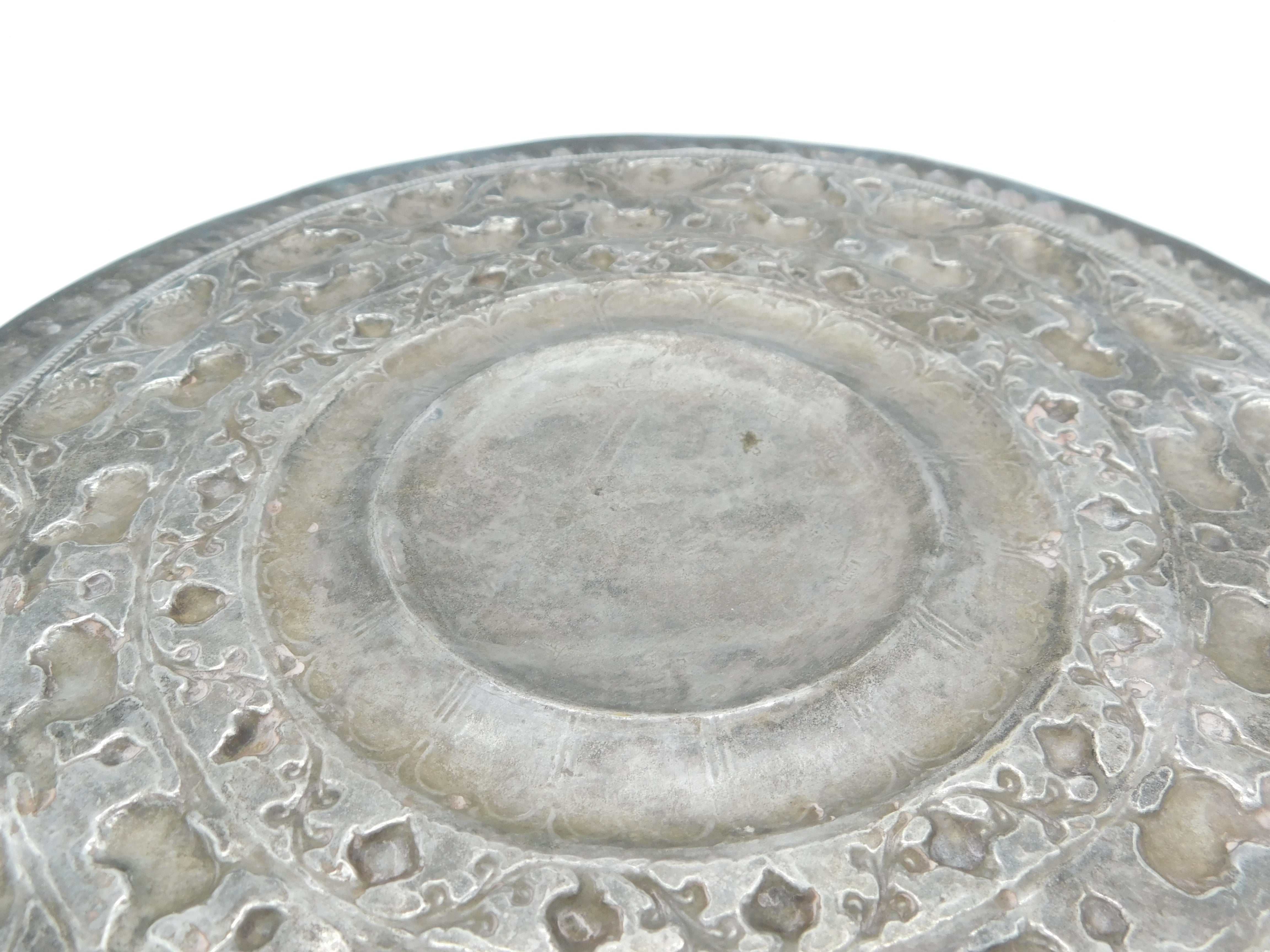 Details: A fantastic and wonderfully designed antique early 20th century Ceylon white metal large moonstone pattern dish or salver with charming detailing throughout c1910, the metal is untested and unmarked please note. This is a wonderful item that would make a perfect gift or addition to any collection.