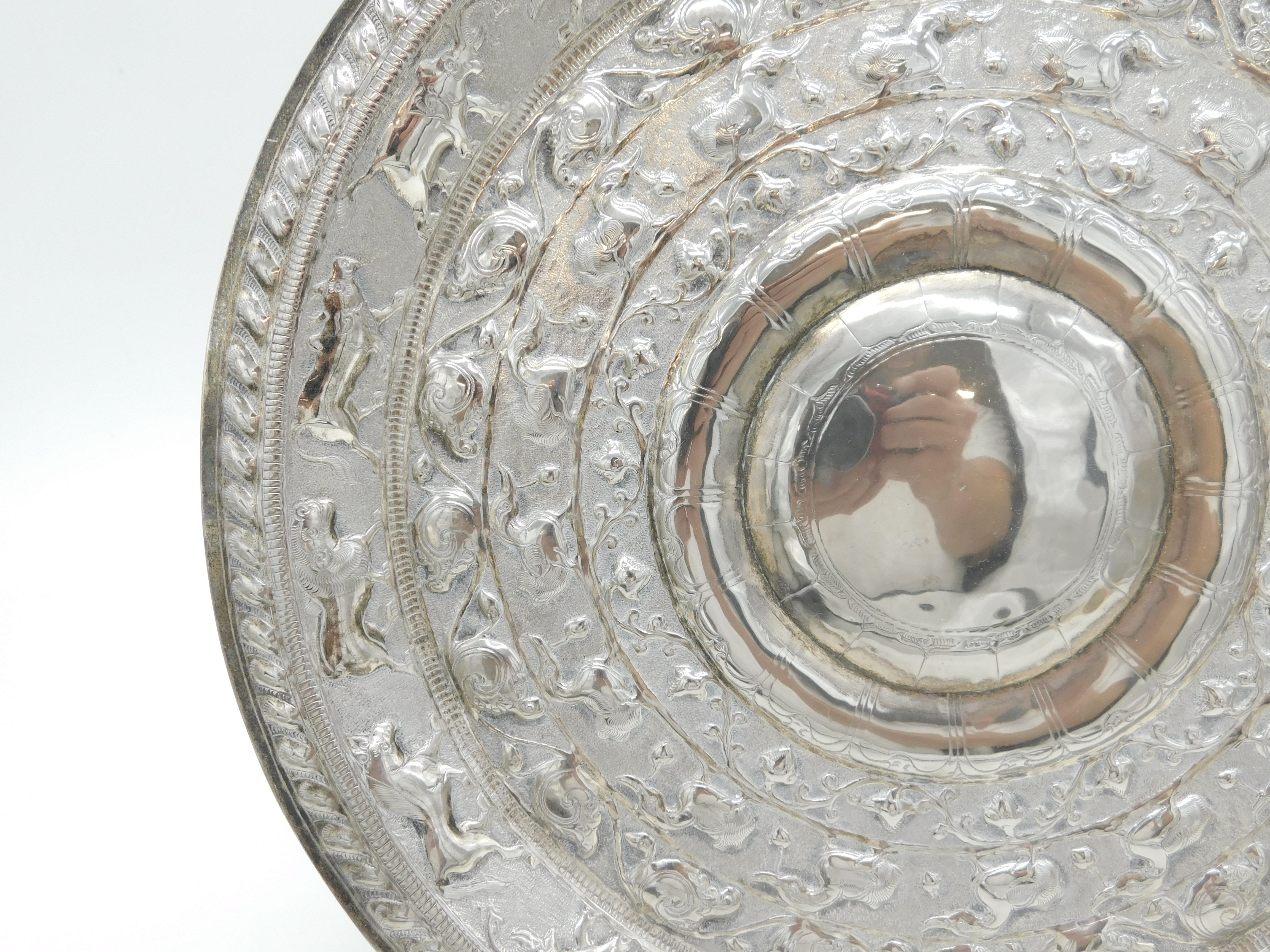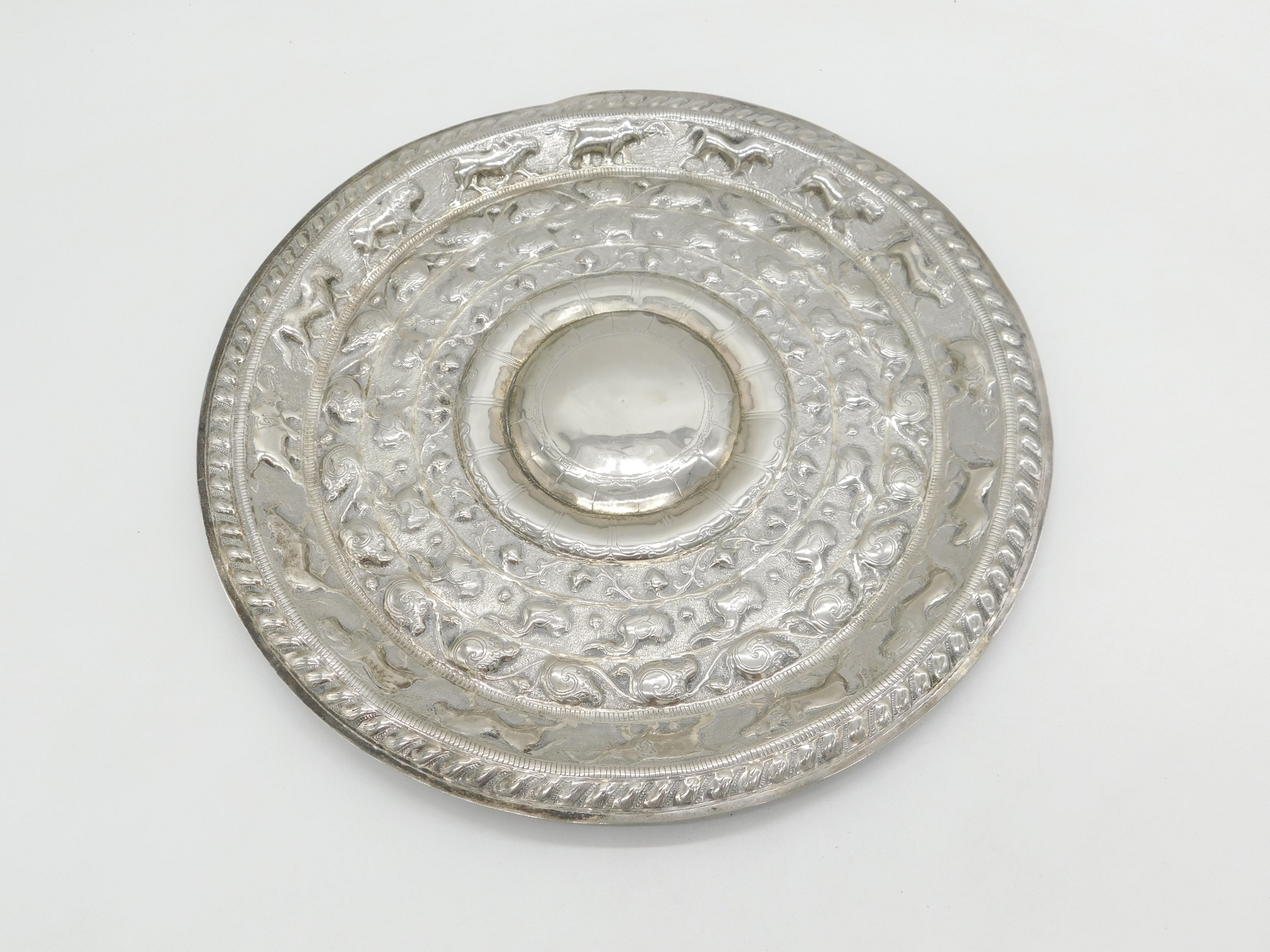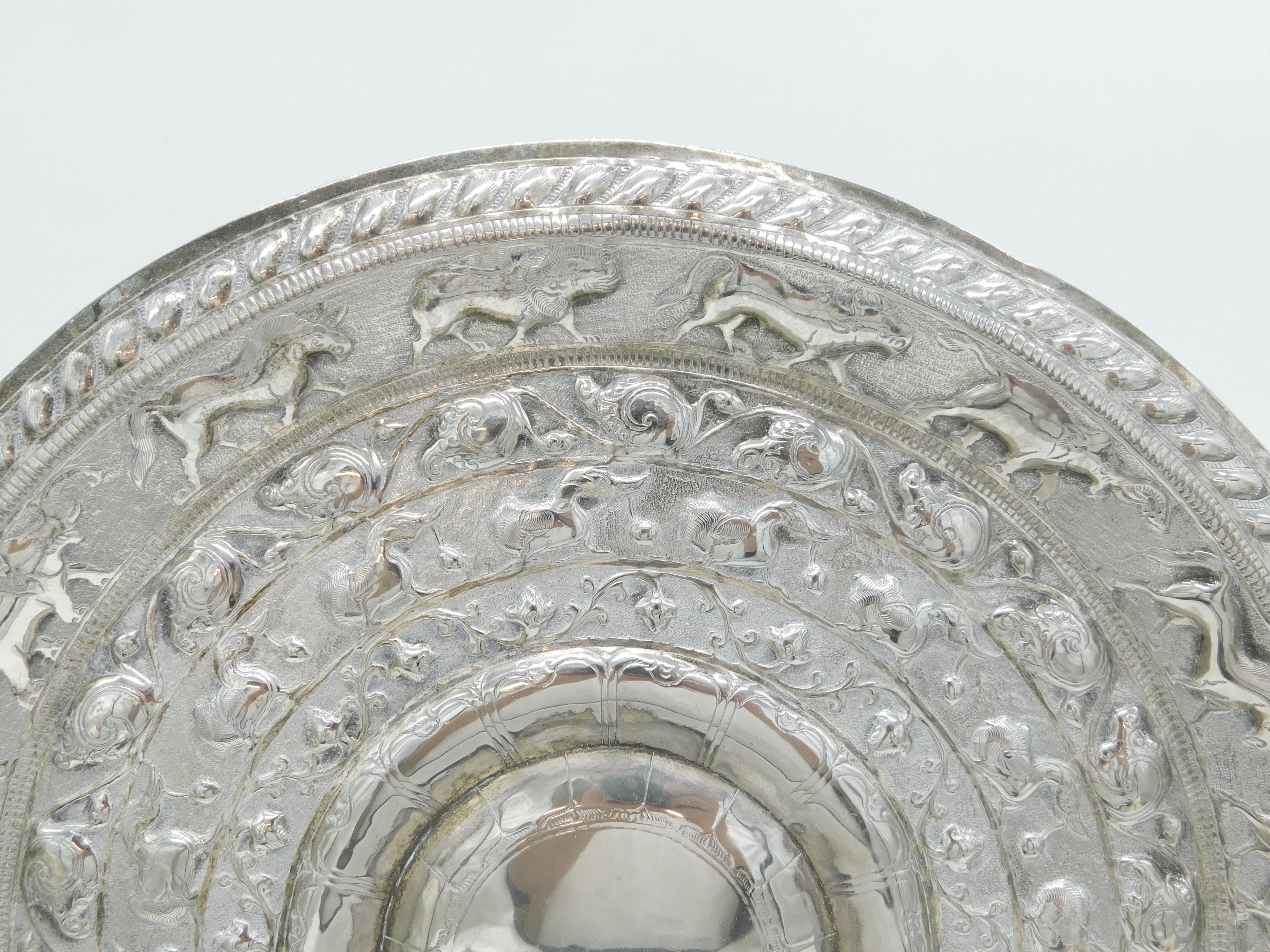 Details: A fantastic and wonderfully designed antique early 20th century Ceylon white metal large moonstone pattern dish or salver with charming detailing throughout c1910, the metal is untested and unmarked please note. This is a wonderful item that would make a perfect gift or addition to any collection.