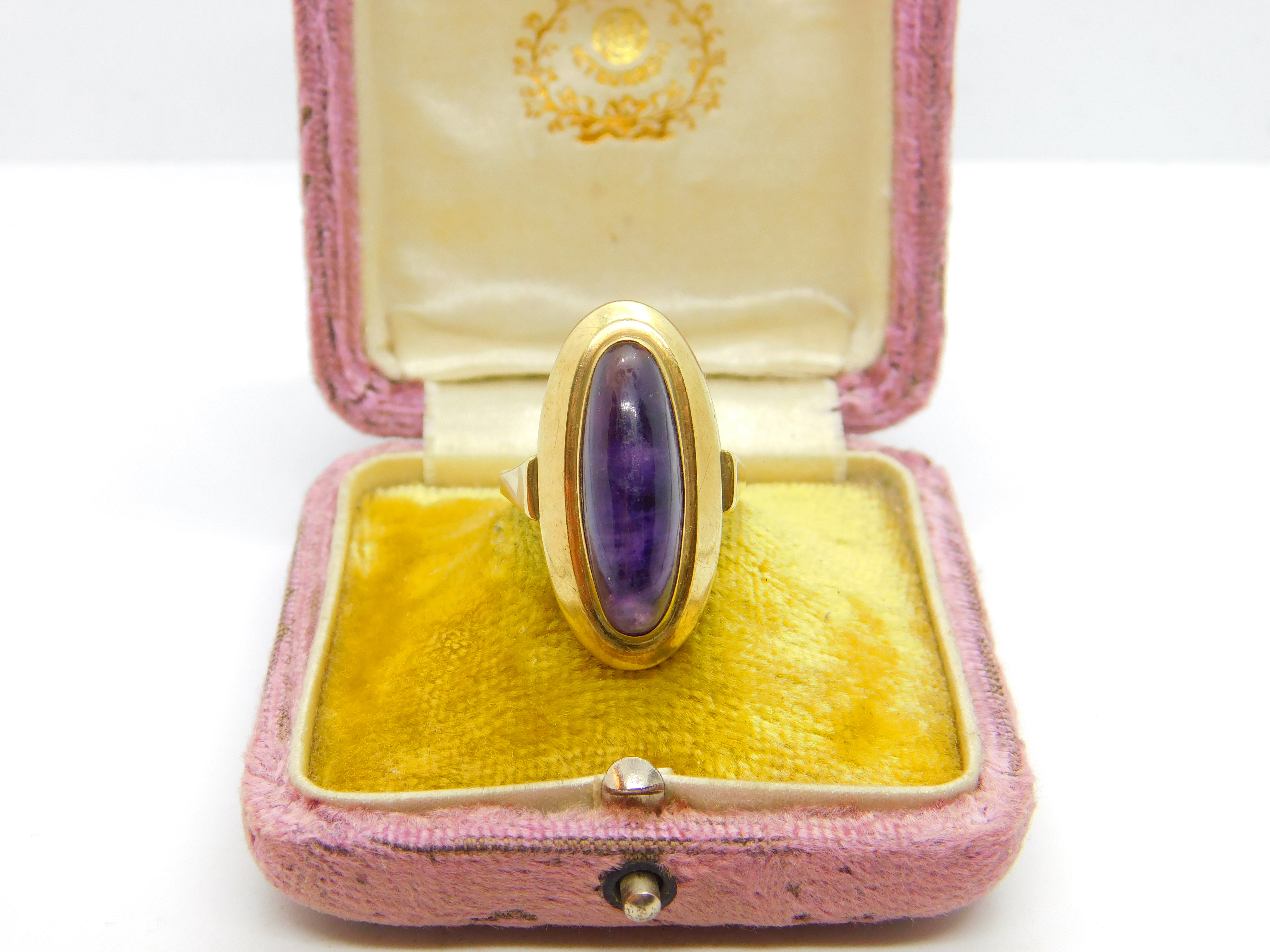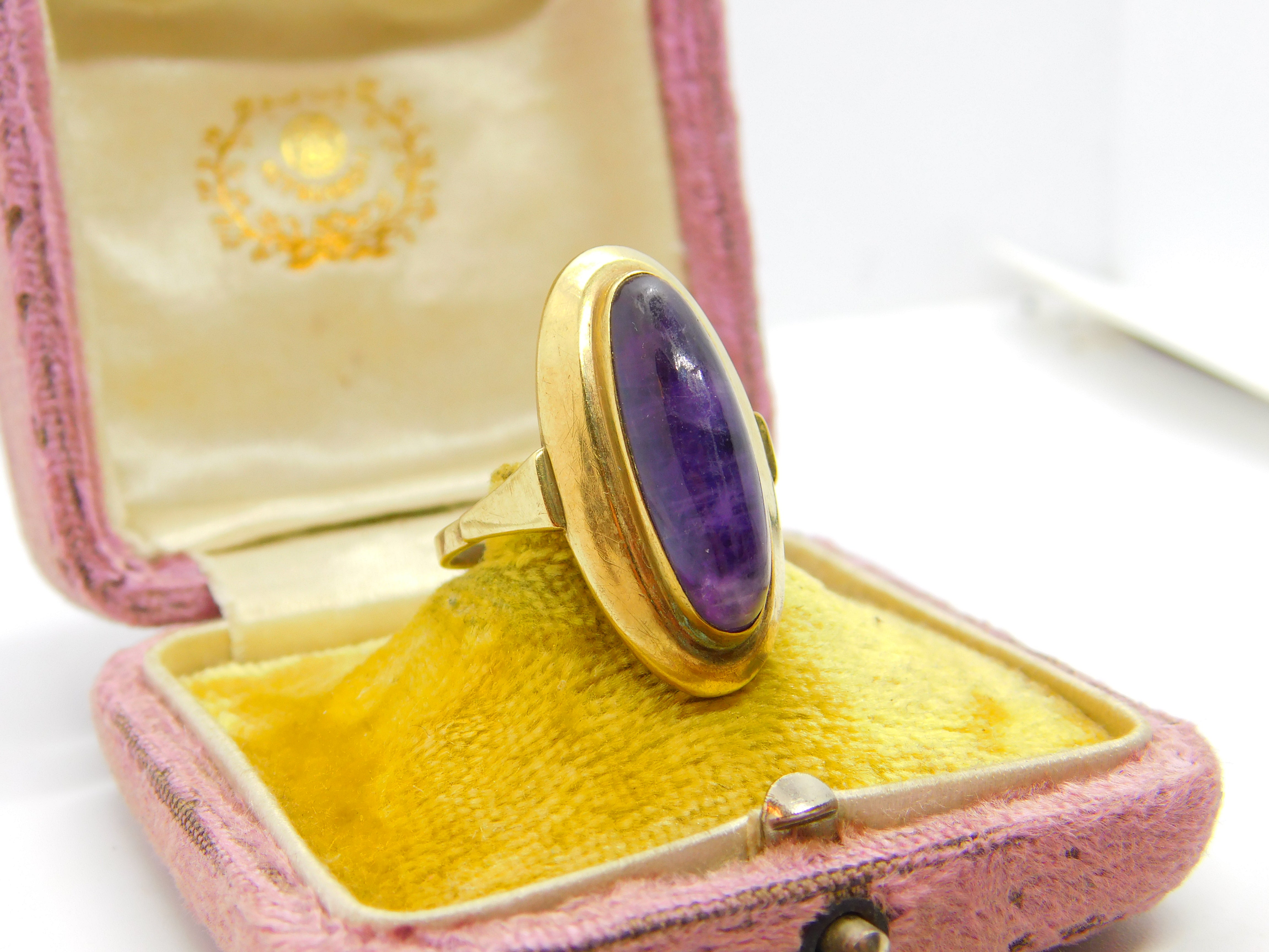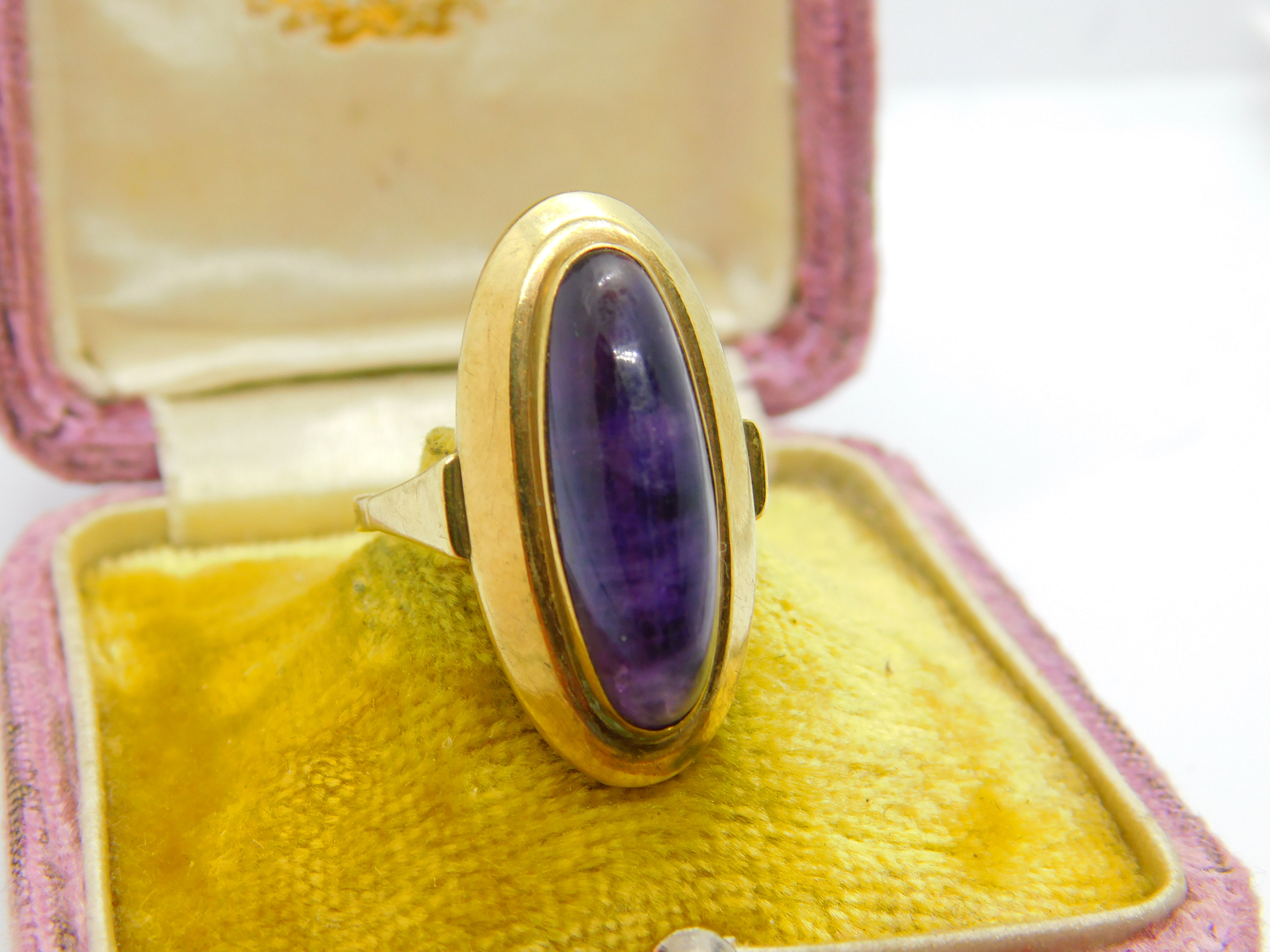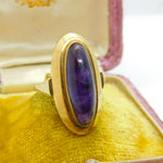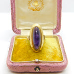 8ct Gold Cabochon Amethyst or Blue John Modernist Ring Antique c1930