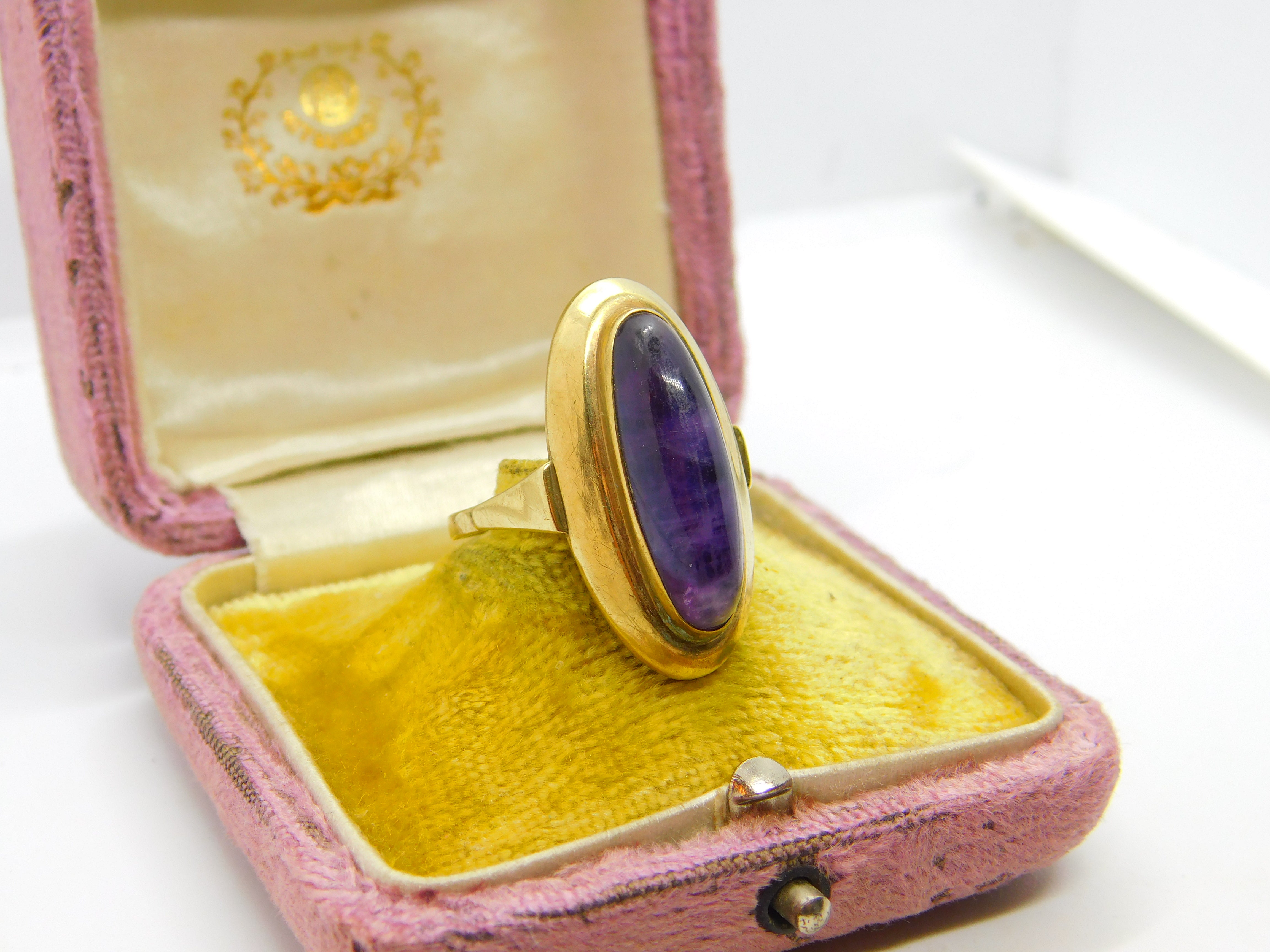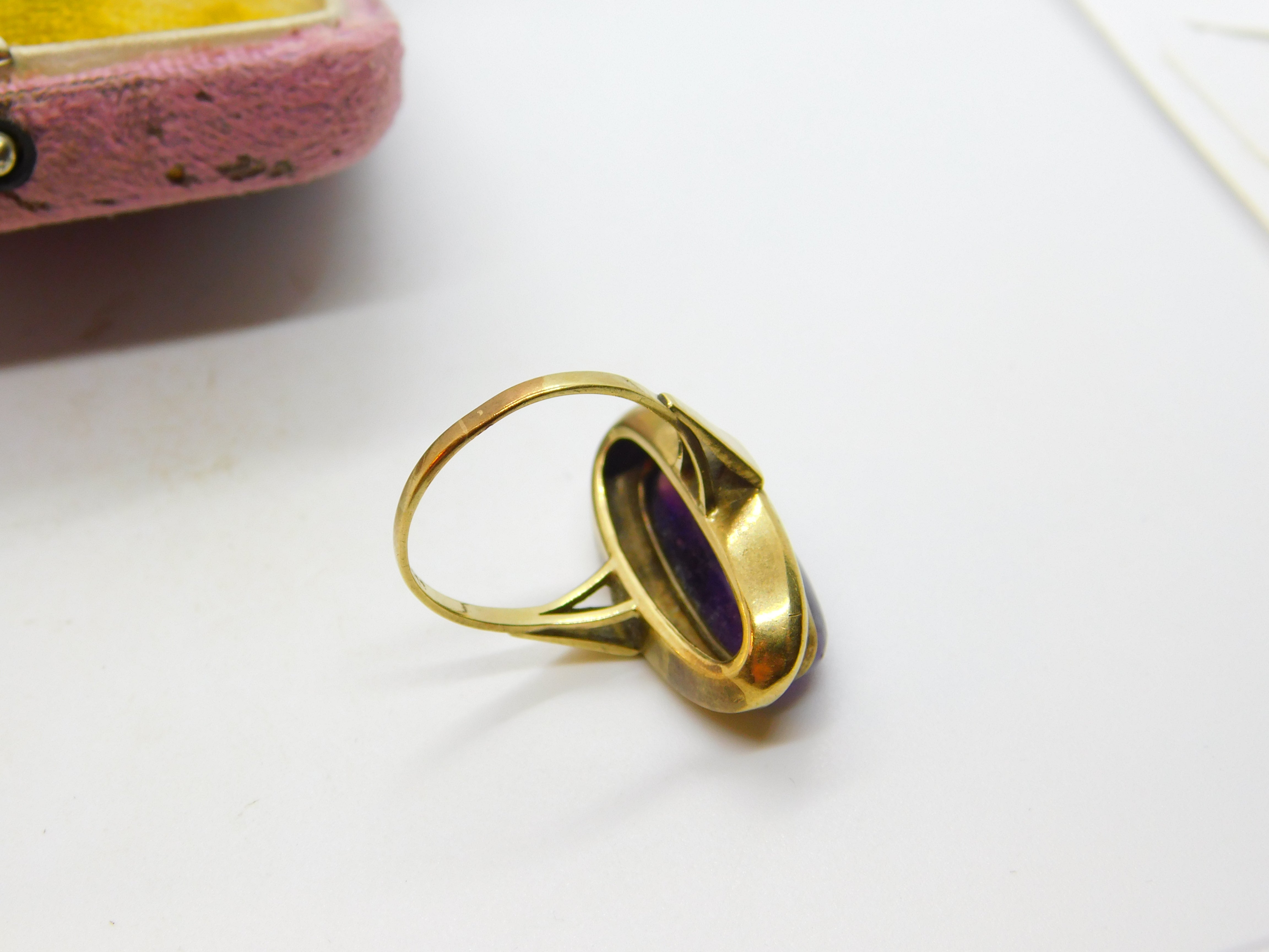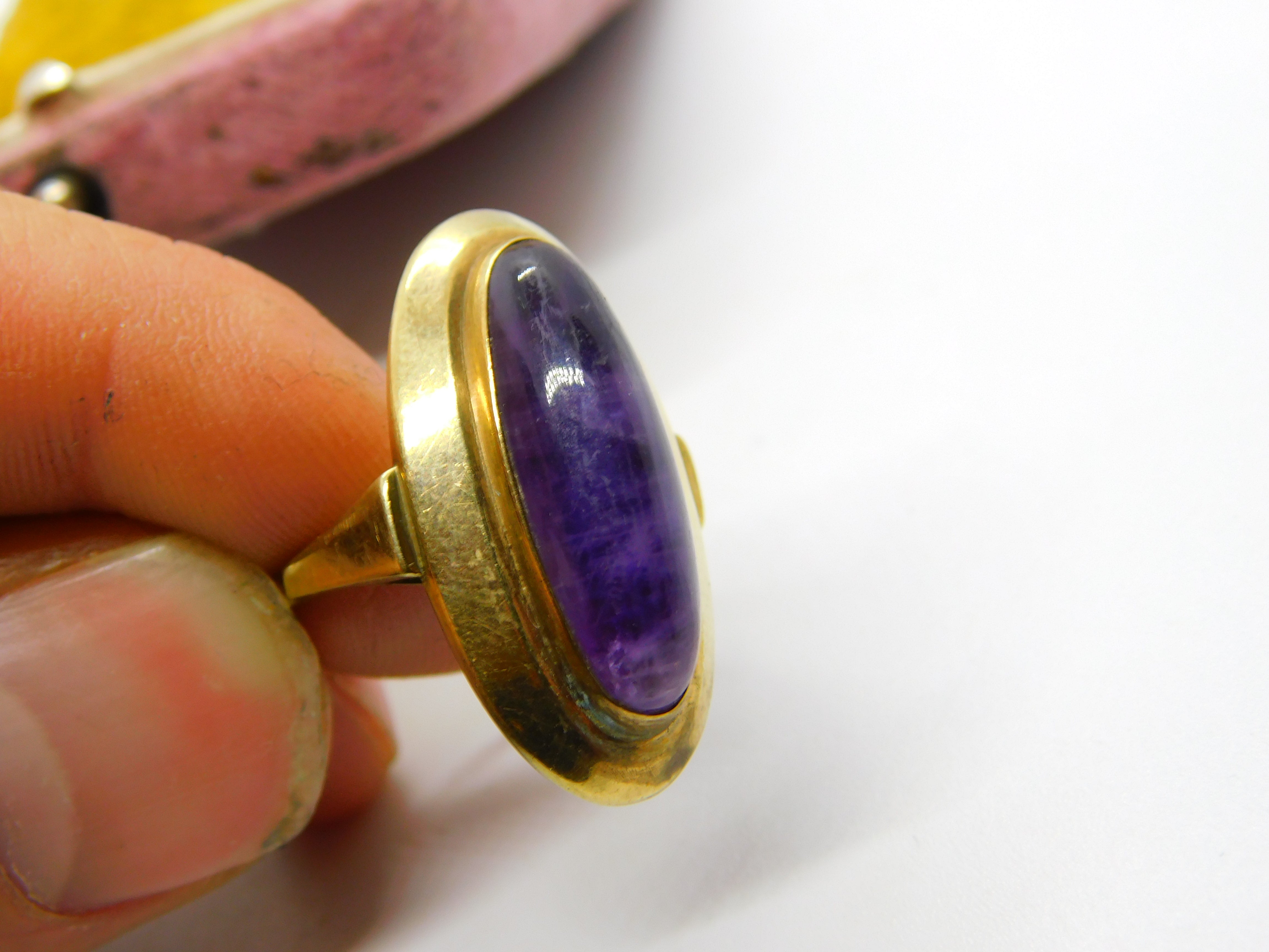 8ct Gold Cabochon Amethyst or Blue John Modernist Ring Antique c1930