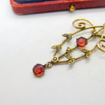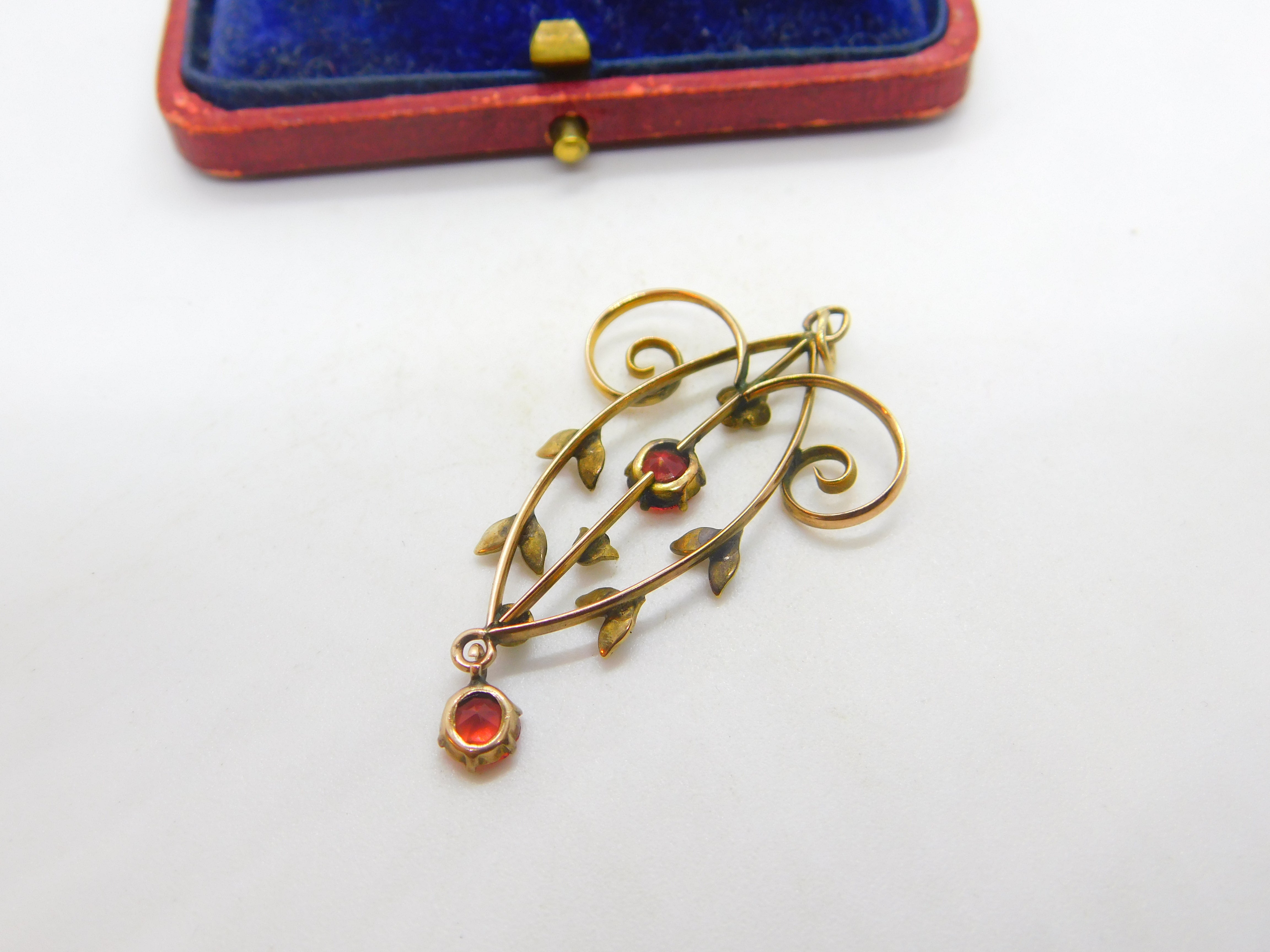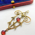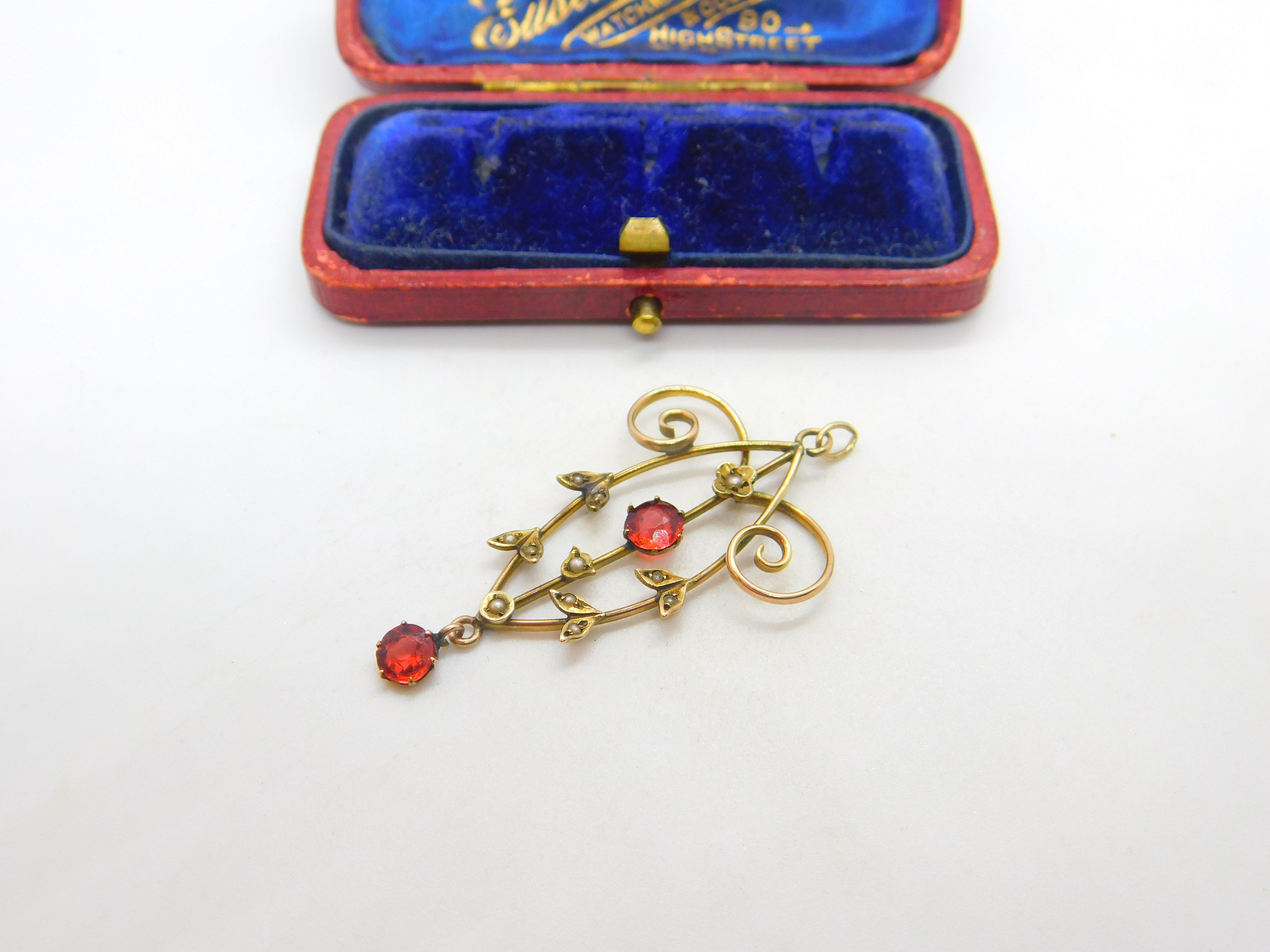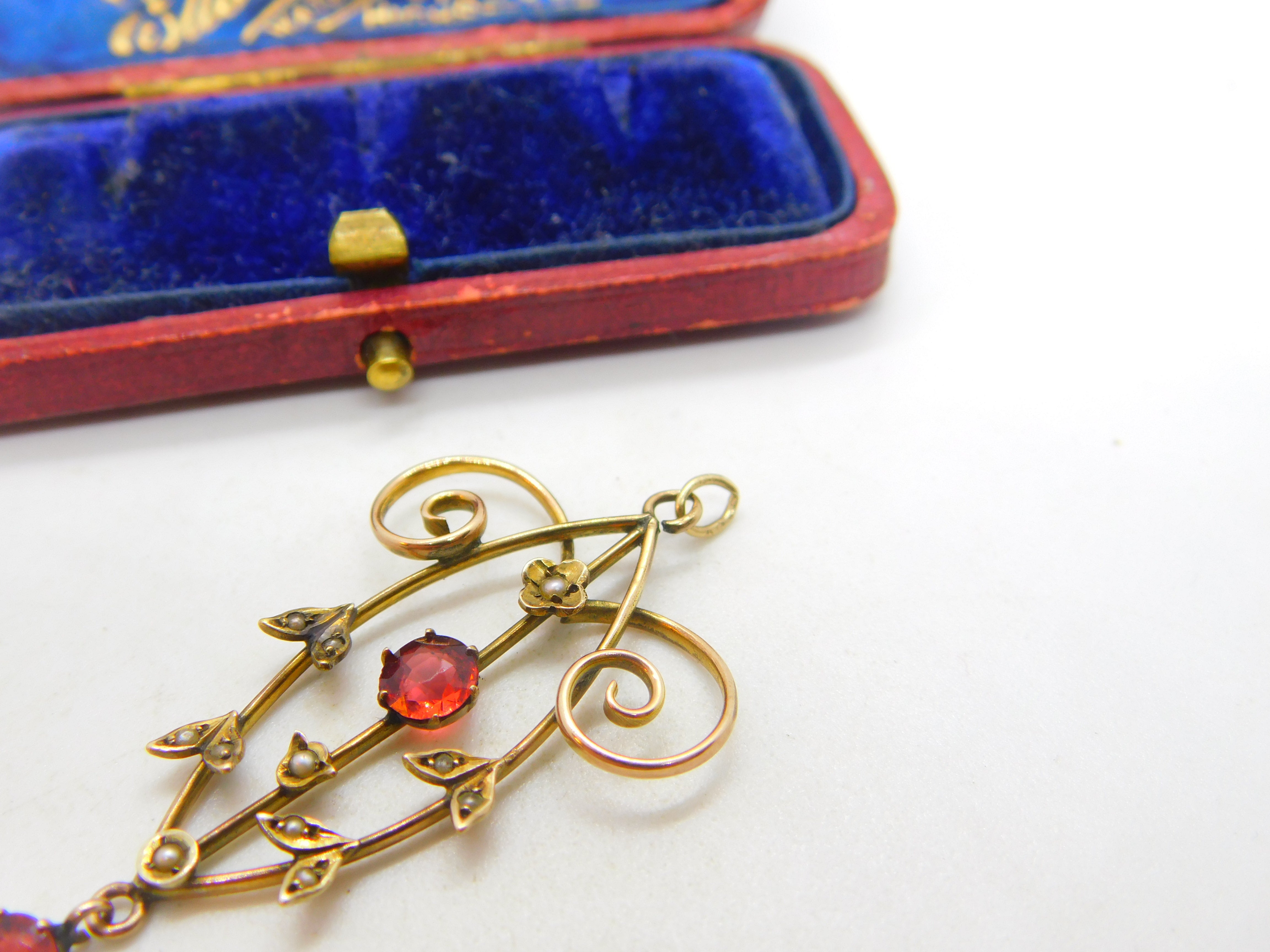 9ct Gold, Garnet & Seed Pearl Lavalier Drop Pendant Antique c1910 Edwardian