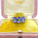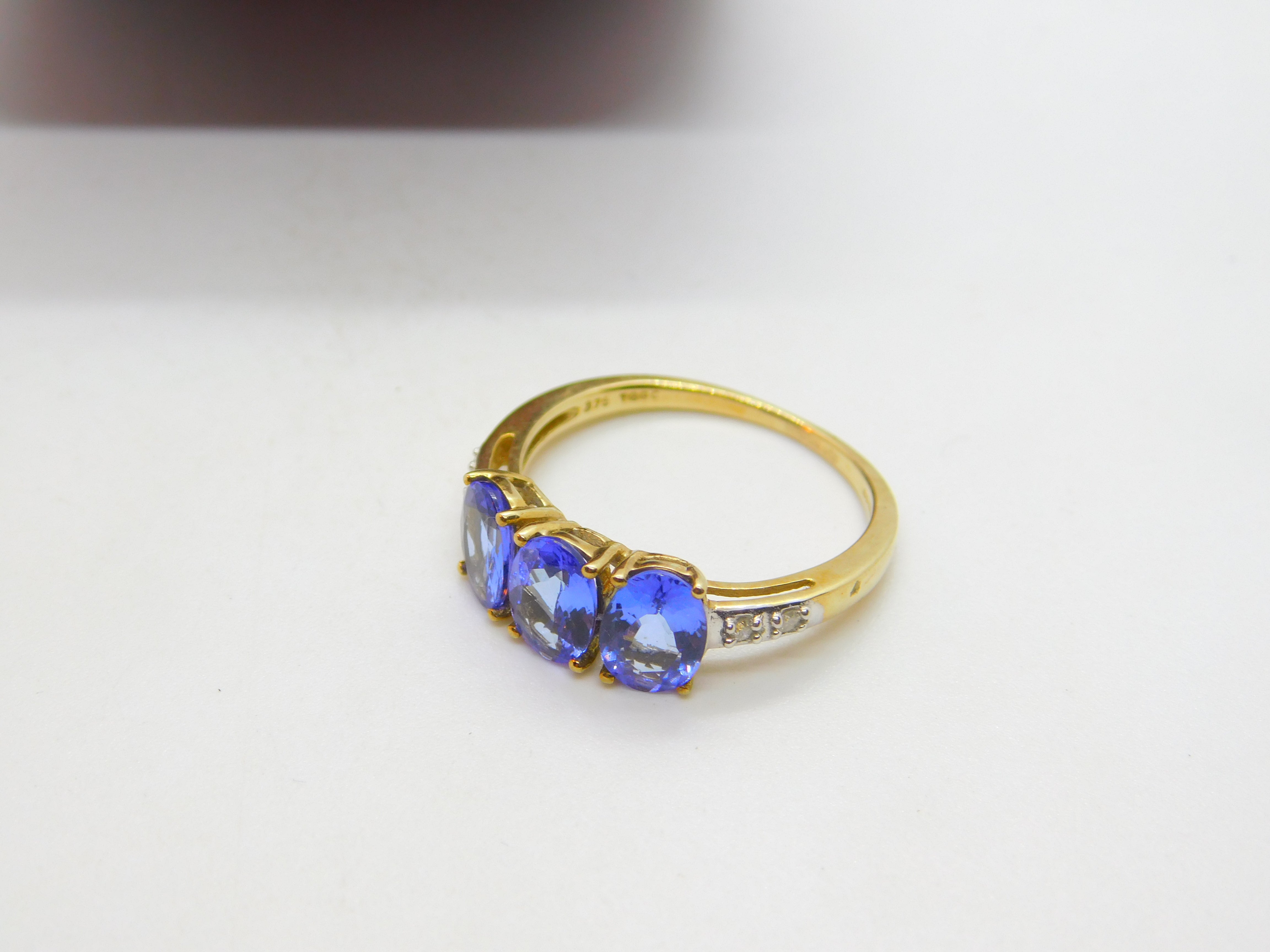 9ct Gold, Iolite & Diamond Three Stone Band Ring Vintage 2012 Birmingham