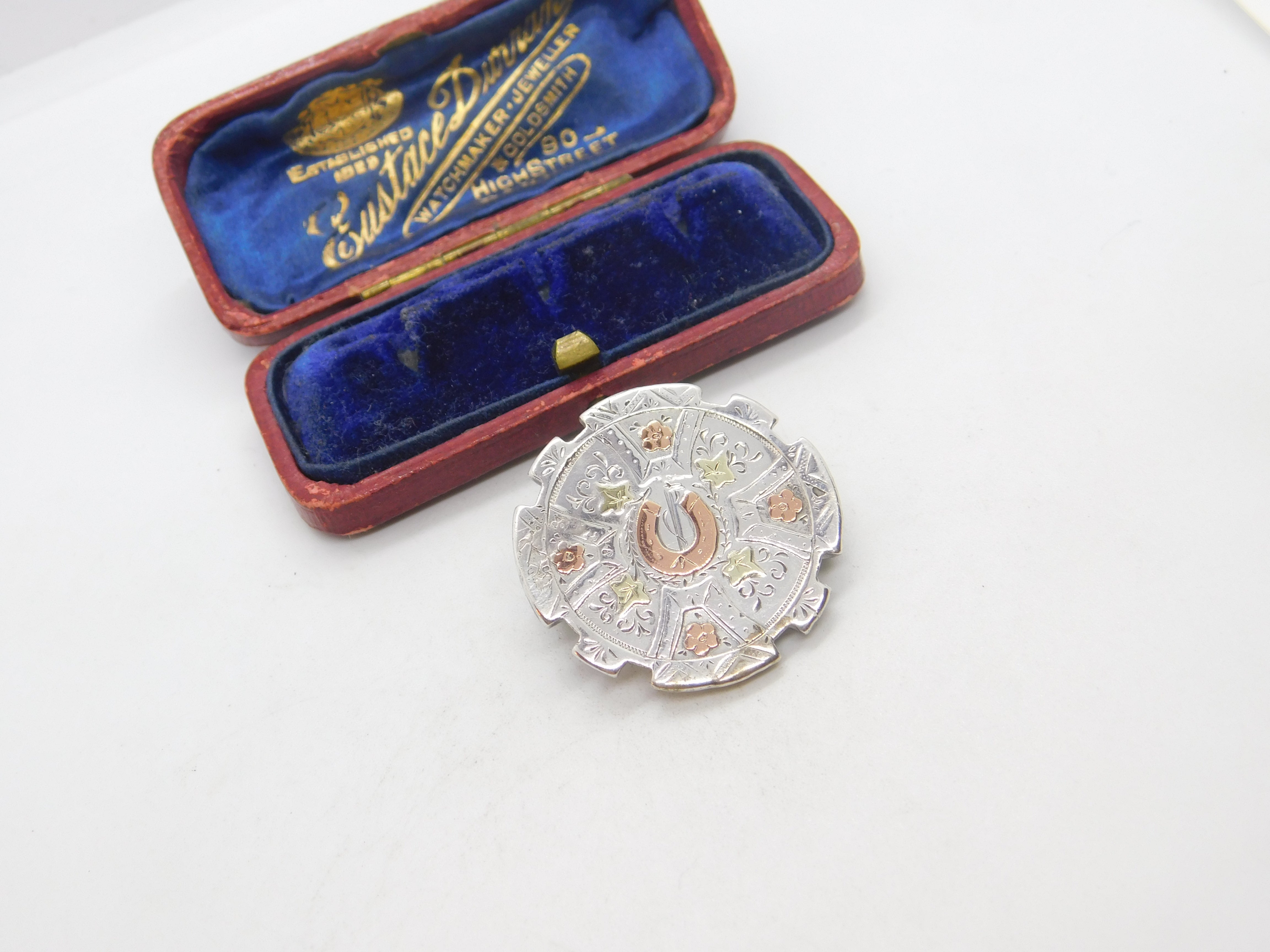 9ct Gold on Sterling Silver Horseshoe Sweetheart Brooch 1889 Birmingham