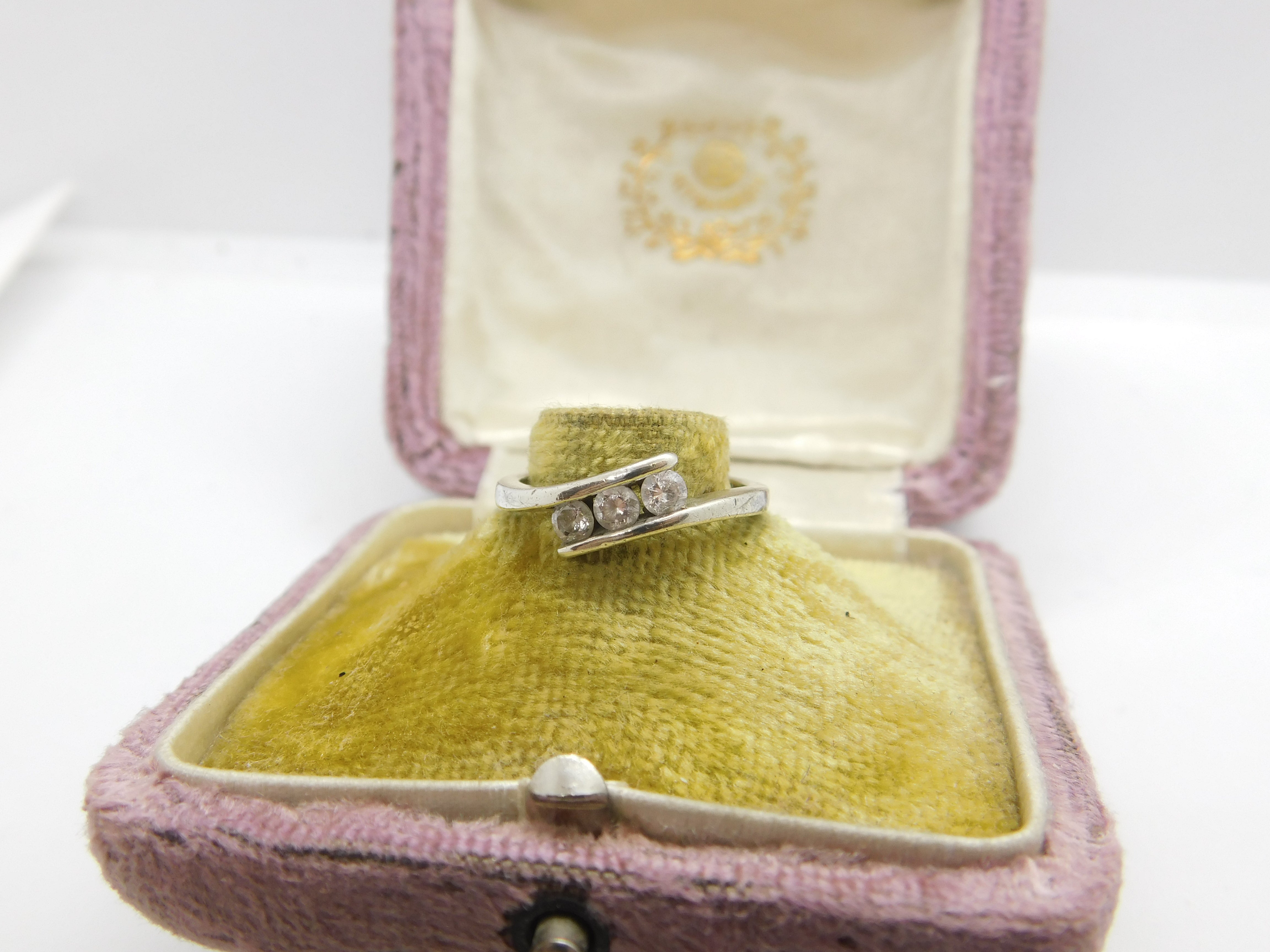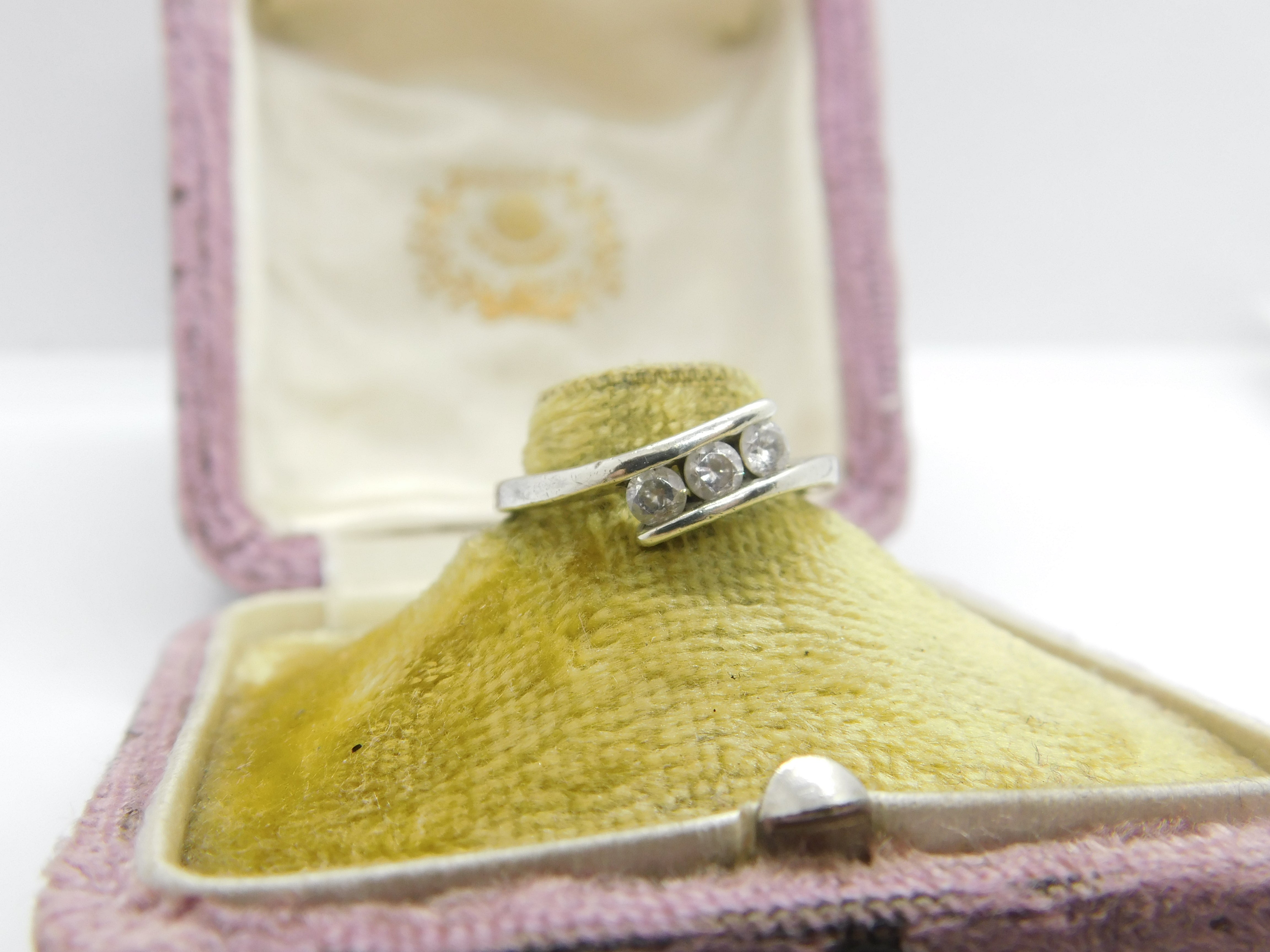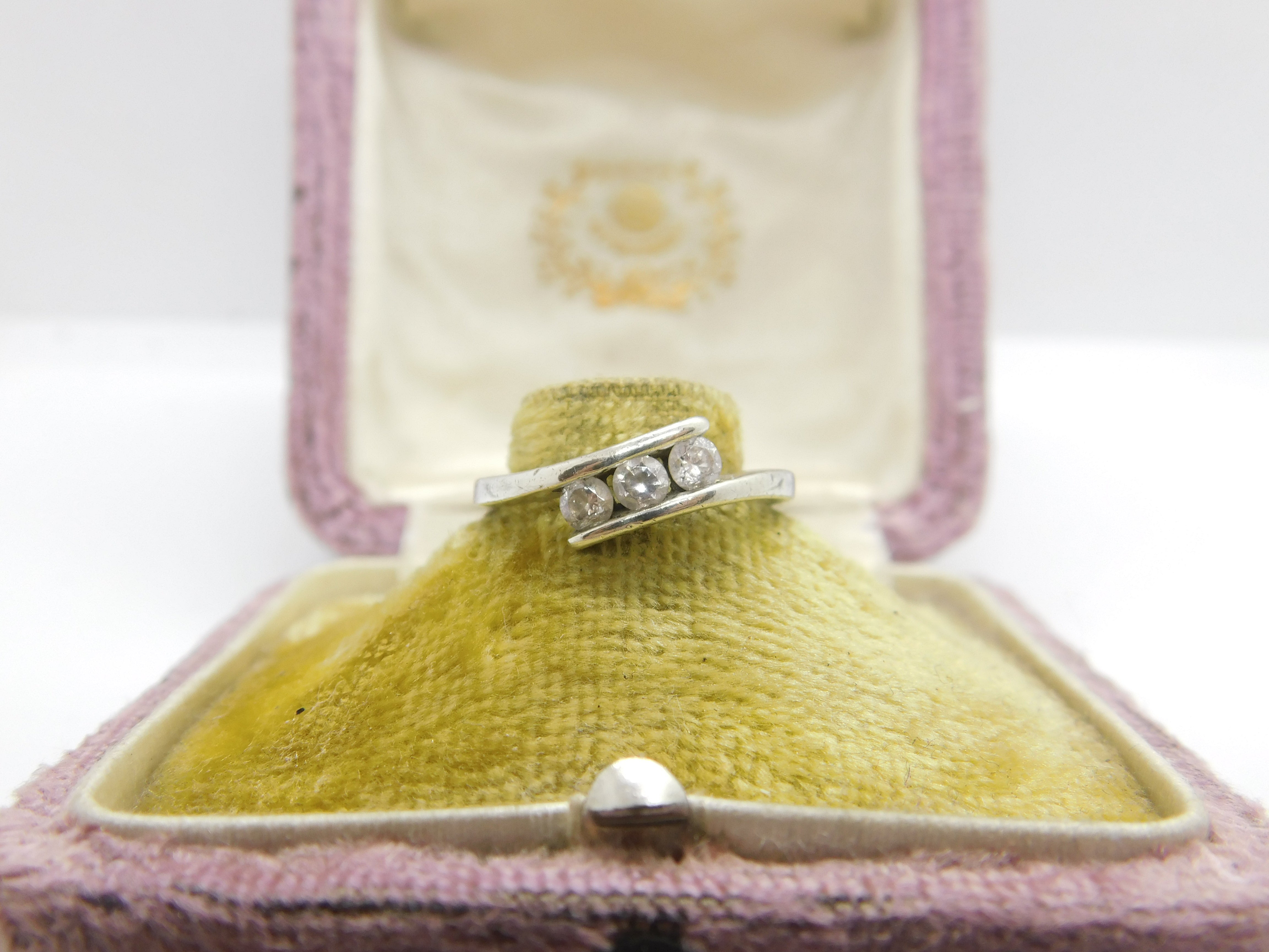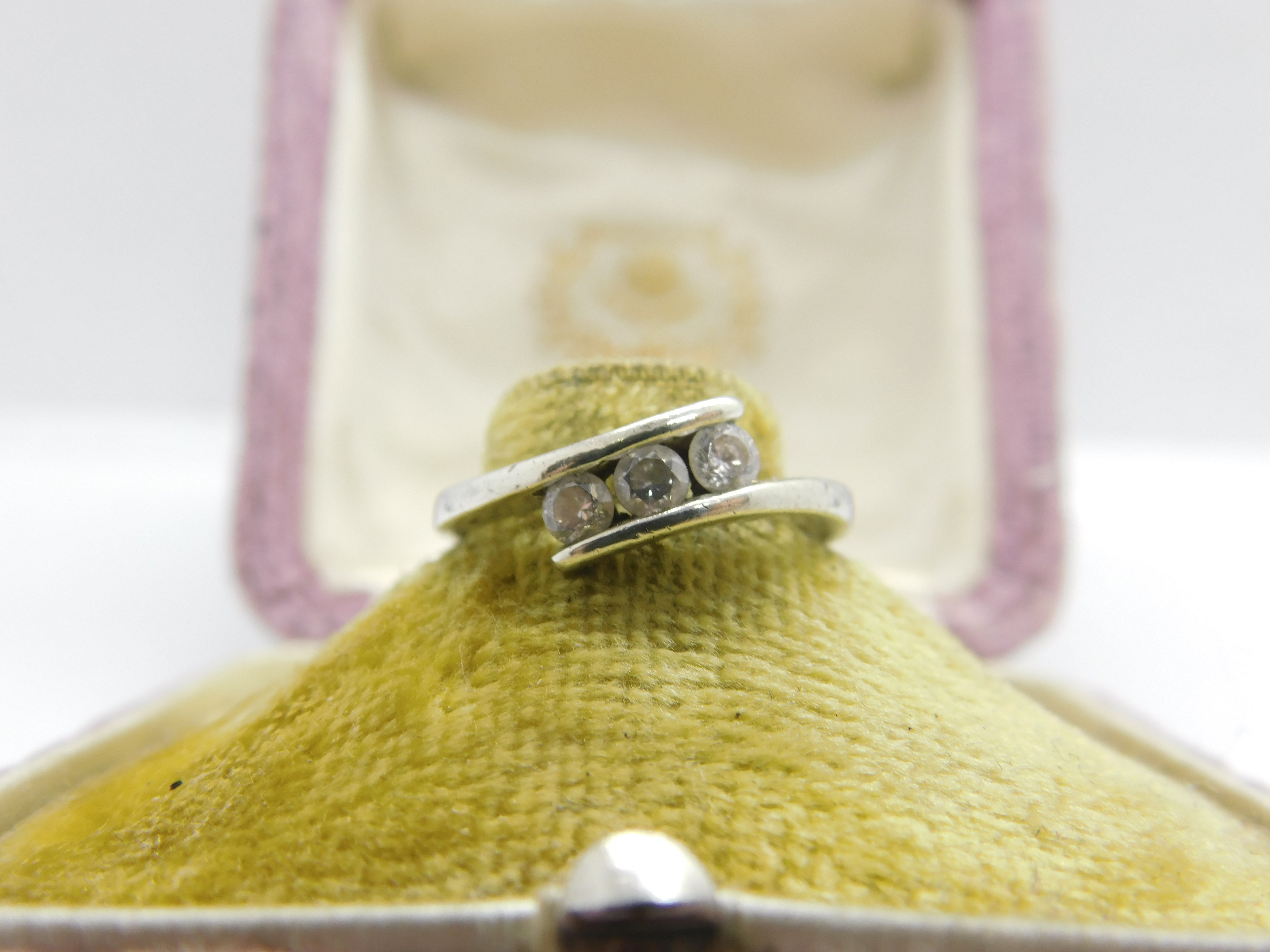 Details: A fantastic and wonderfully designed vintage 9ct white gold and diamond paste crossover ring with lovely detailing hallmarked Sheffield c1980 to the interior band. This is a wonderful item that would make a perfect gift or addition to any collection. The BOX pictured is for PRESENTATION ONLY and is NOT included in the listings but used to frame the pictures unless specifically stated otherwise.
