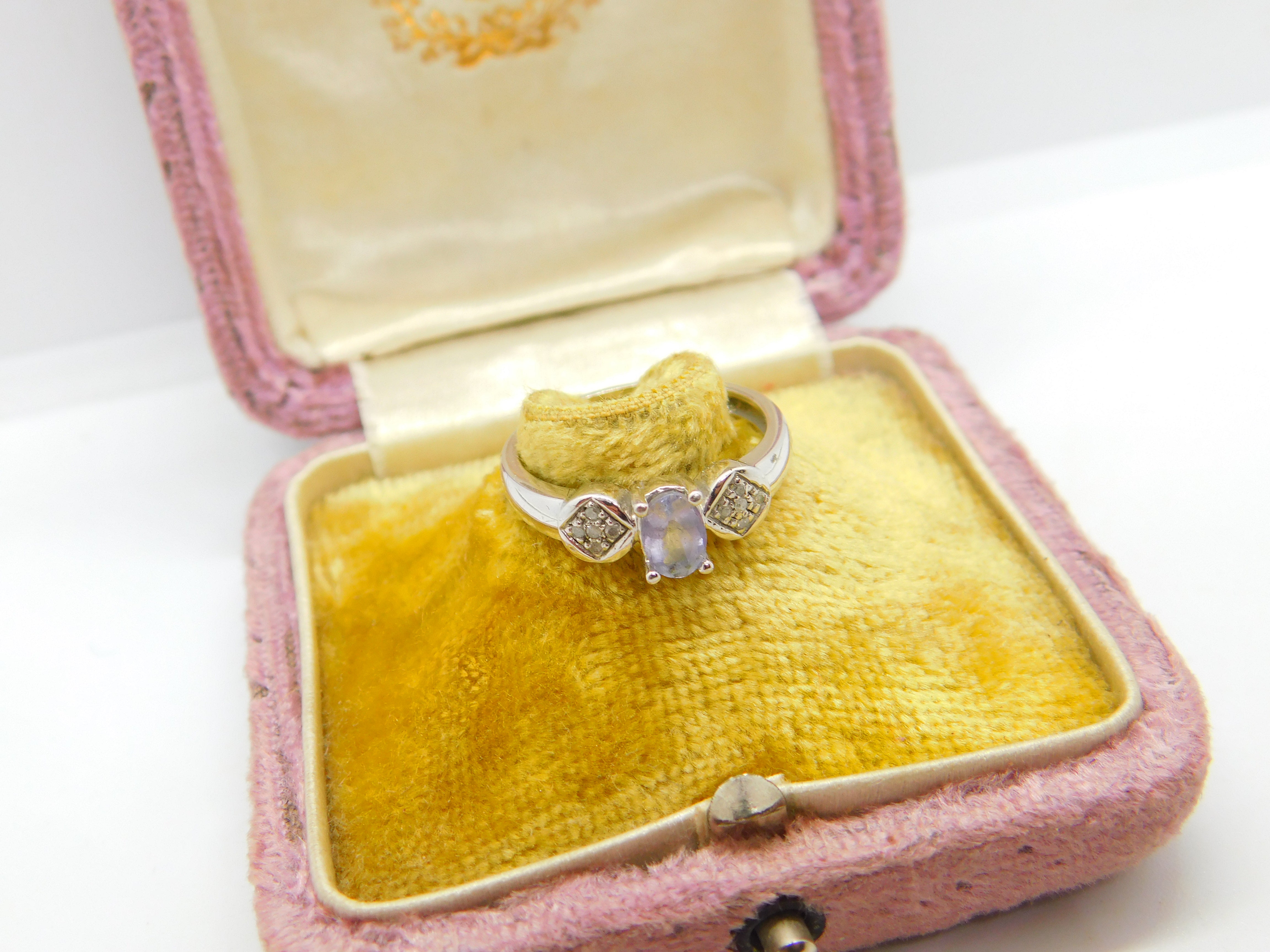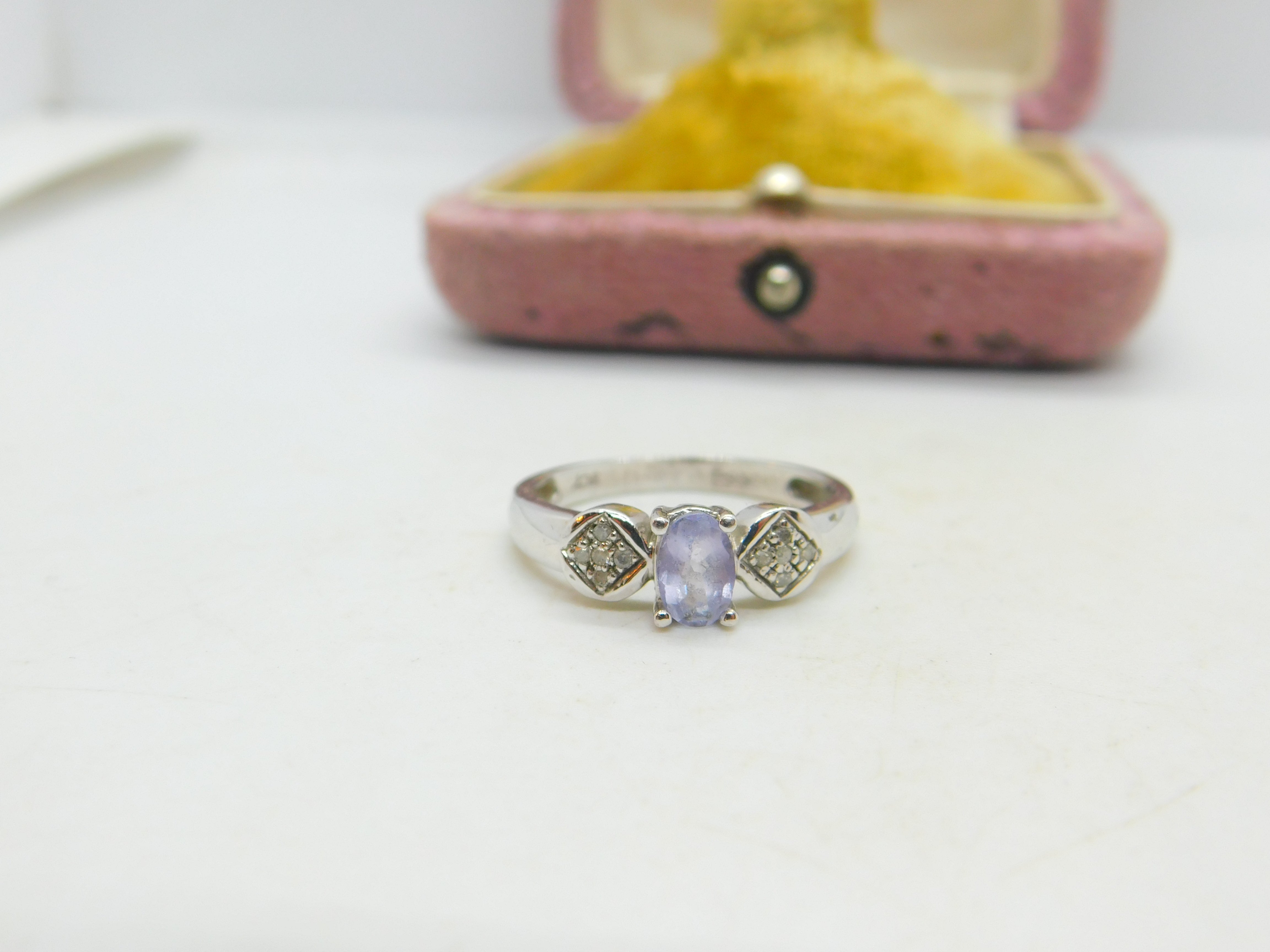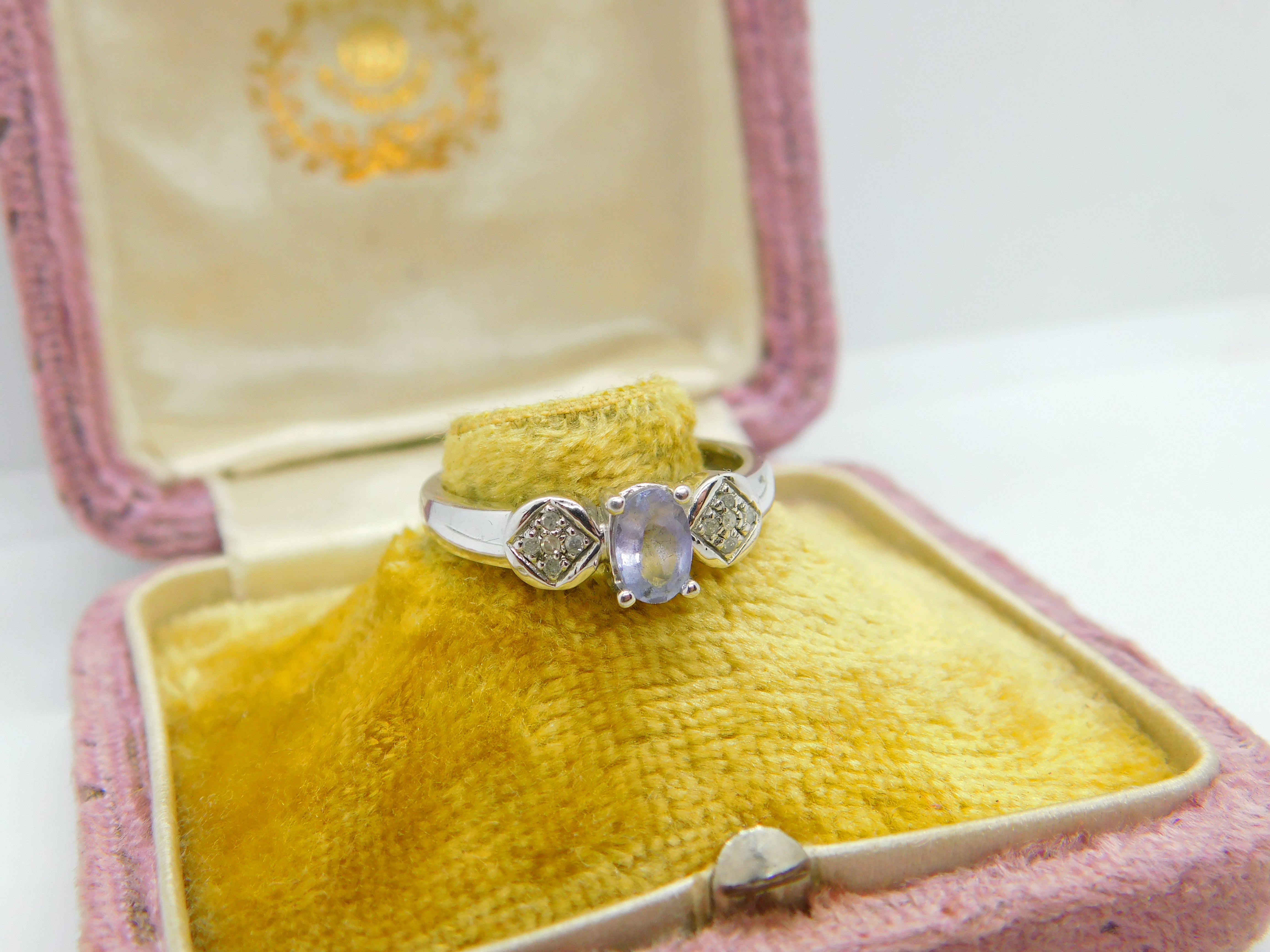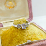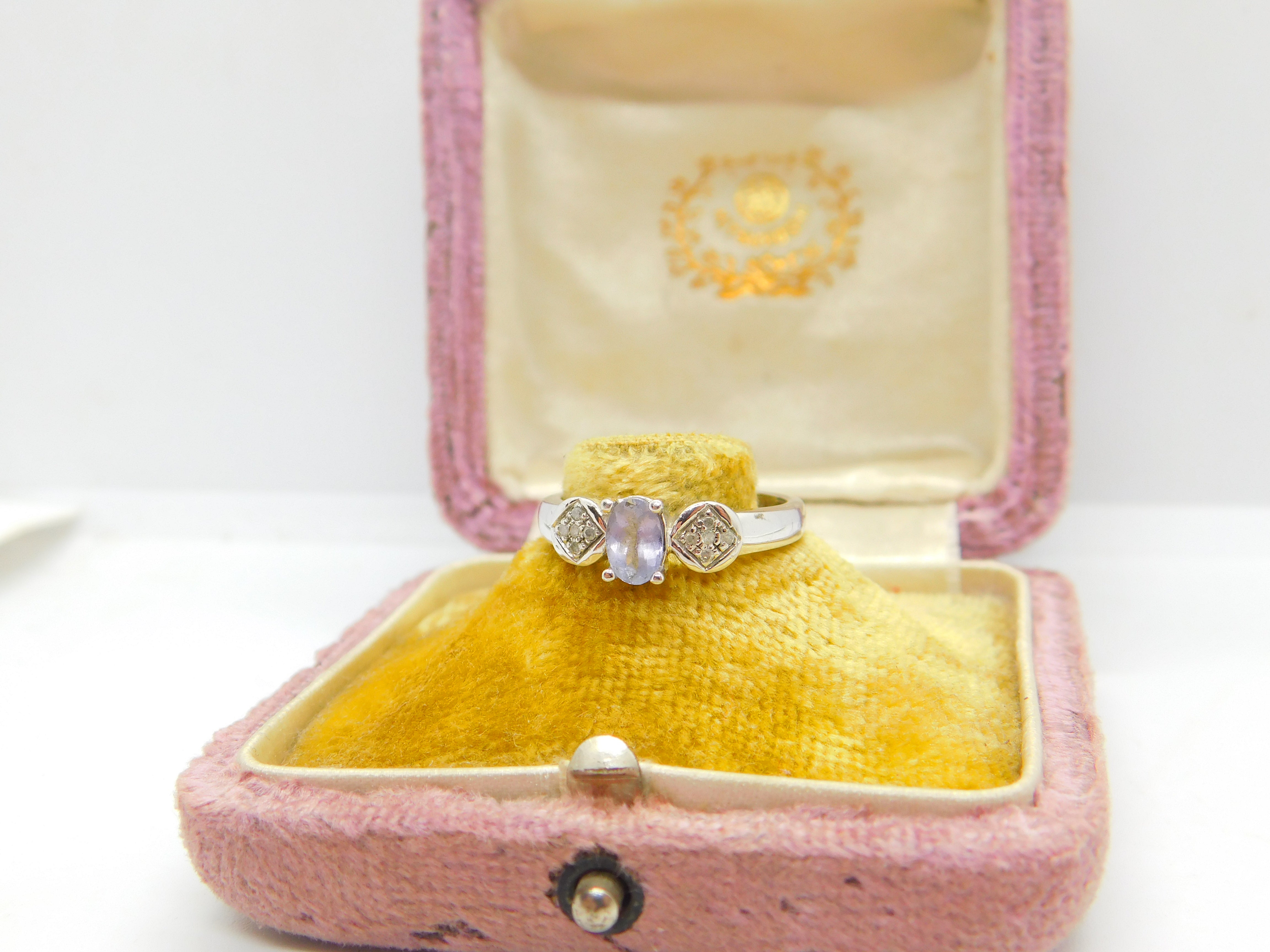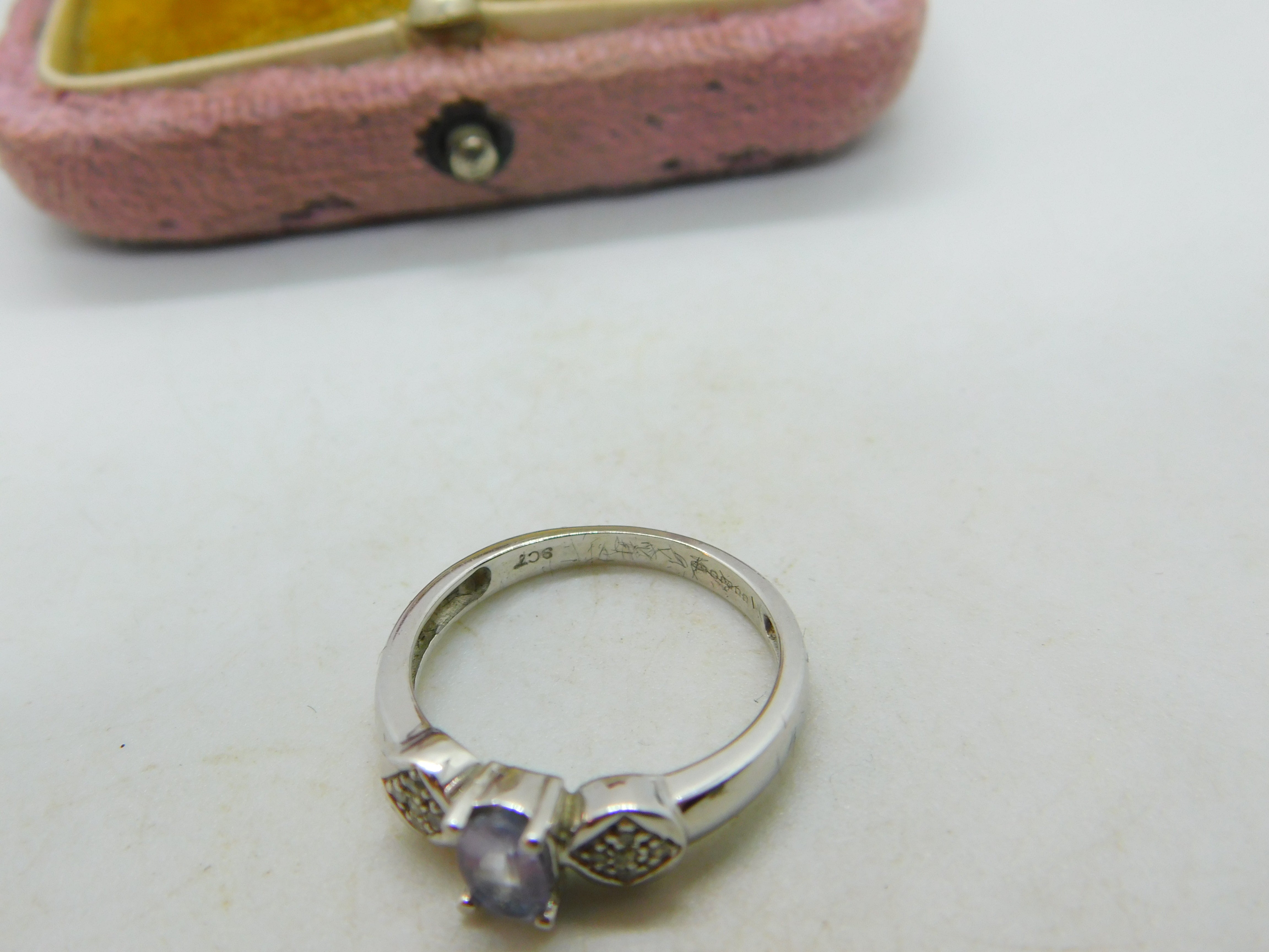 9ct White Gold, Tanzanite & Diamond Paste Dress Ring Vintage 2006 London