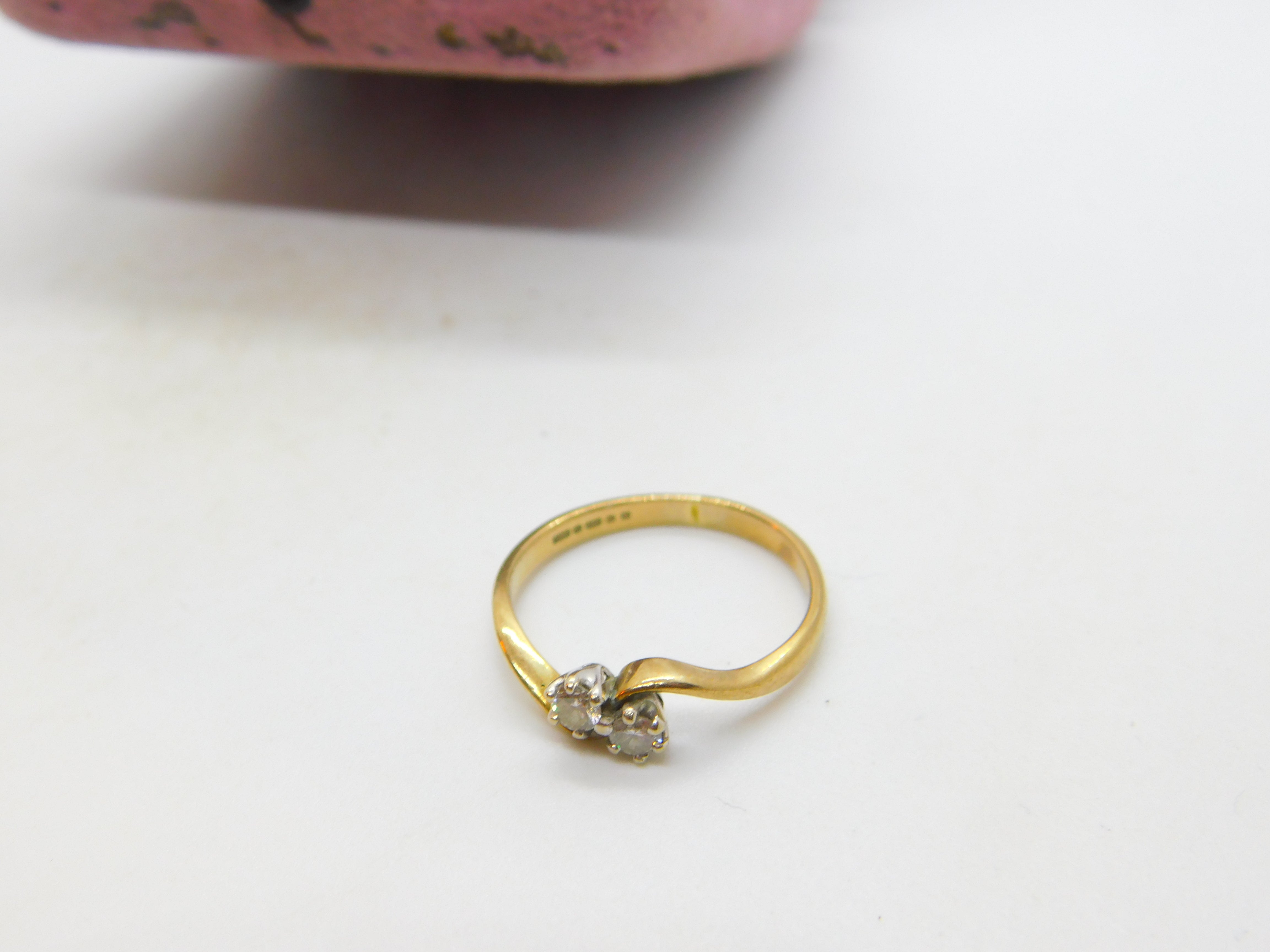 9ct Yellow Gold & 0.2ct Diamond Set Crossover Band Ring 2005 Birmingham