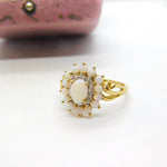 9ct Yellow Gold, Cabochon Opal & Spinel Floral Cluster Ring 2001 Birmingham