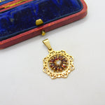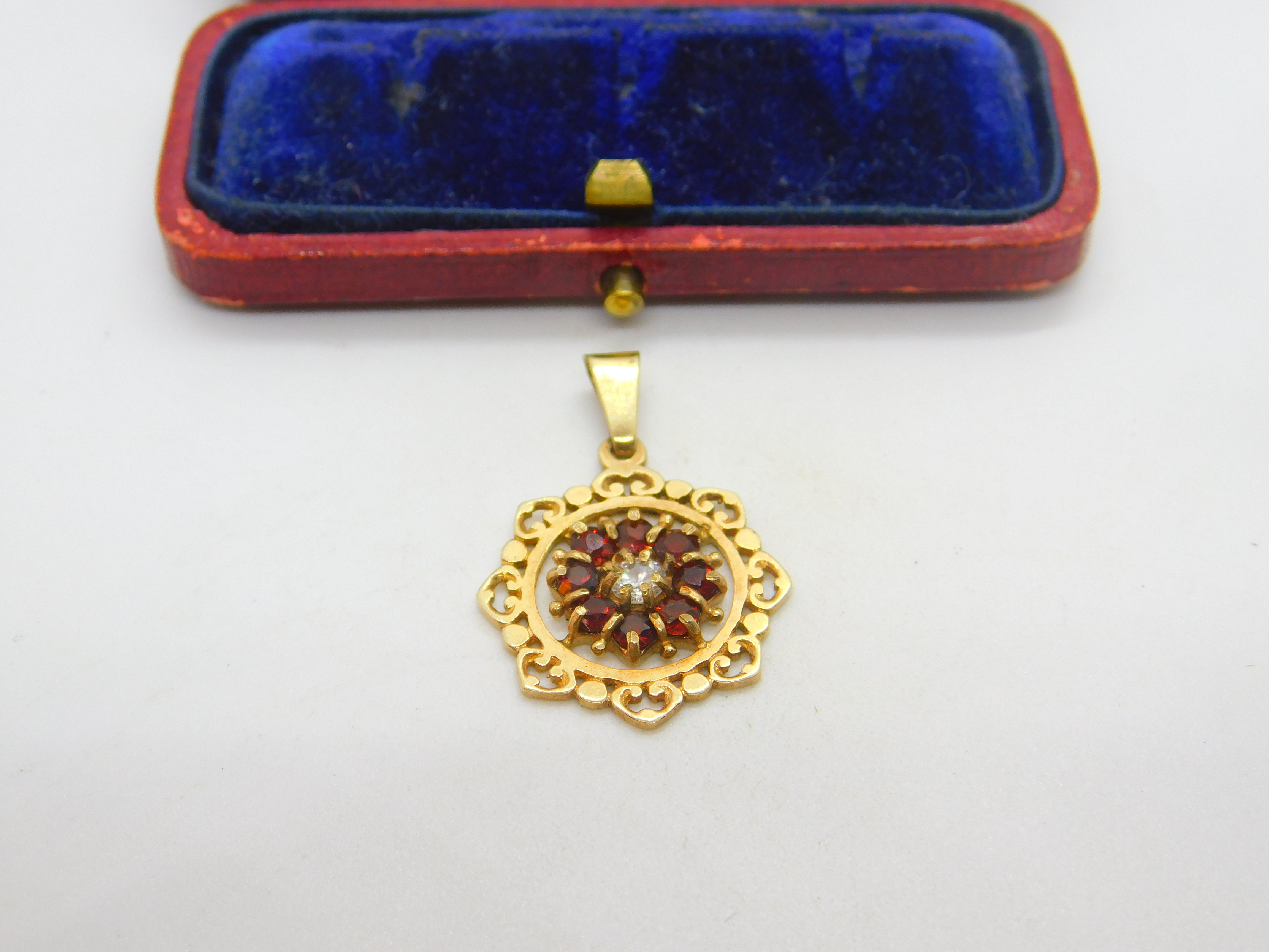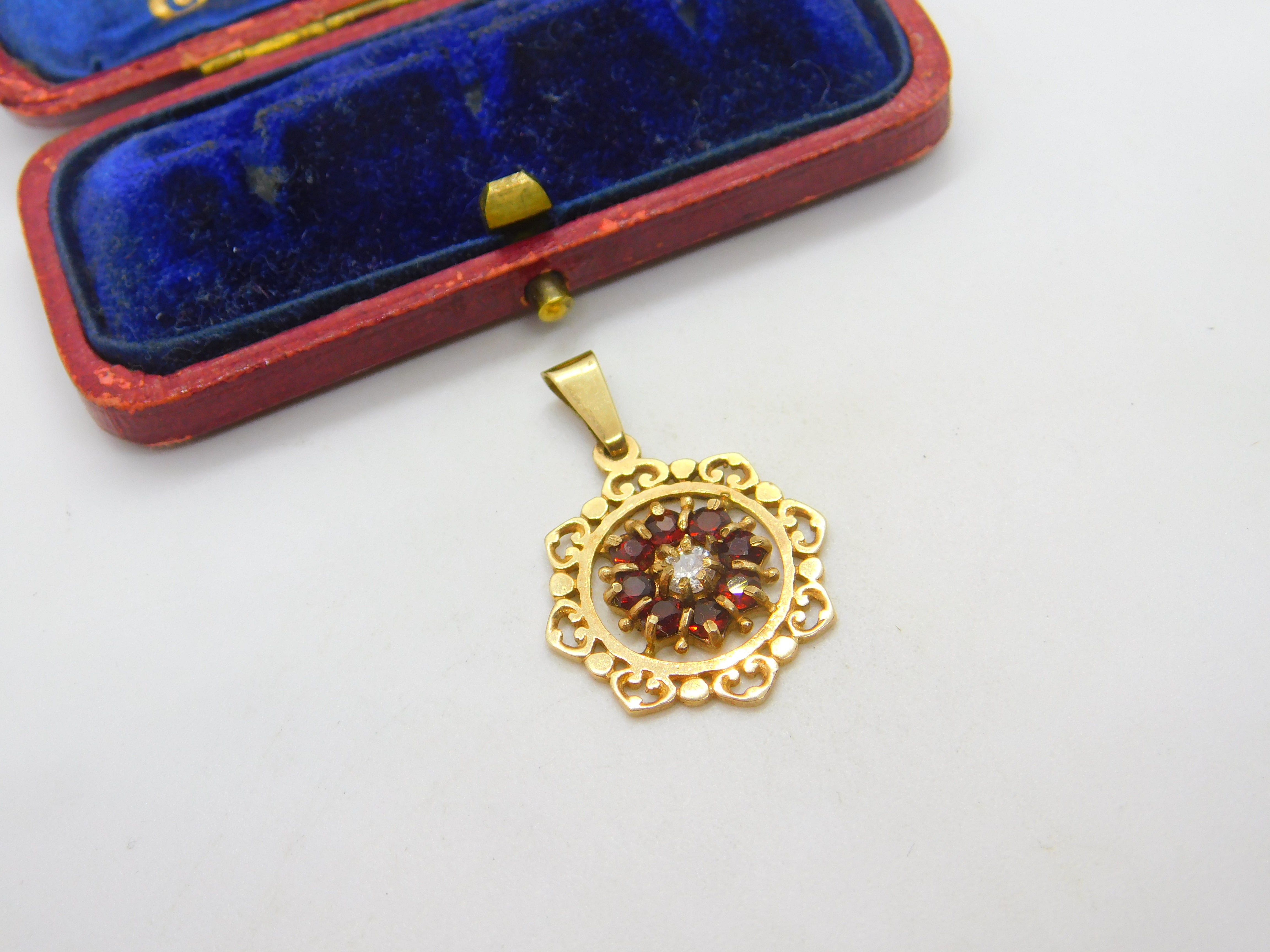 9ct Yellow Gold, Garnet & 0.1ct Diamond Paste Drop Pendant 1974 Birmingham
