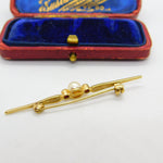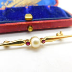 9ct Yellow Gold, Garnet & Pearl Set Sweetheart Bar Brooch Vintage 1987 London