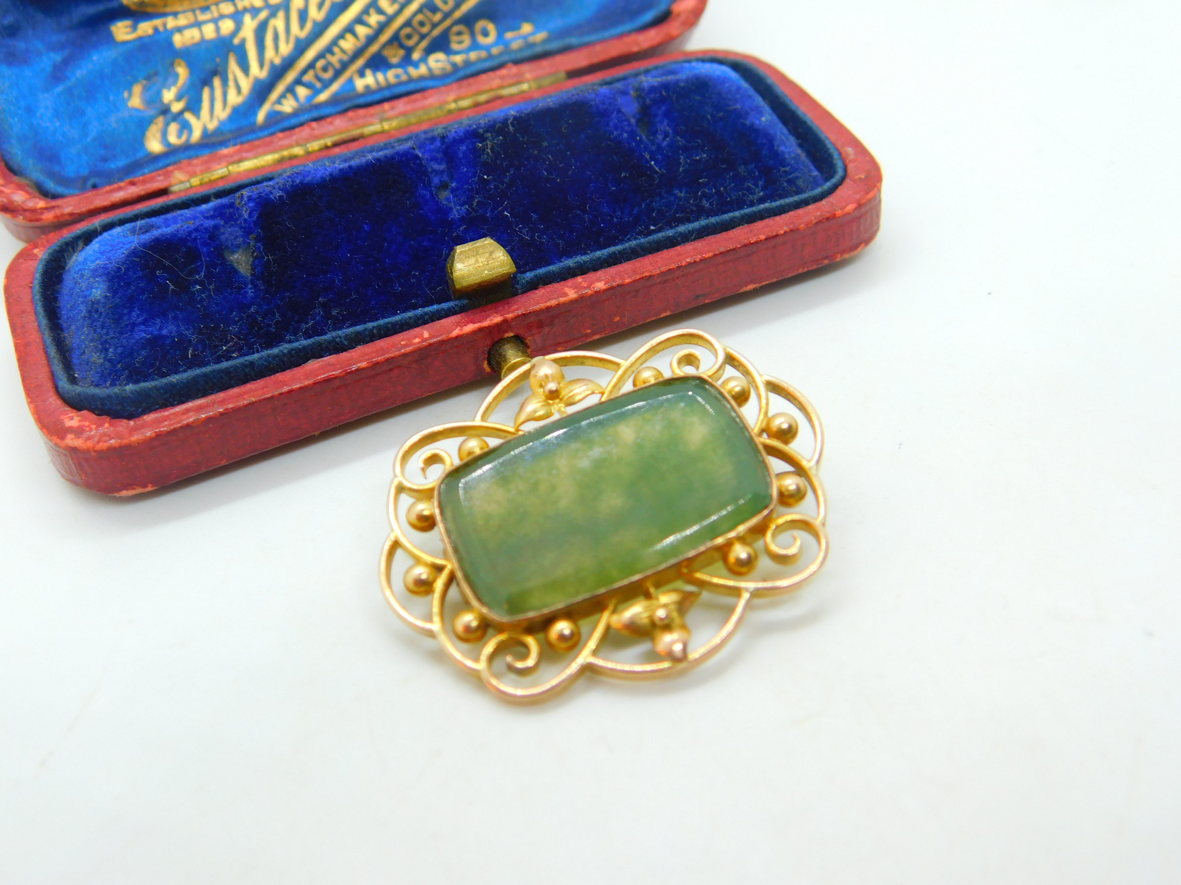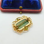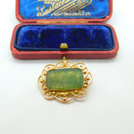 9ct Yellow Gold & Moss Agate Set Art Nouveau Brooch Antique c1900 Victorian