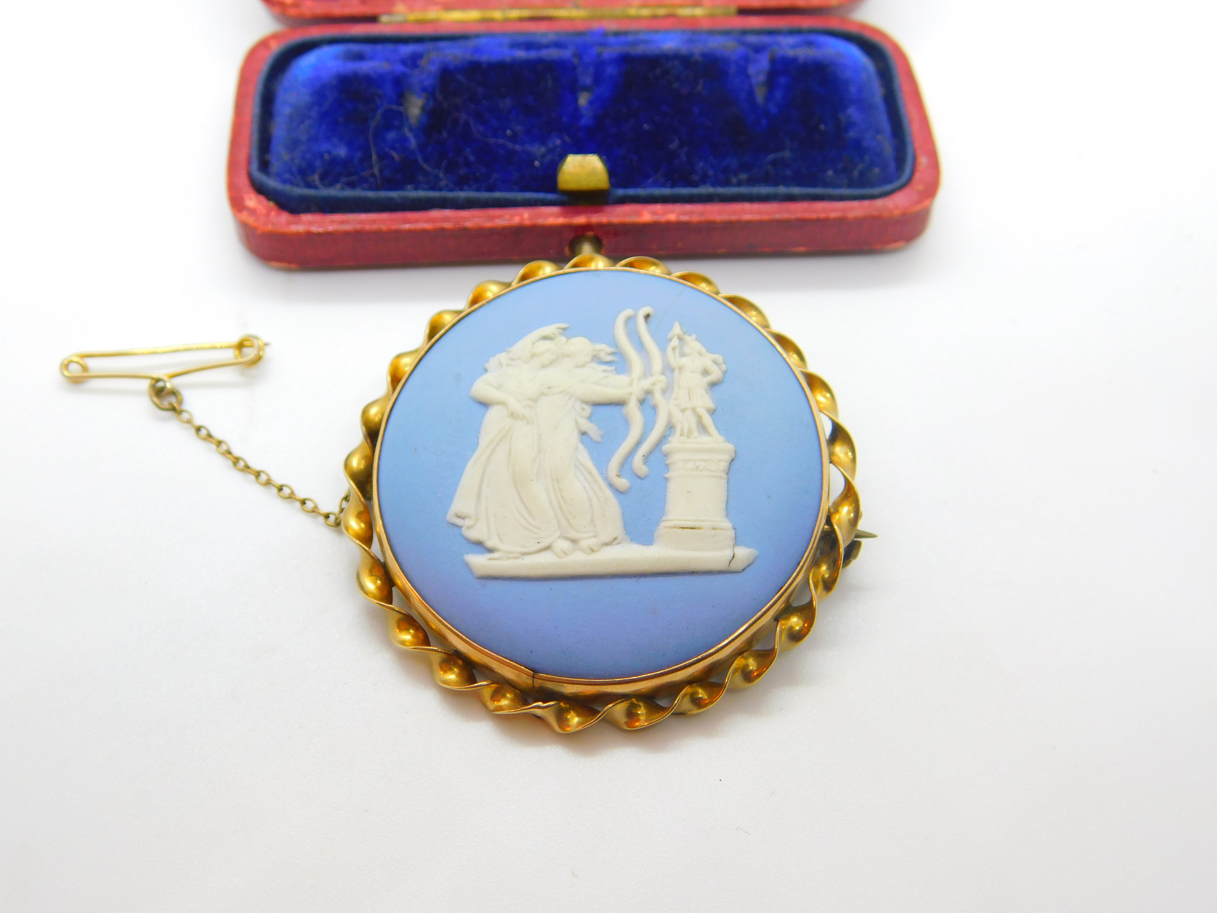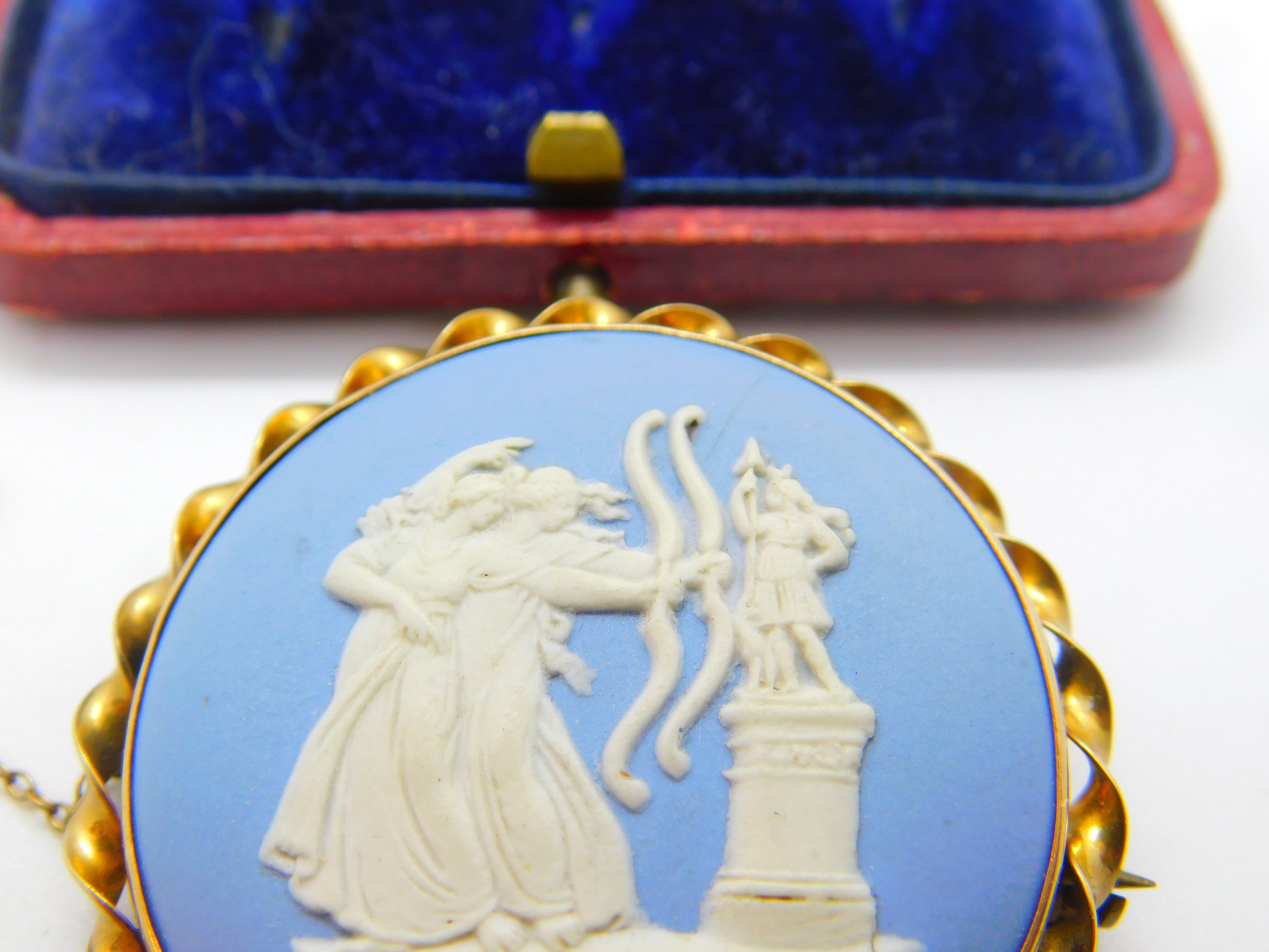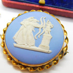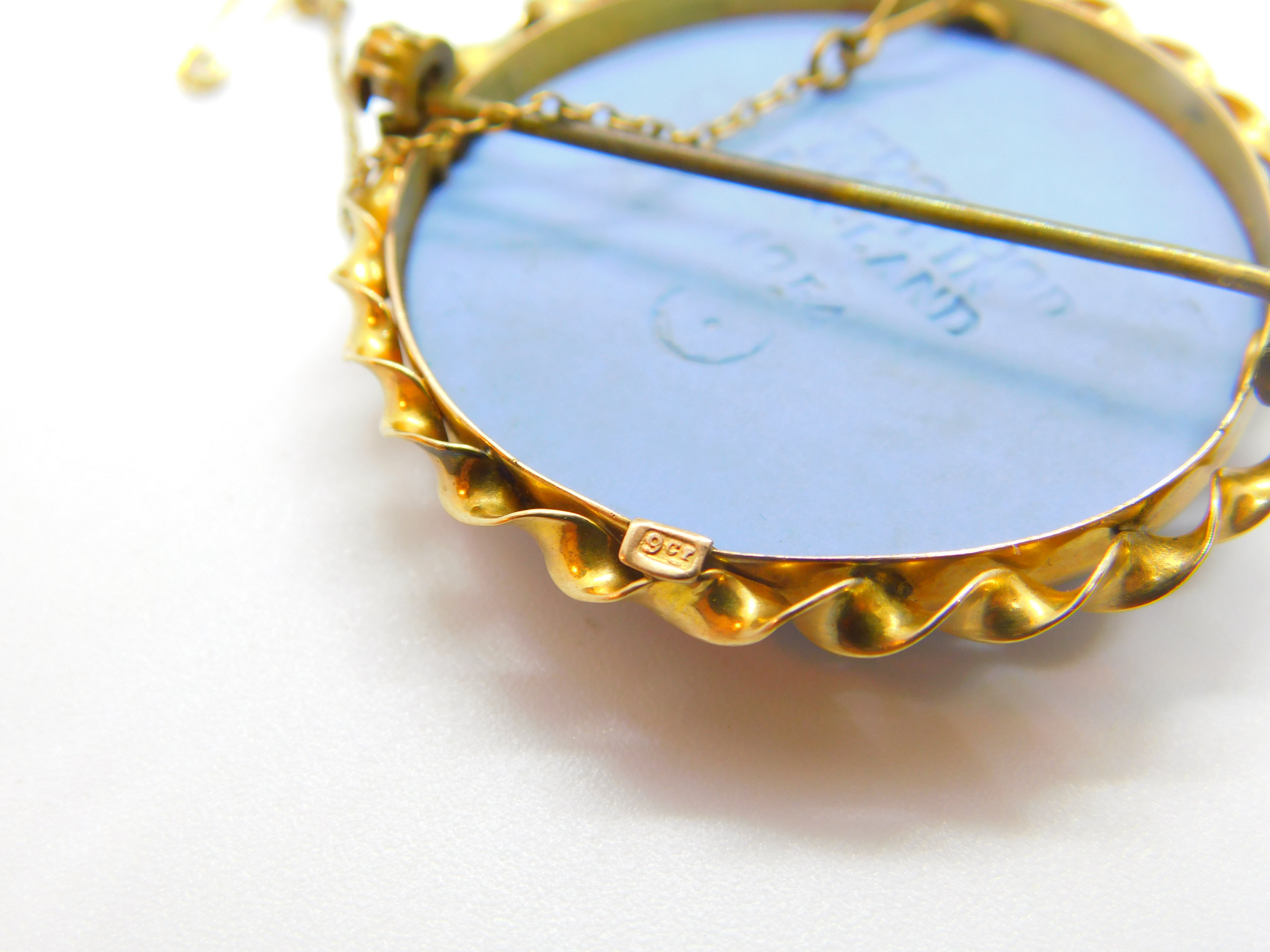 9ct Yellow Gold Ropework Wedgwood Jasperware Archer Goddess Brooch 1954