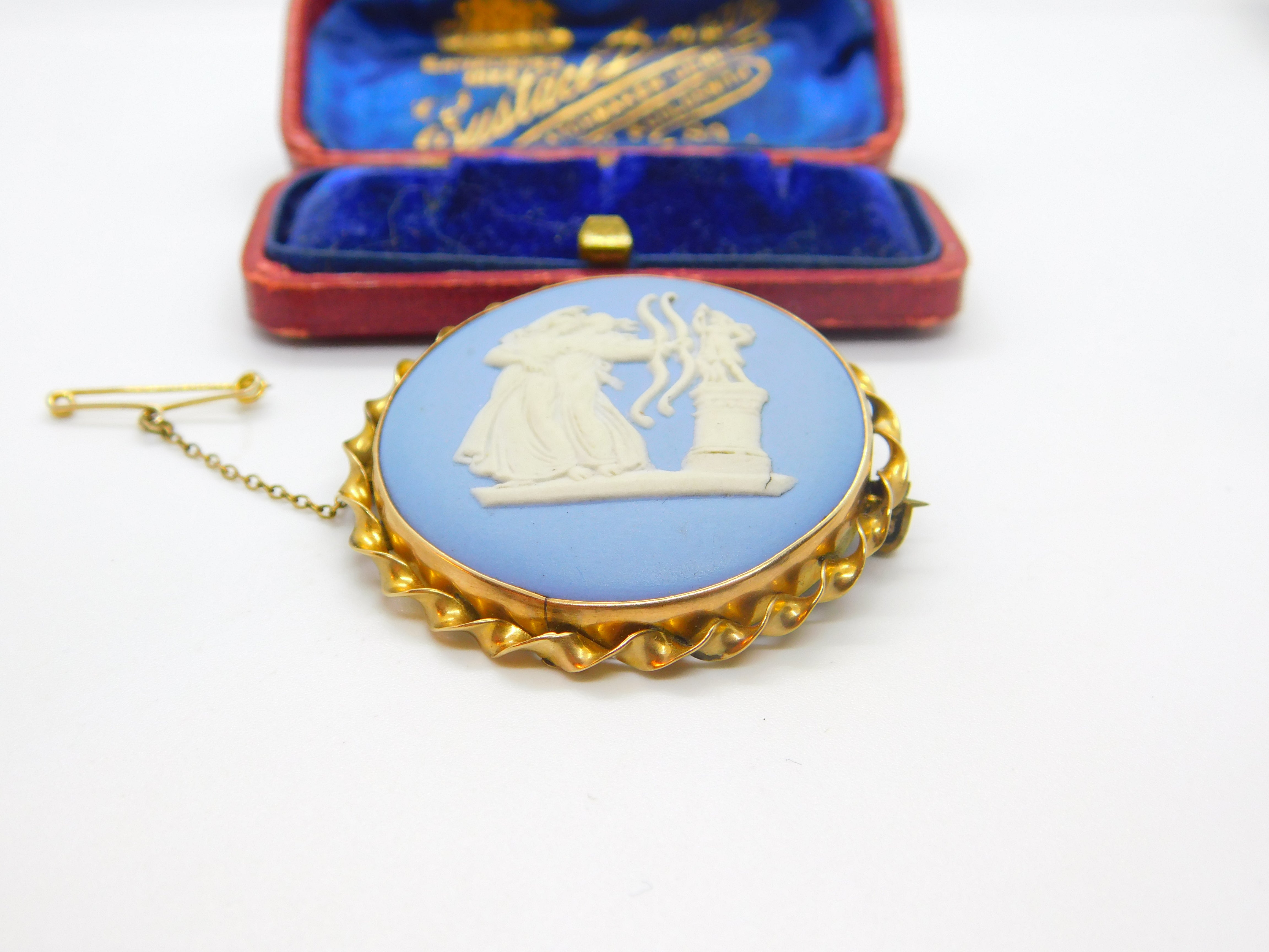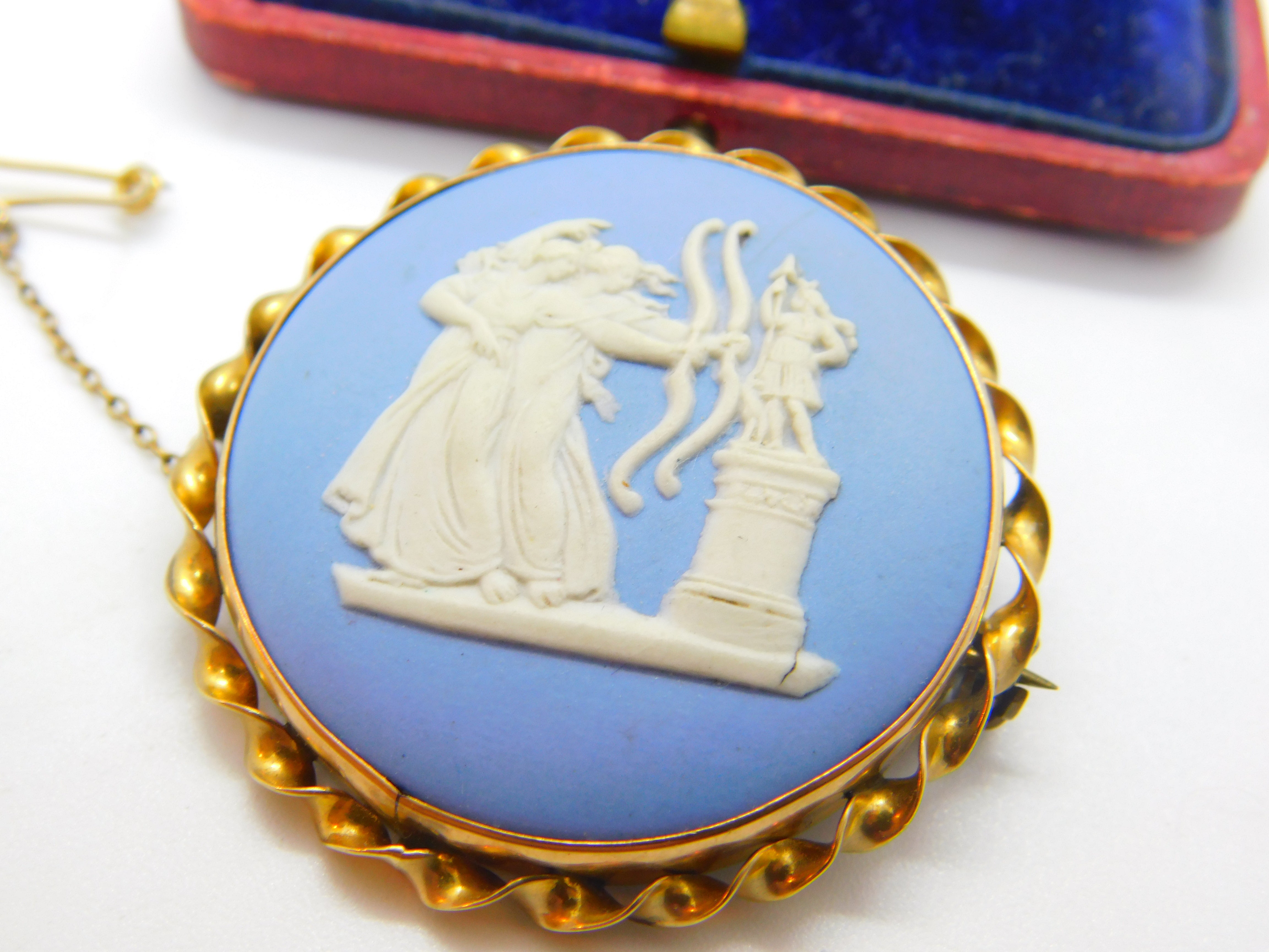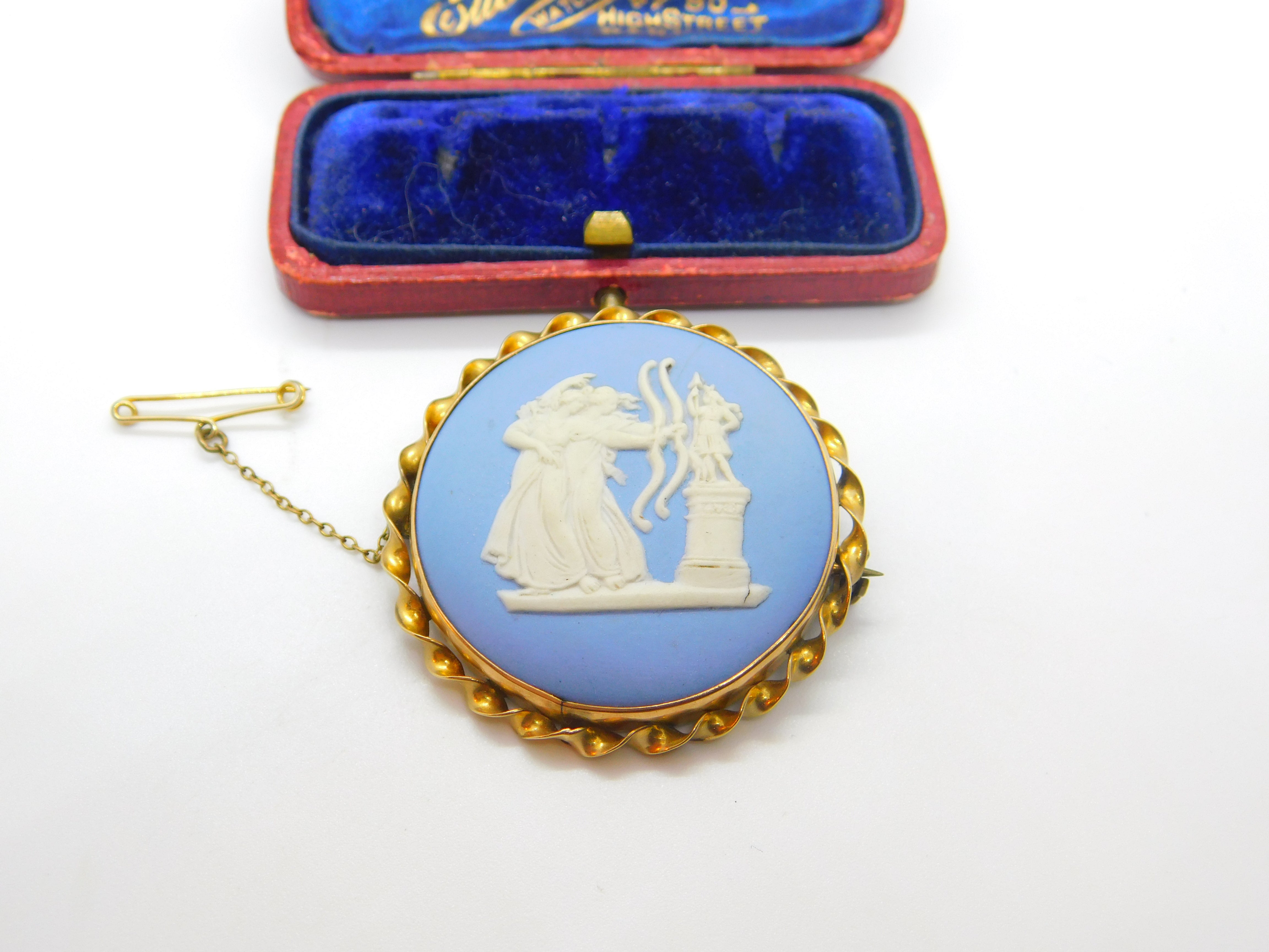 9ct Yellow Gold Ropework Wedgwood Jasperware Archer Goddess Brooch 1954