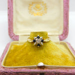 9ct Yellow Gold, Sapphire & Diamond Set Floral Cluster Ring 1979 Birmingham
