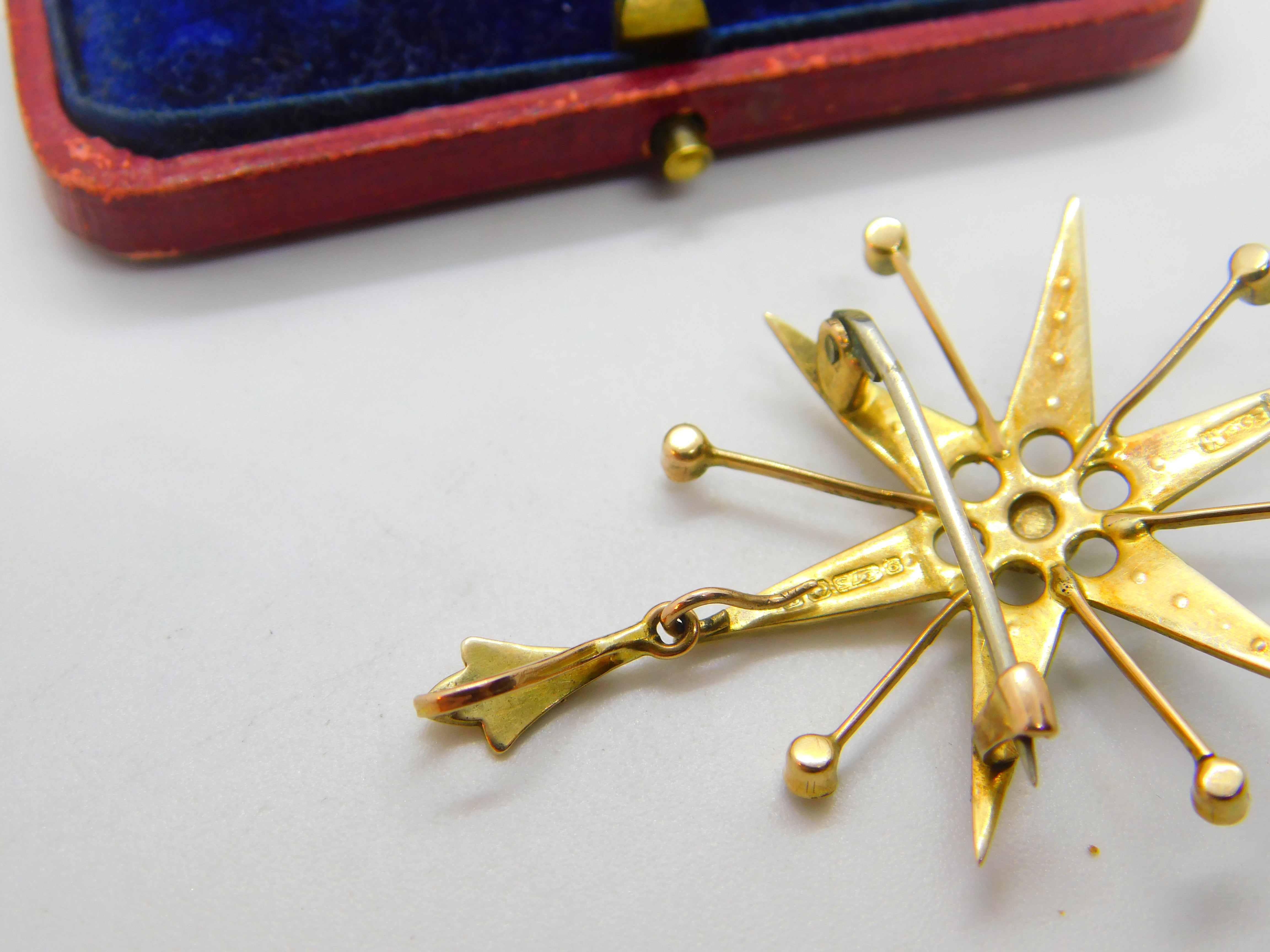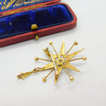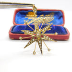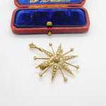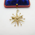 9ct Yellow Gold & Seed Pearl Set Starburst Pendant Antique 1915 Birmingham Deco