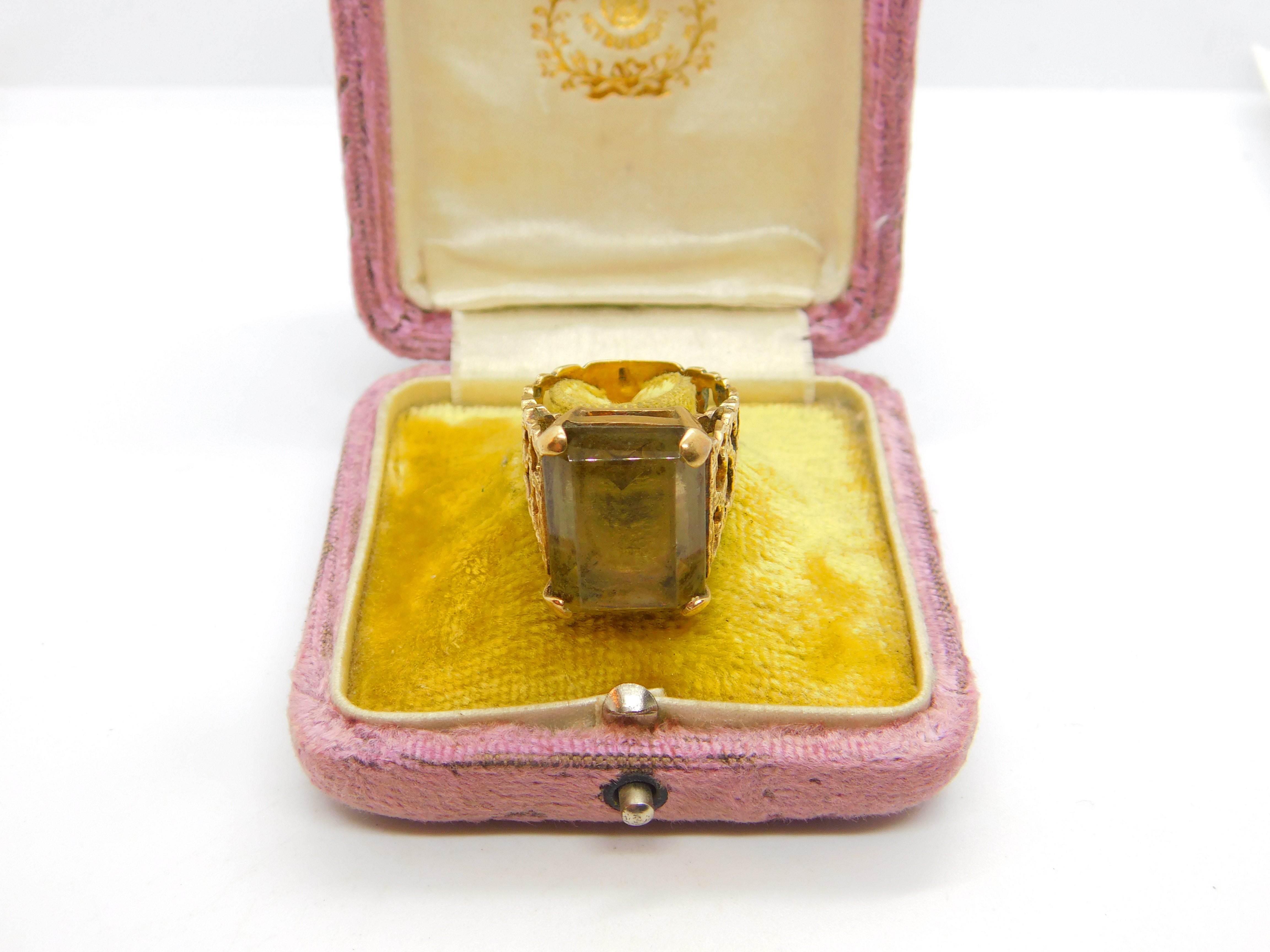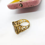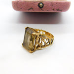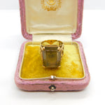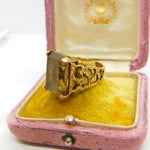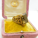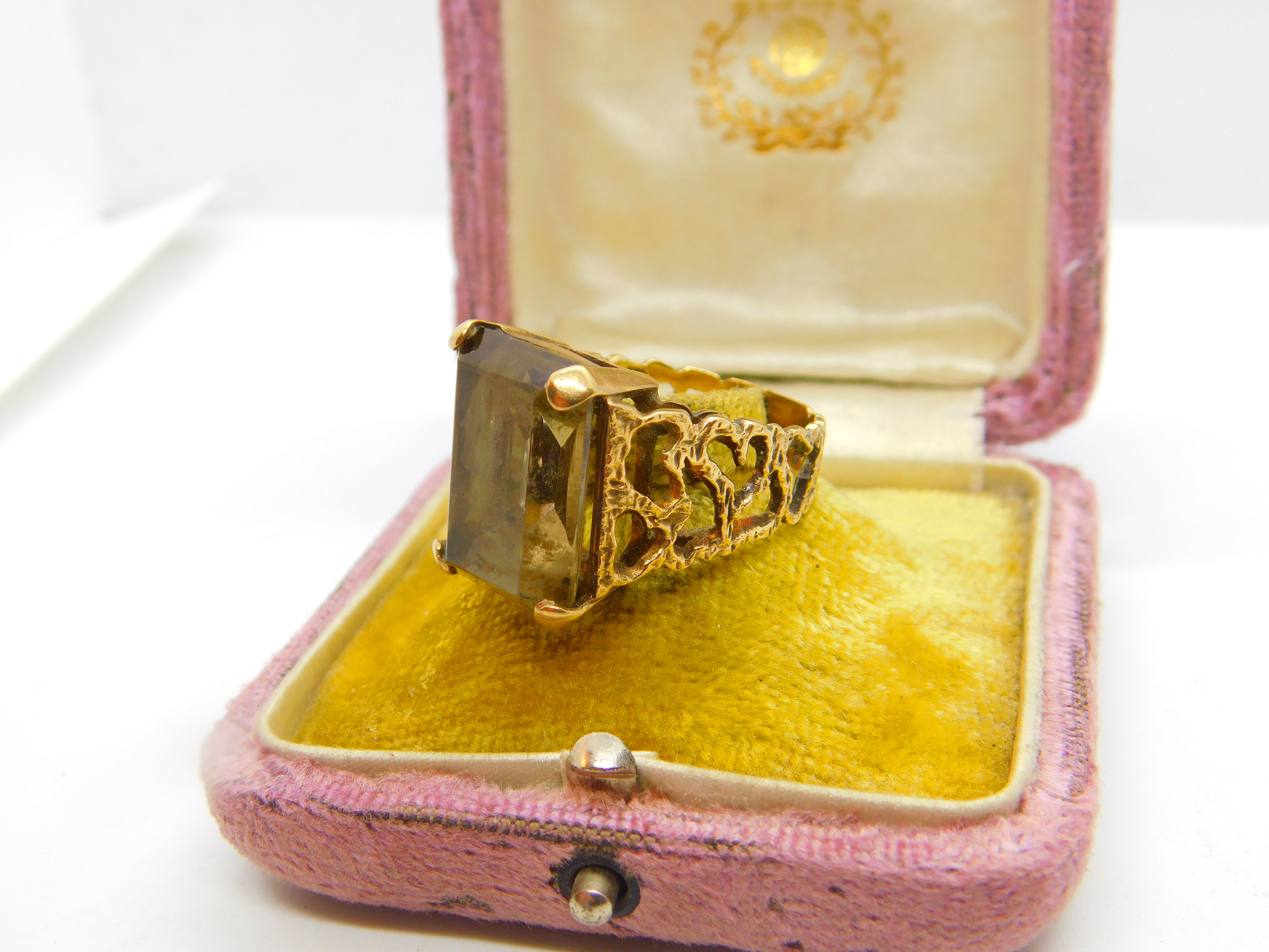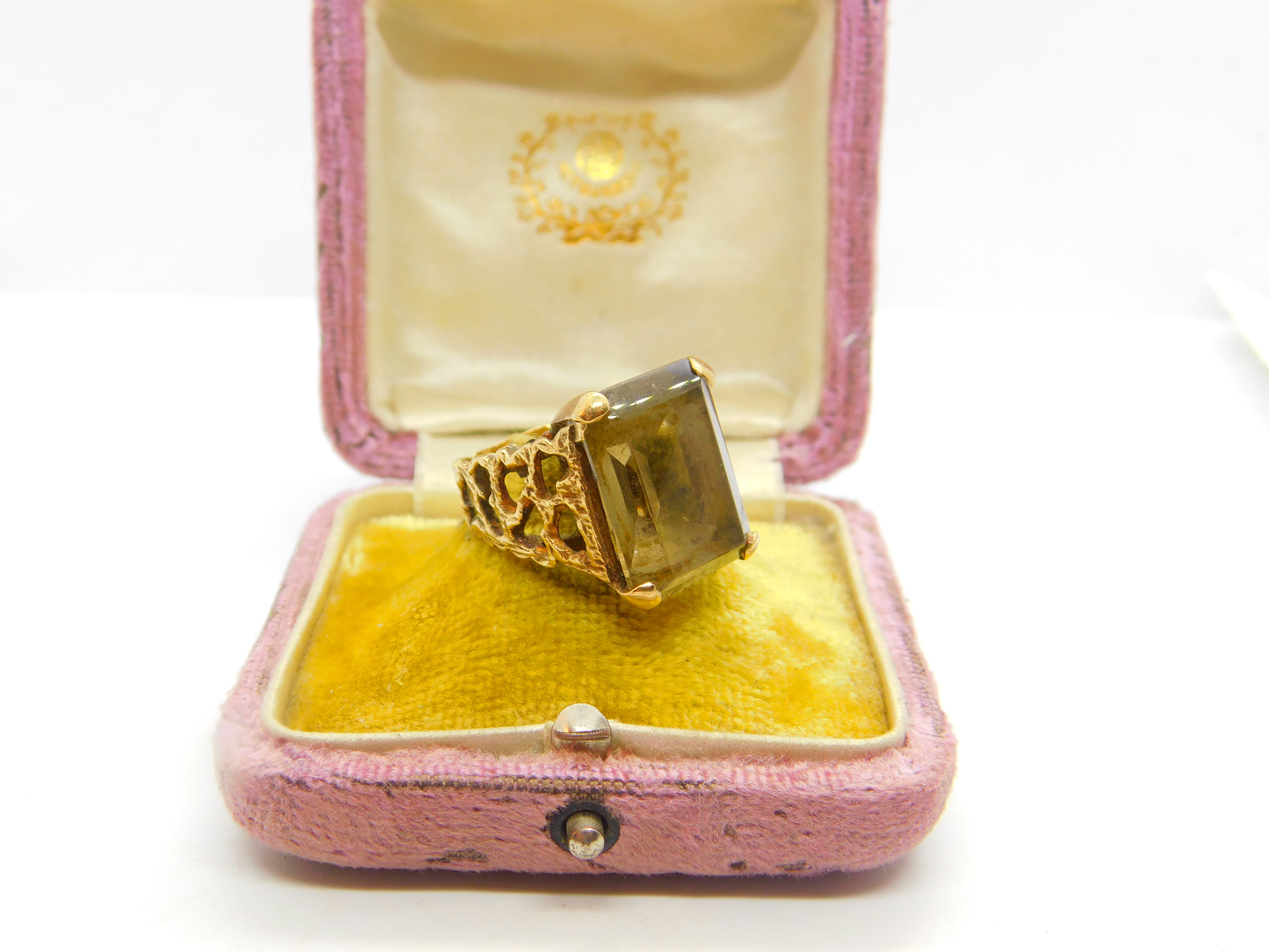 9ct Yellow Gold Textured Bark Pattern Smoky Quartz Cocktail Ring c1970 Vintage
