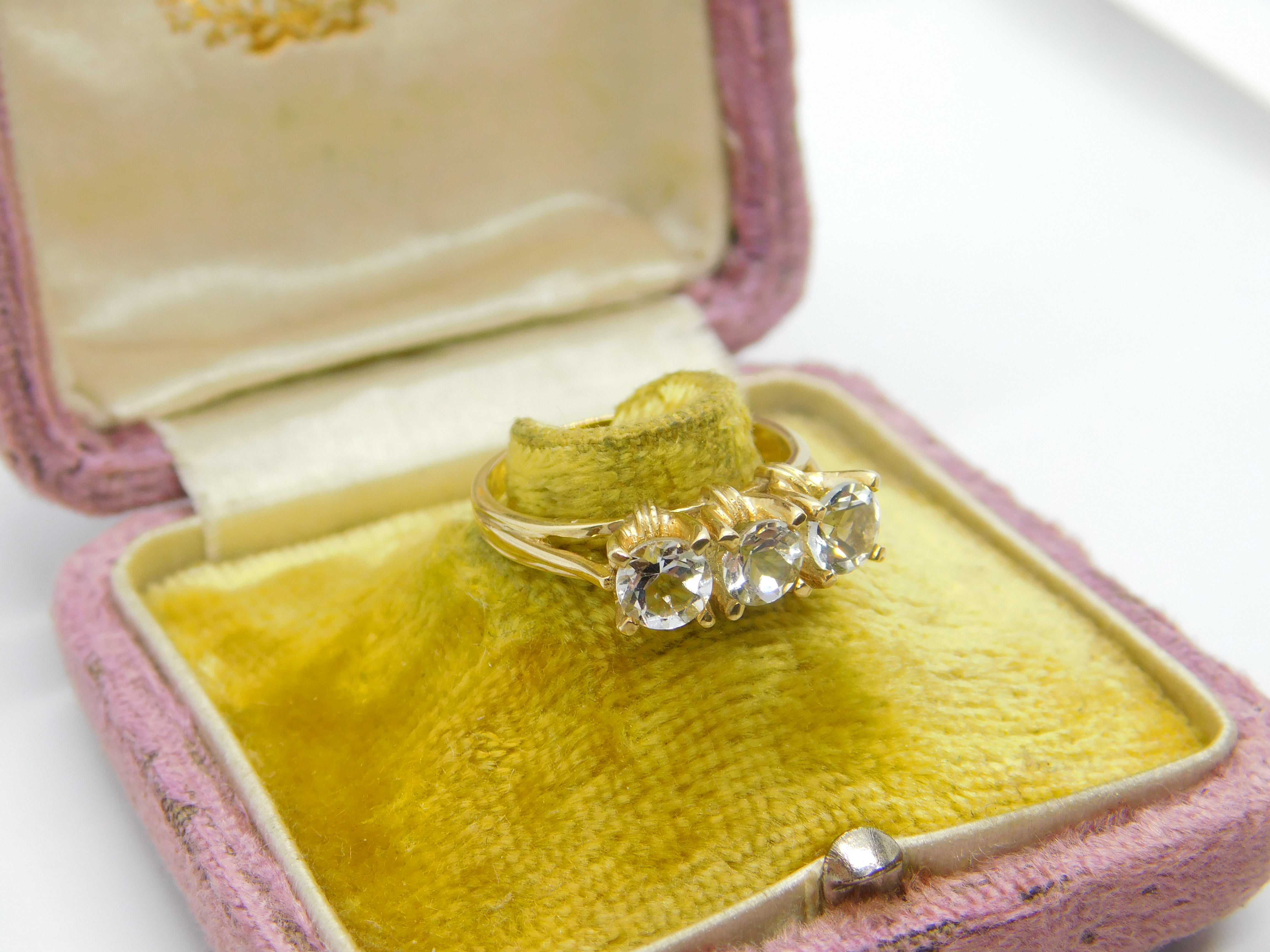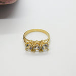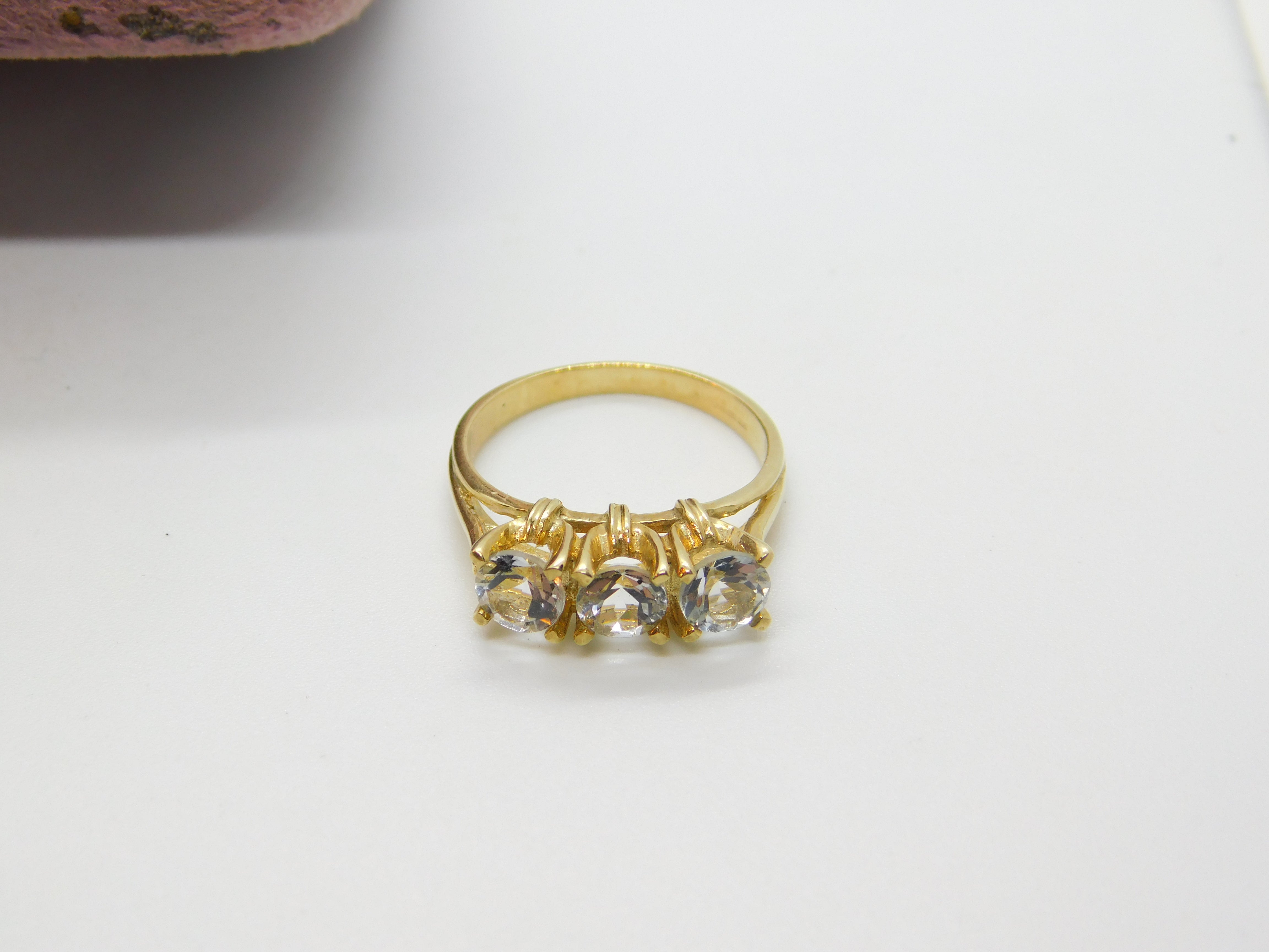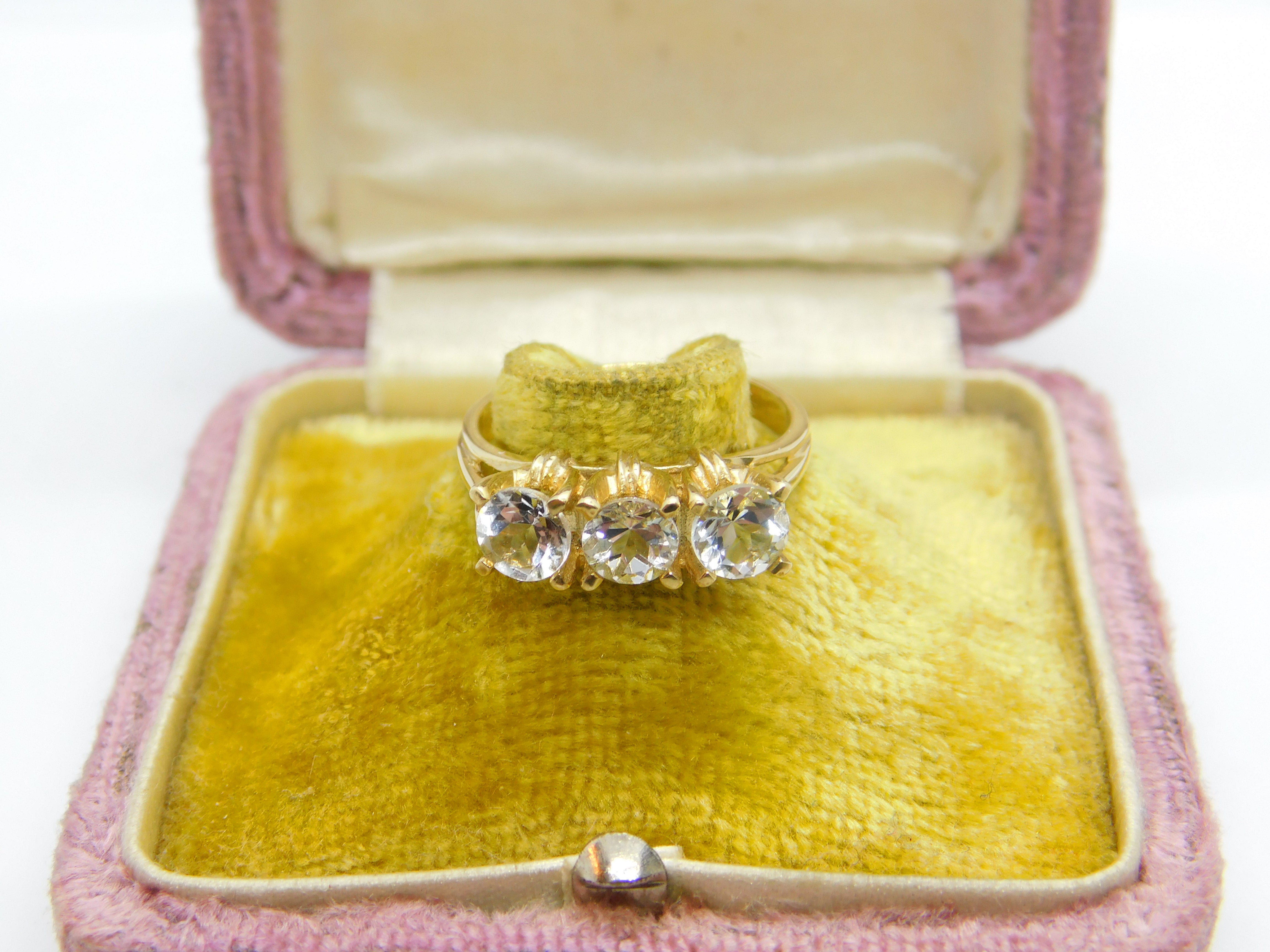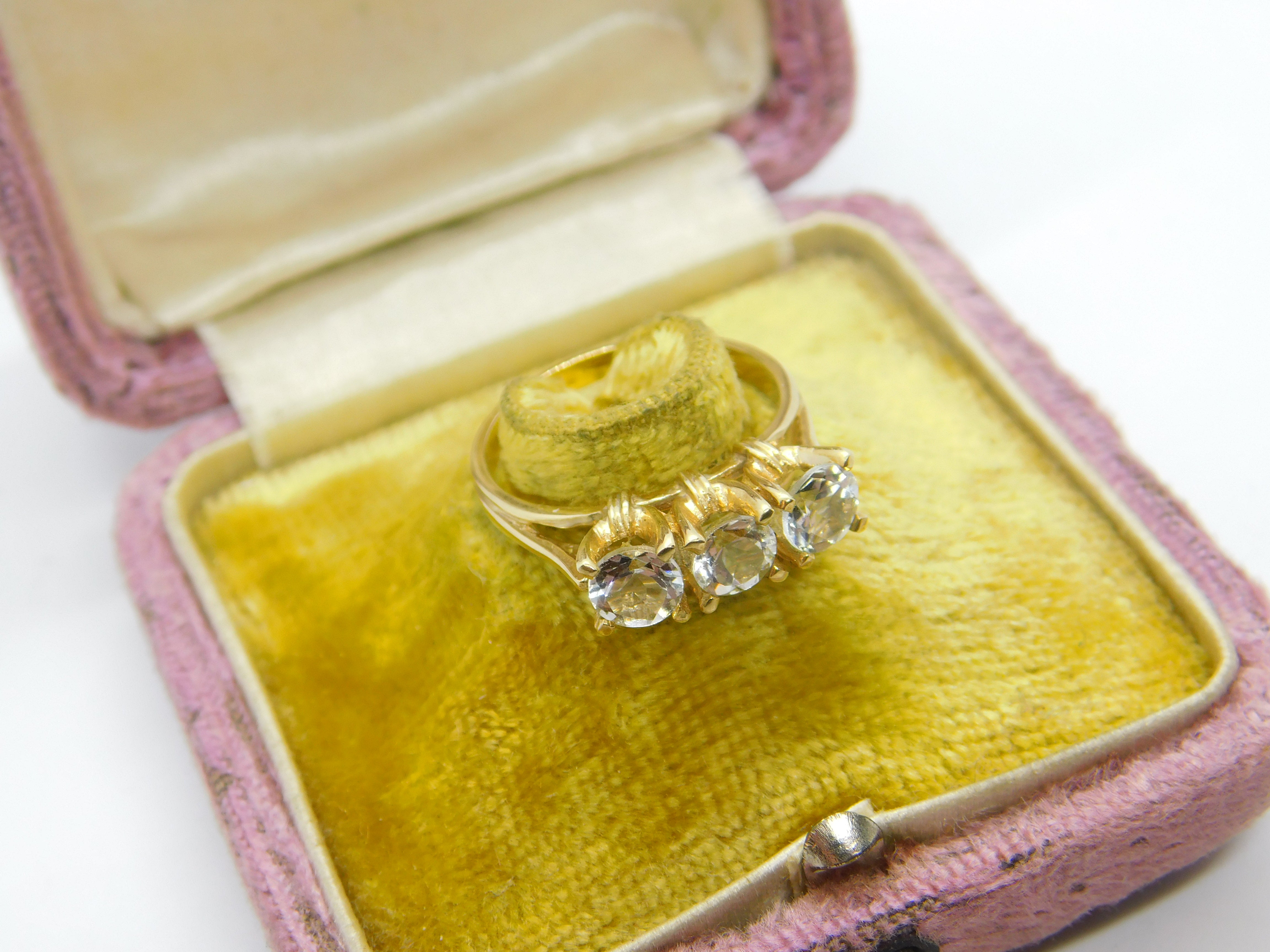 9ct Yellow Gold & Three-Stone Diamond Paste Band Ring Vintage c1990 Birmingham