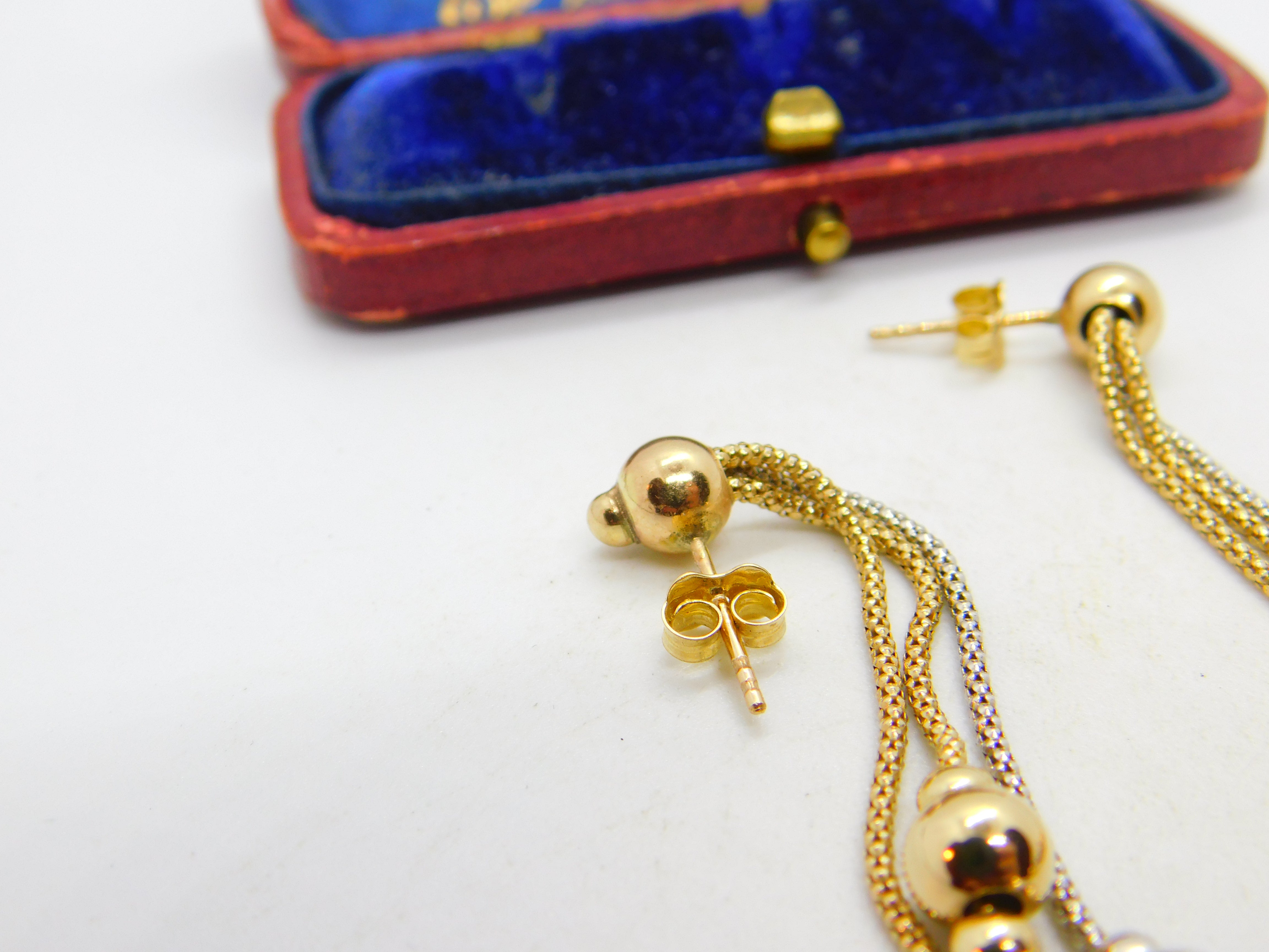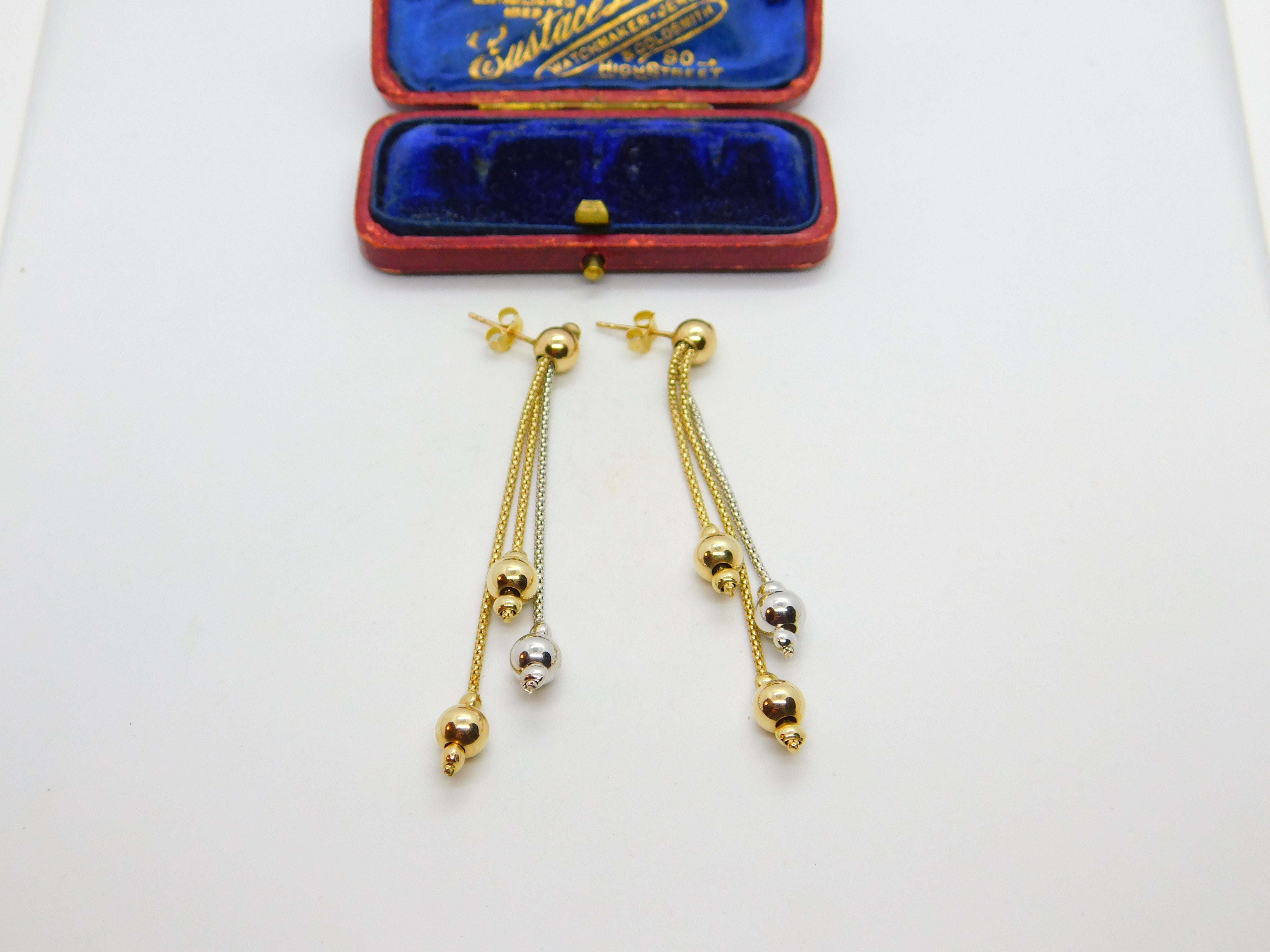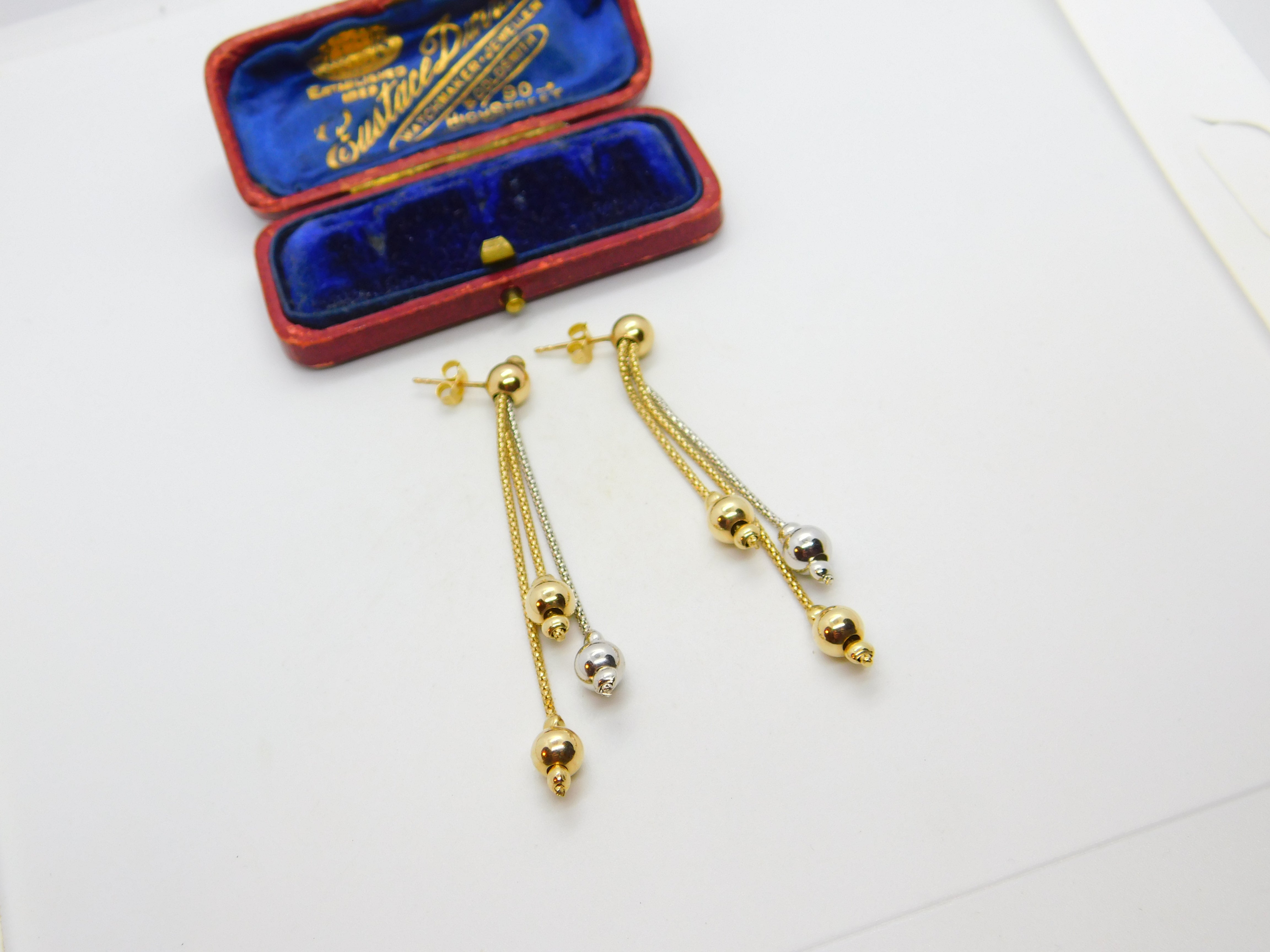9ct Yellow & White Gold Modernist Ball Drop Stud Earrings Vintage c1980