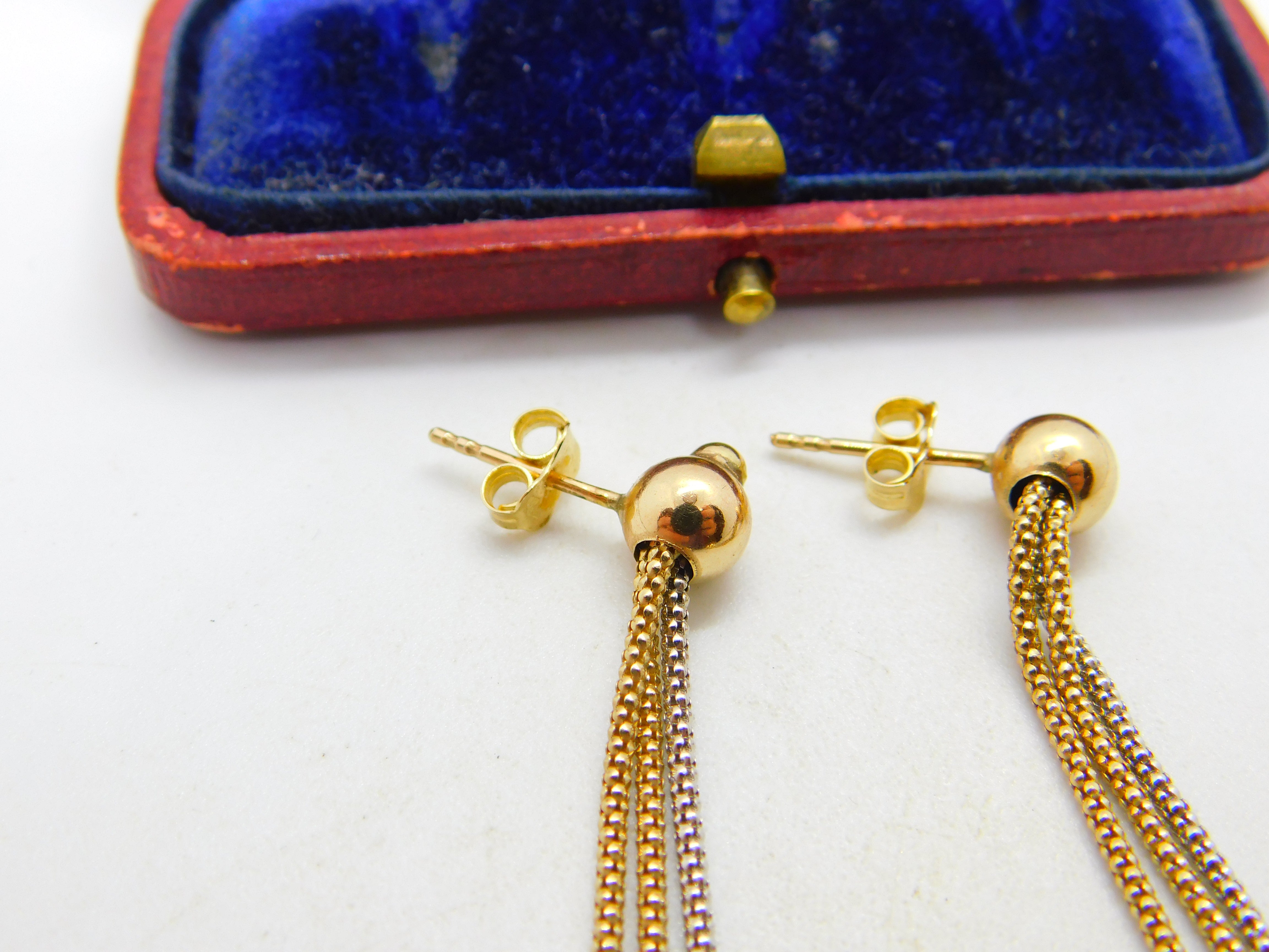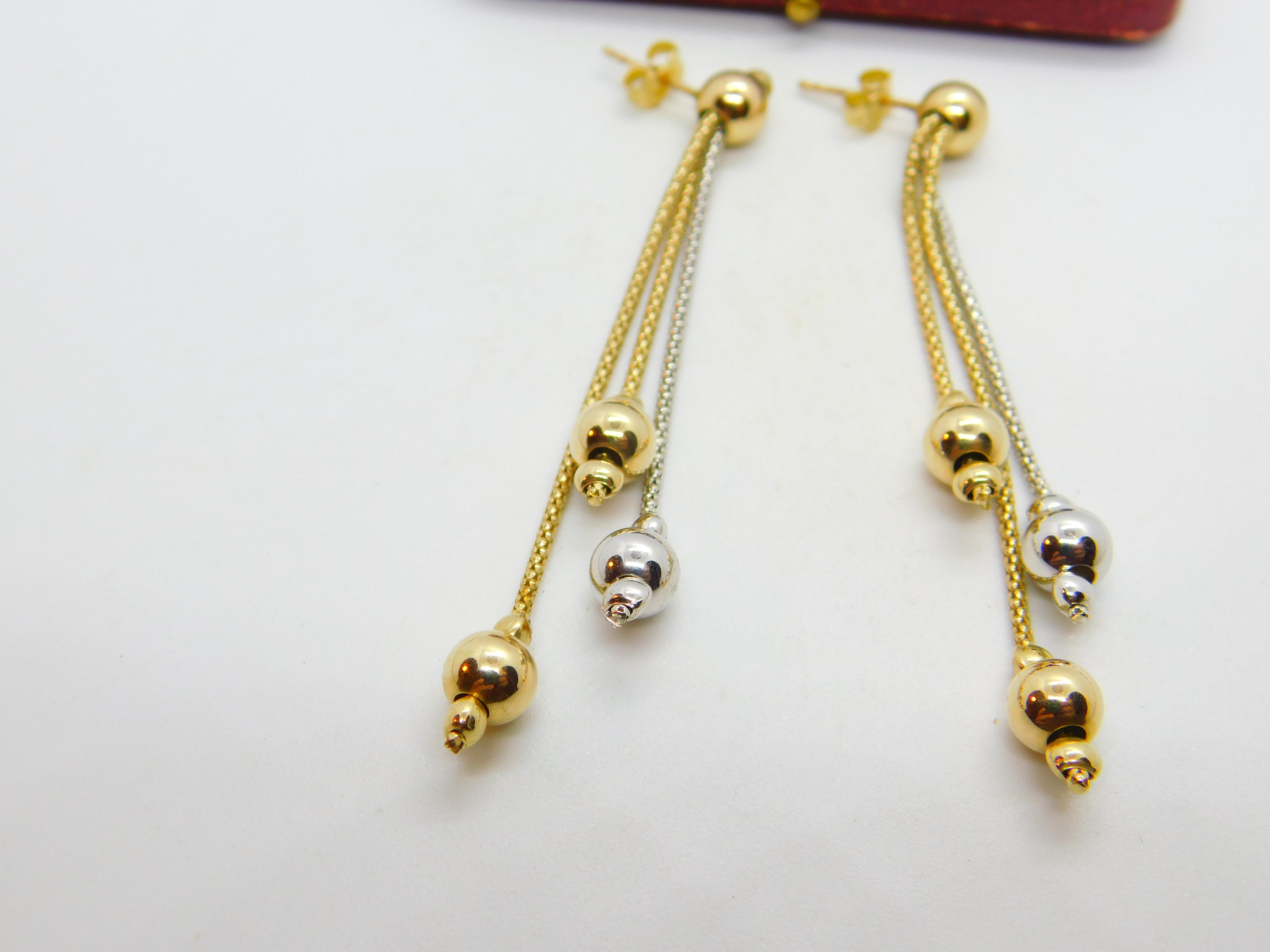Details: A fantastic and wonderfully designed vintage 9ct yellow and white gold dangling modernist drop earrings hallmarked to the edge c1980. This is a wonderful item that would make a perfect gift or addition to any collection. The BOX pictured is for PRESENTATION ONLY and is NOT included in the listings but used to frame the pictures unless specifically stated otherwise.