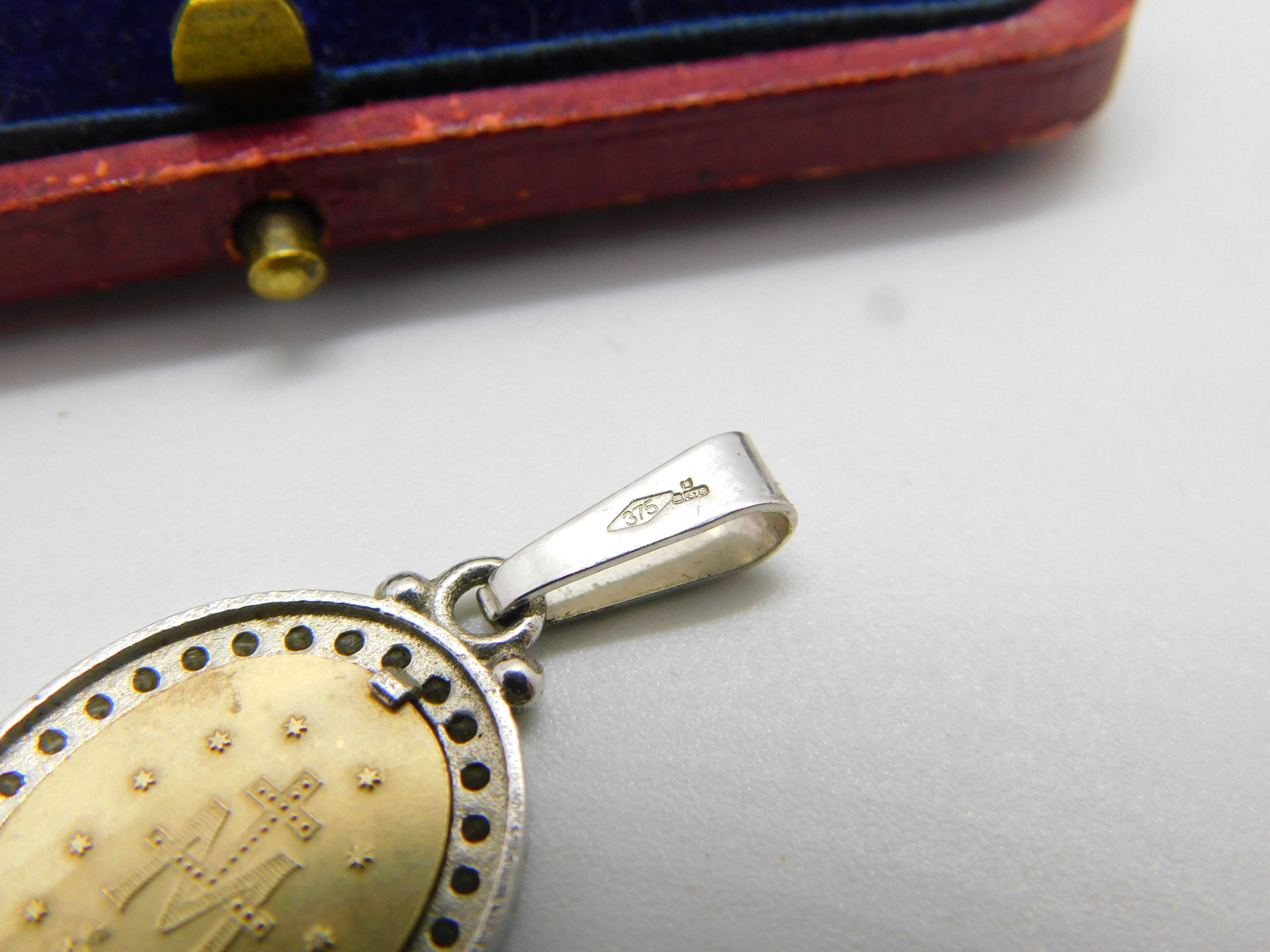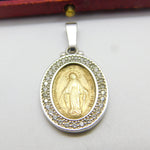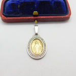 9ct Yellow & White Gold Religious Virgin Mary Pendant Vintage c1970 Catholic