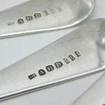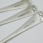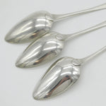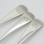Details: A fantastic and wonderfully designed antique georgian Scottish provincial Aberdeen sterling silver set of three serving spoons with engraved initials to the terminals hallmarked to lovely provincial marks to the reverse by Aberdeen maker William Jameison c1800. This is a wonderful item that would make a perfect gift or addition to any collection.