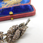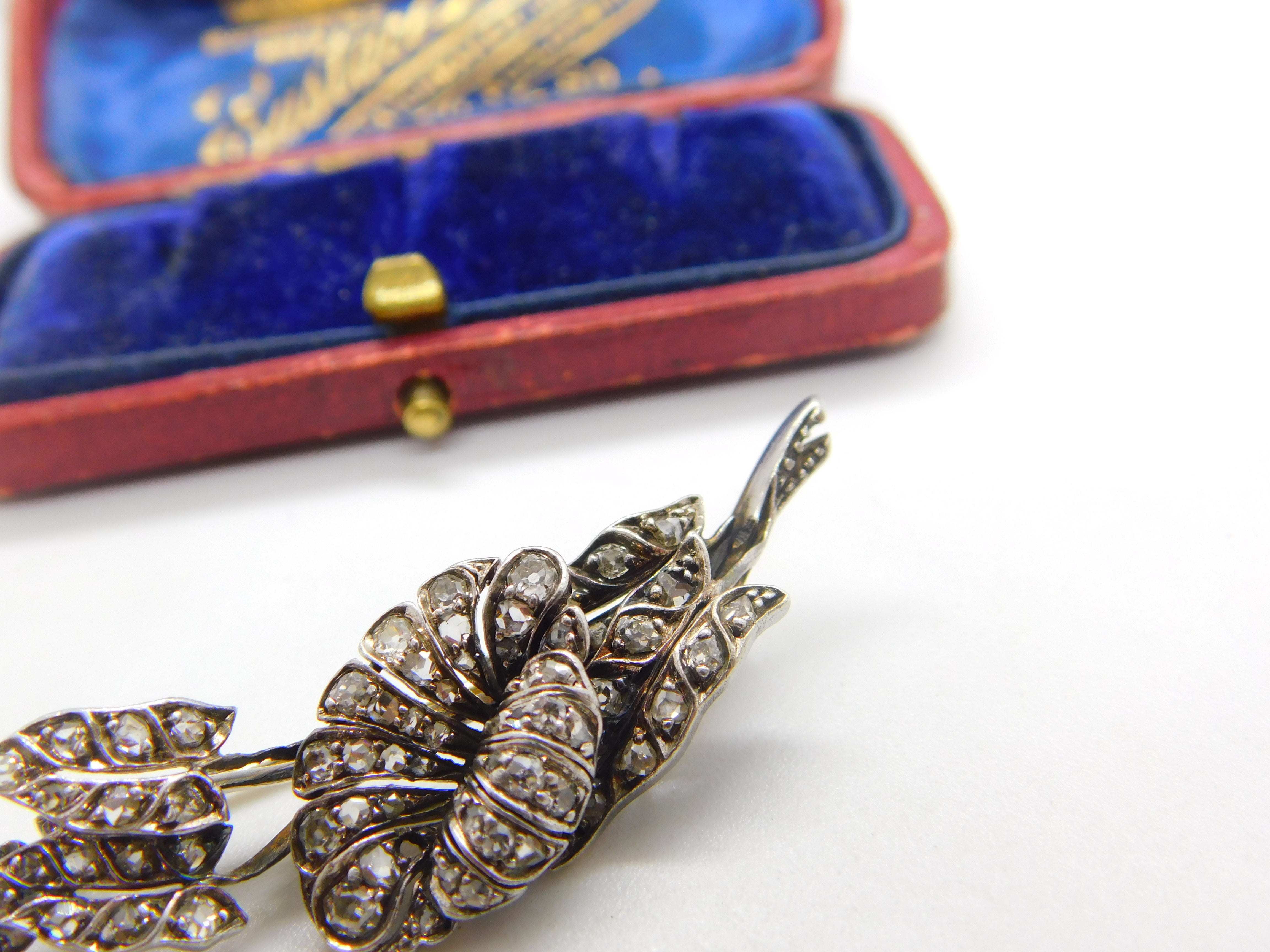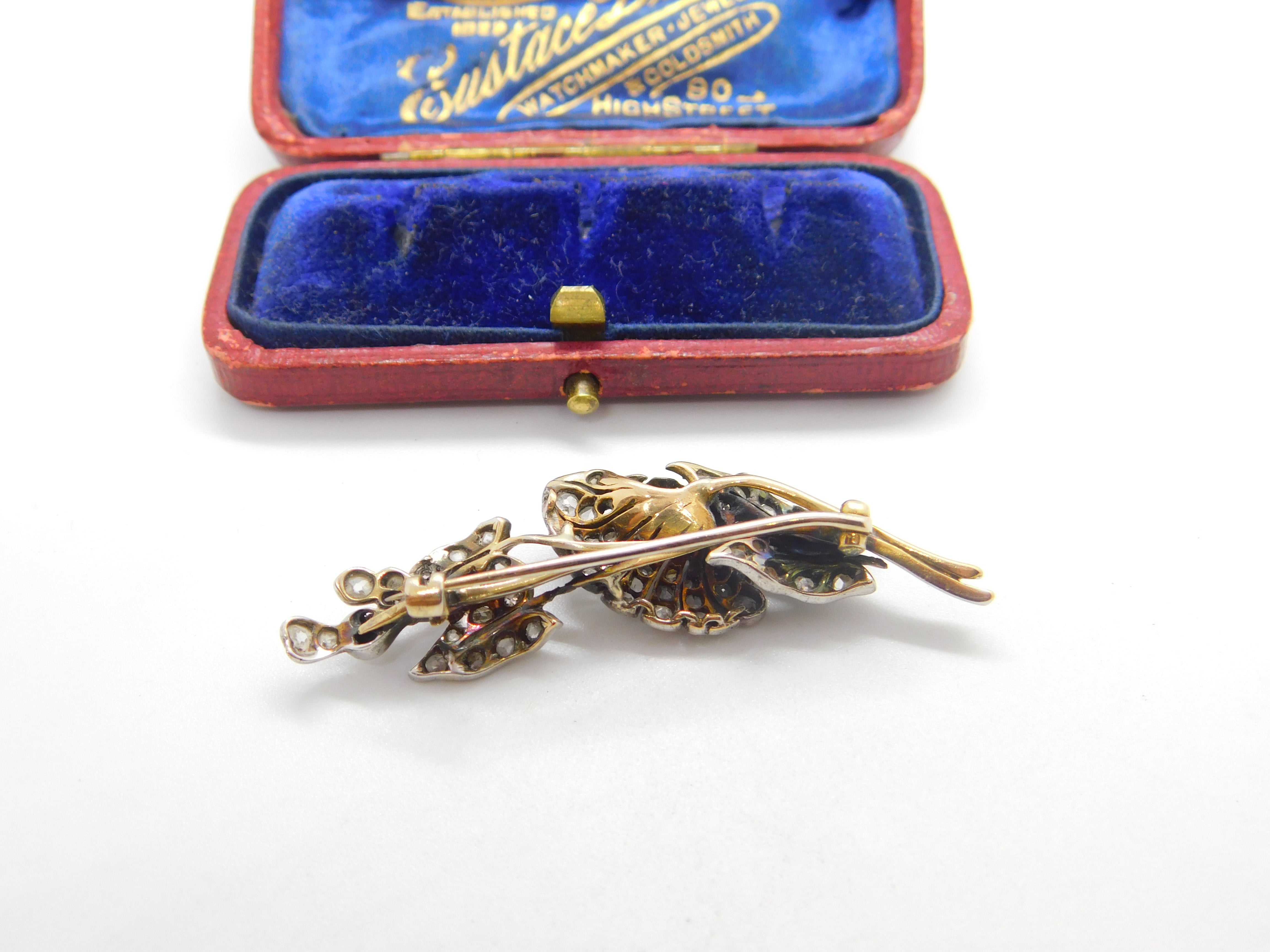 Art Nouveau 14ct Yellow Gold & Pave Set 1.1ct Diamond Floral Brooch c1880 Antique