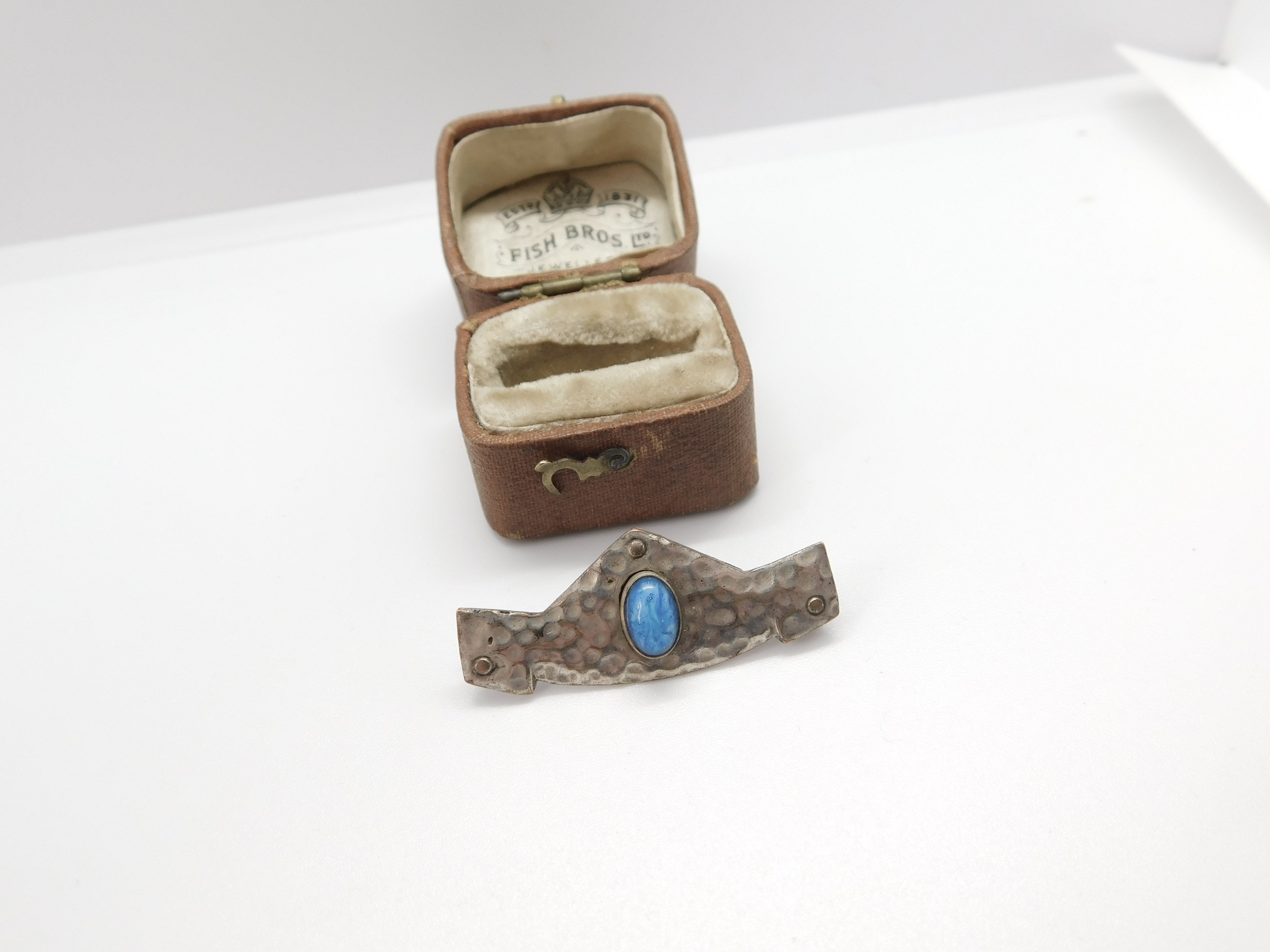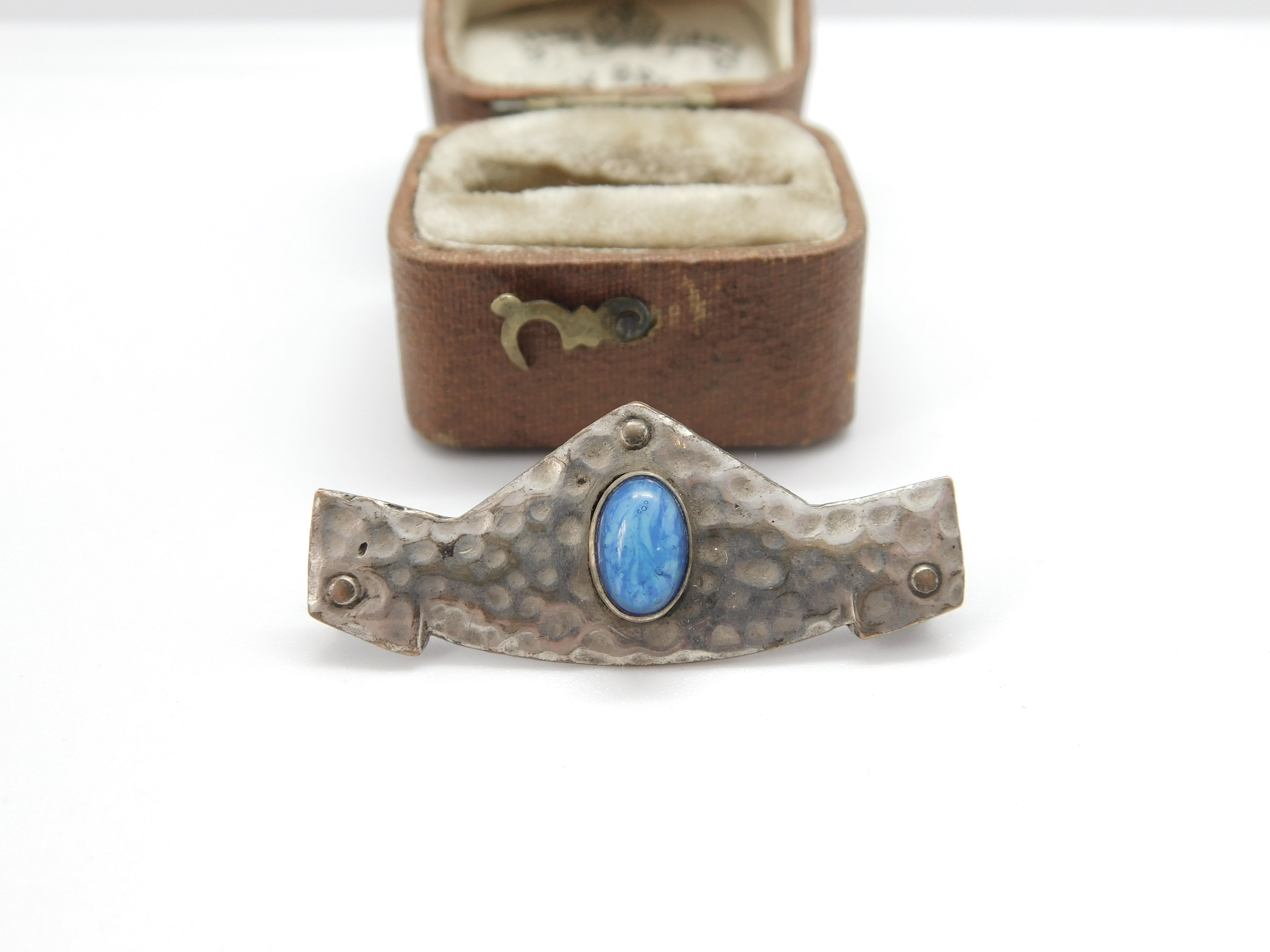 Arts & Crafts Planished Pewter Ruskin Cabochon Brooch c1910 Antique