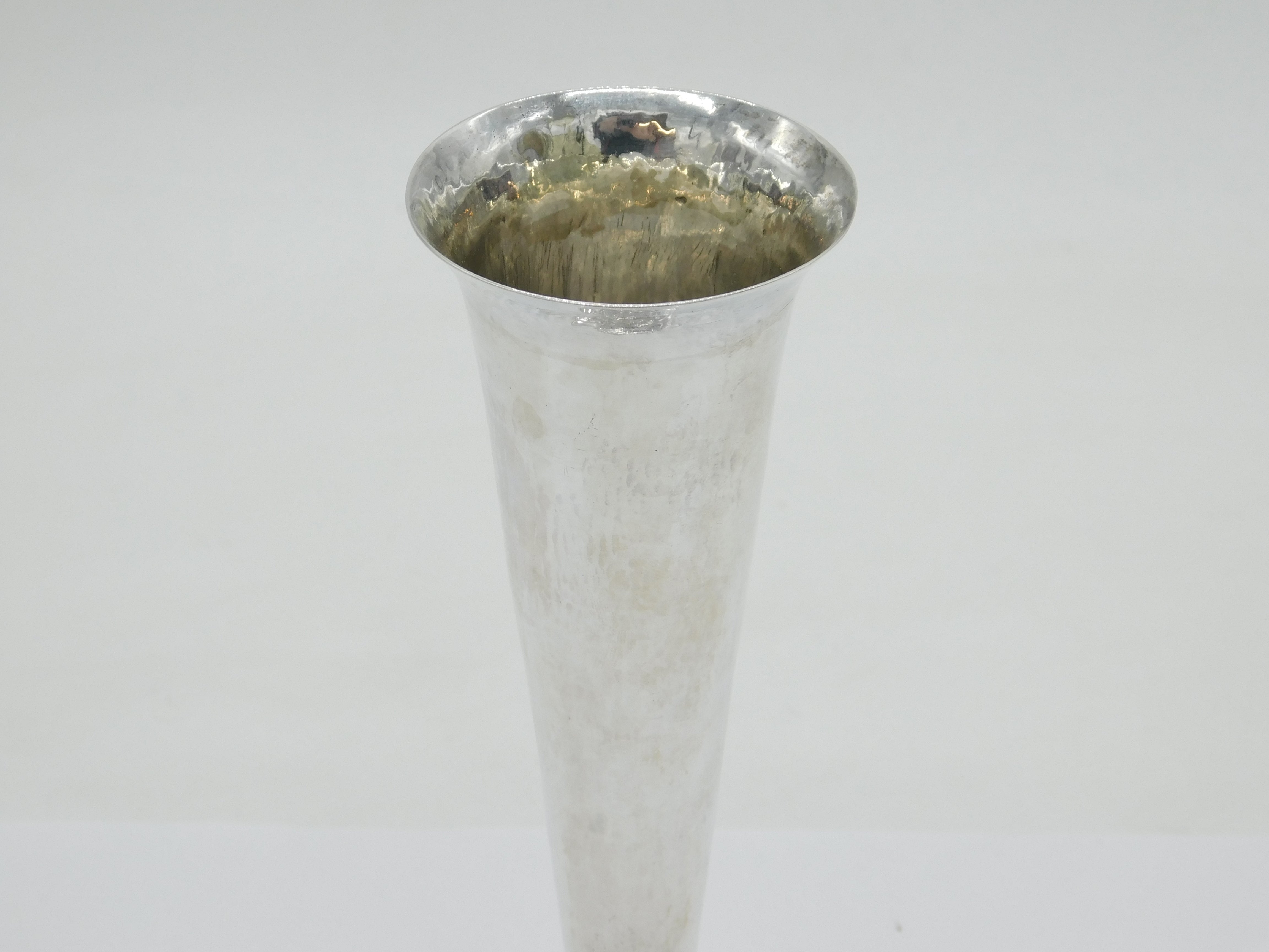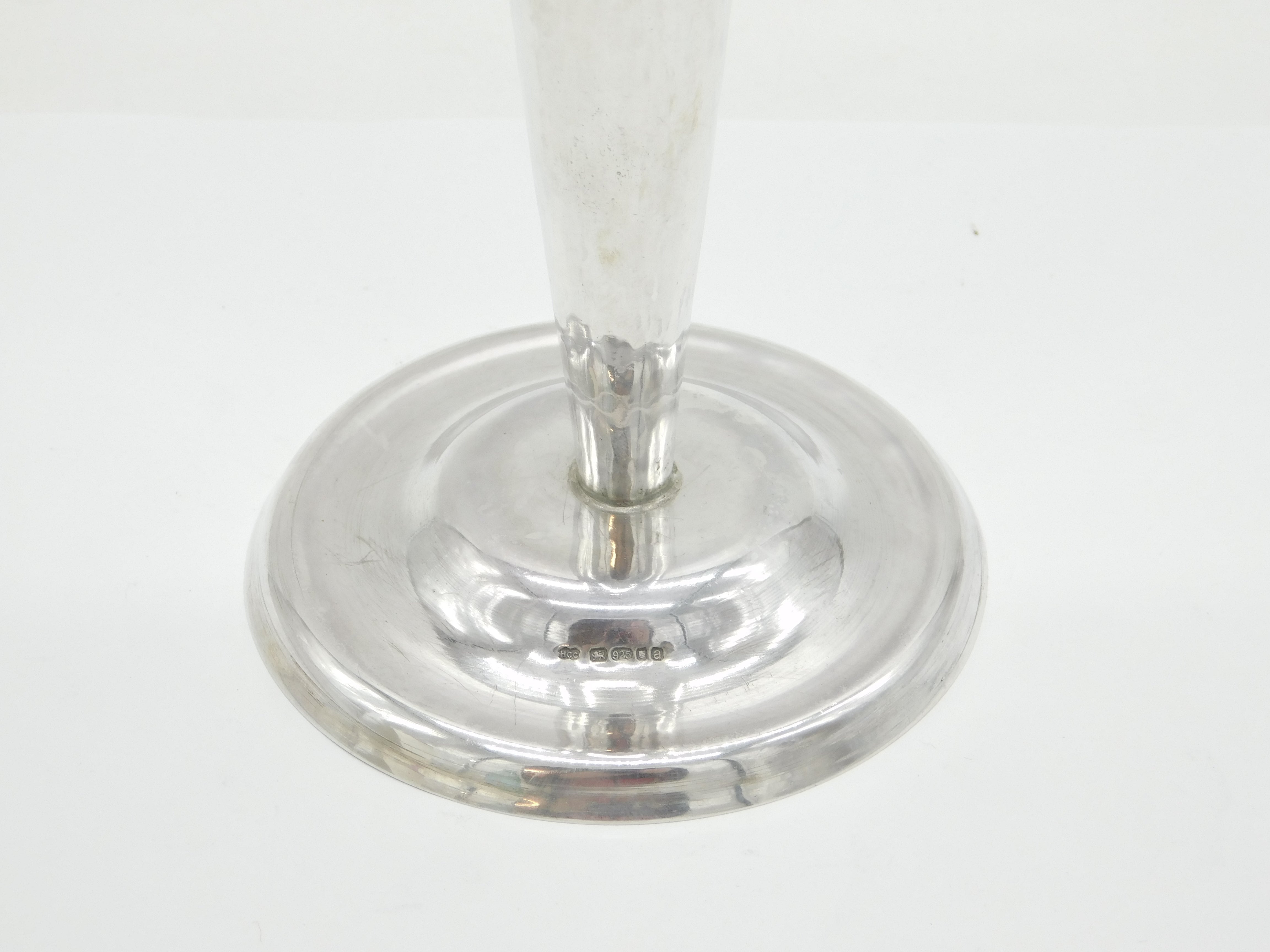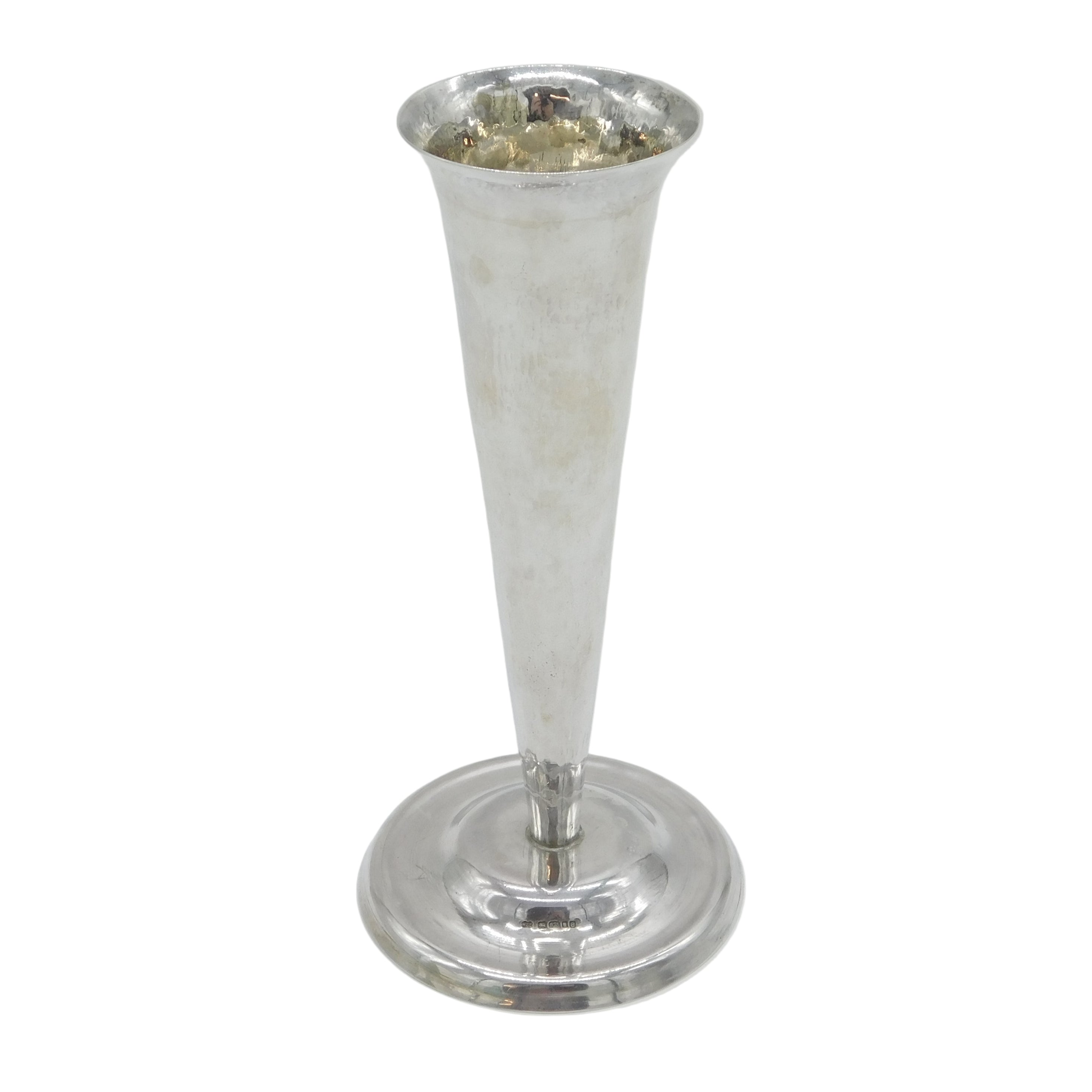 Arts & Crafts Style Planished Sterling Silver Trumpet Vase Vintage 2000 London