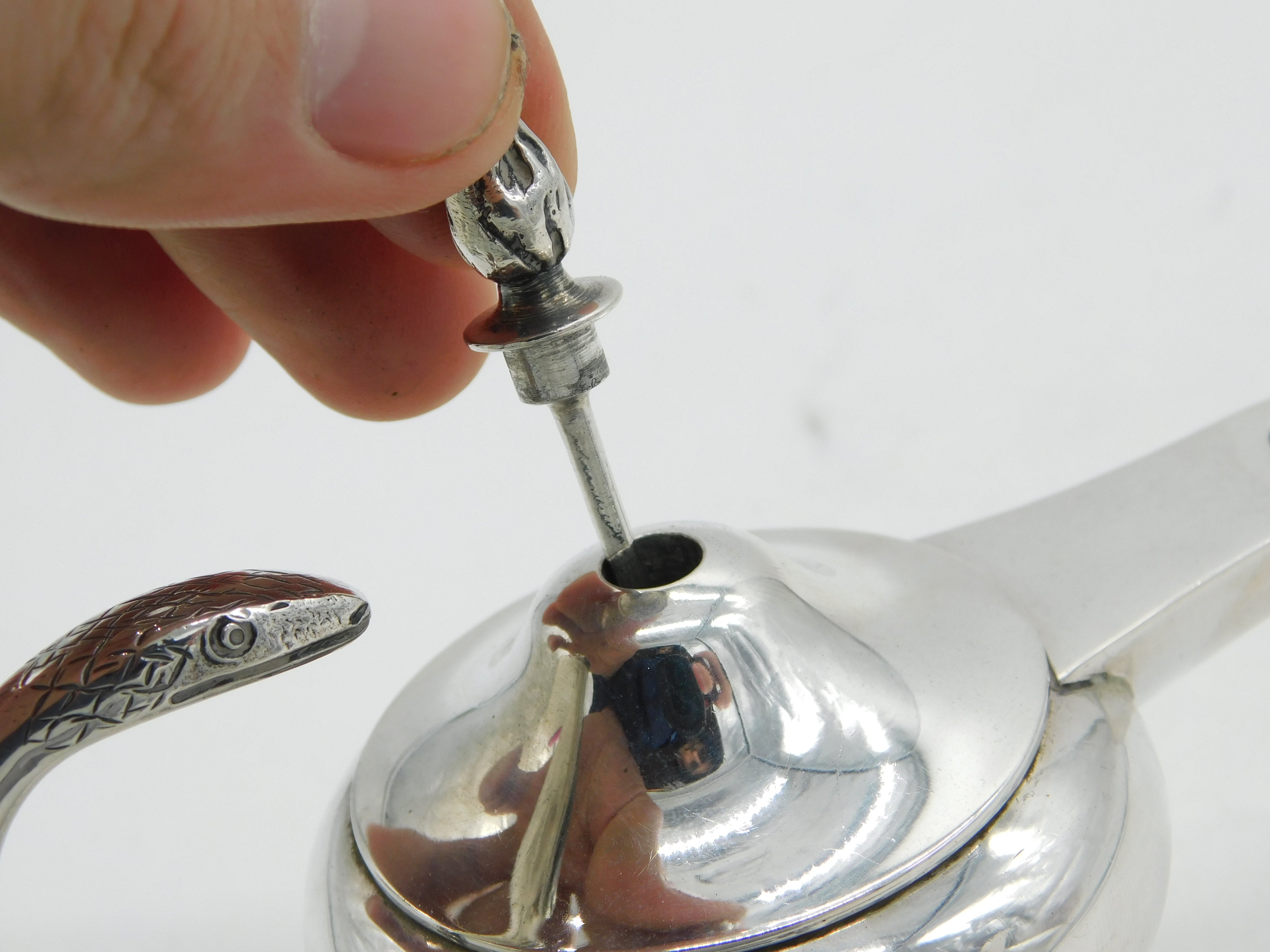Asprey & Co. Sterling Silver Snake Handle Table Cigar Lighter Antique 1919 London