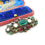Austro Hungarian Sterling Silver Emerald Paste Brooch Antique Victorian c1860