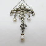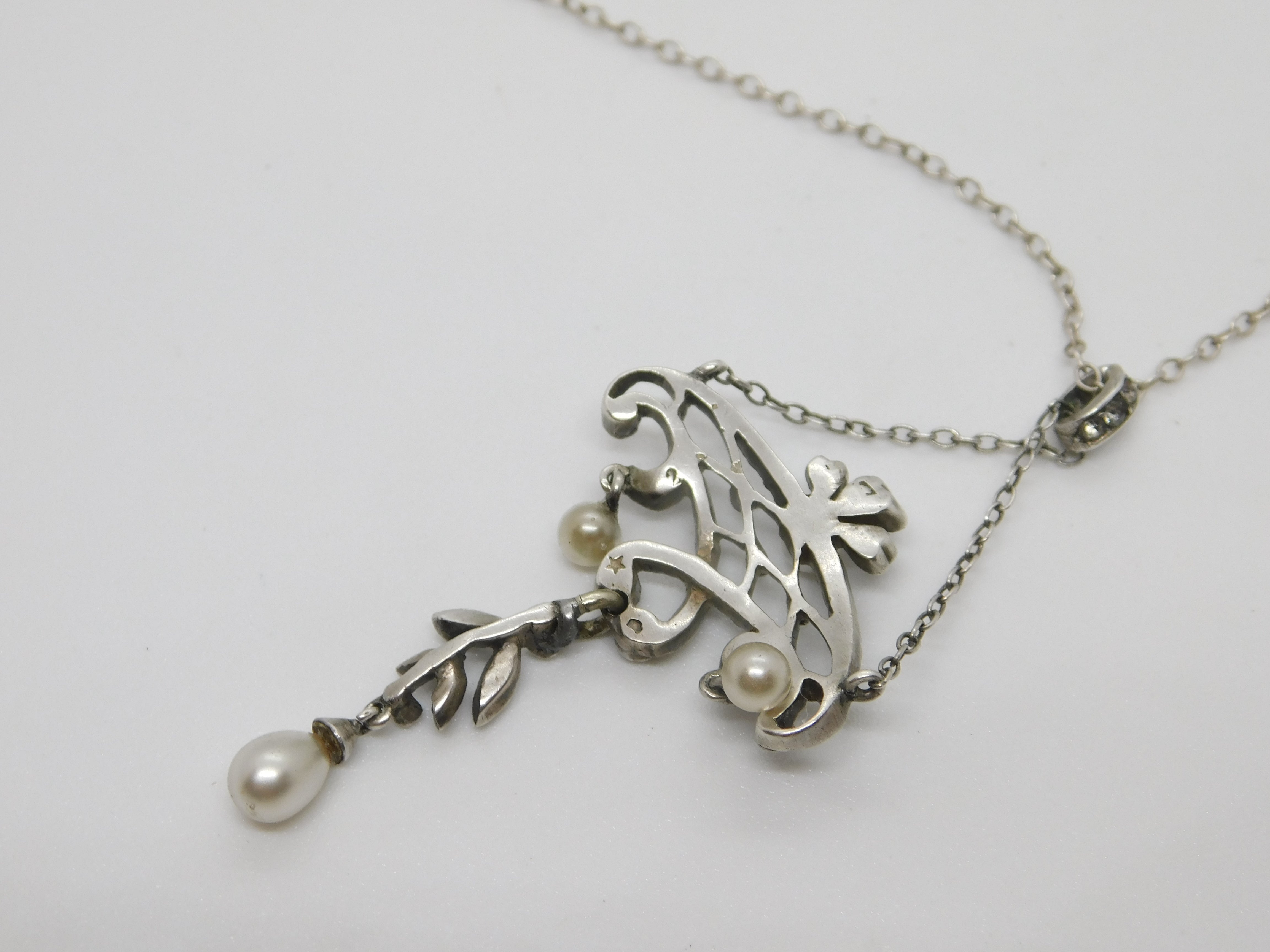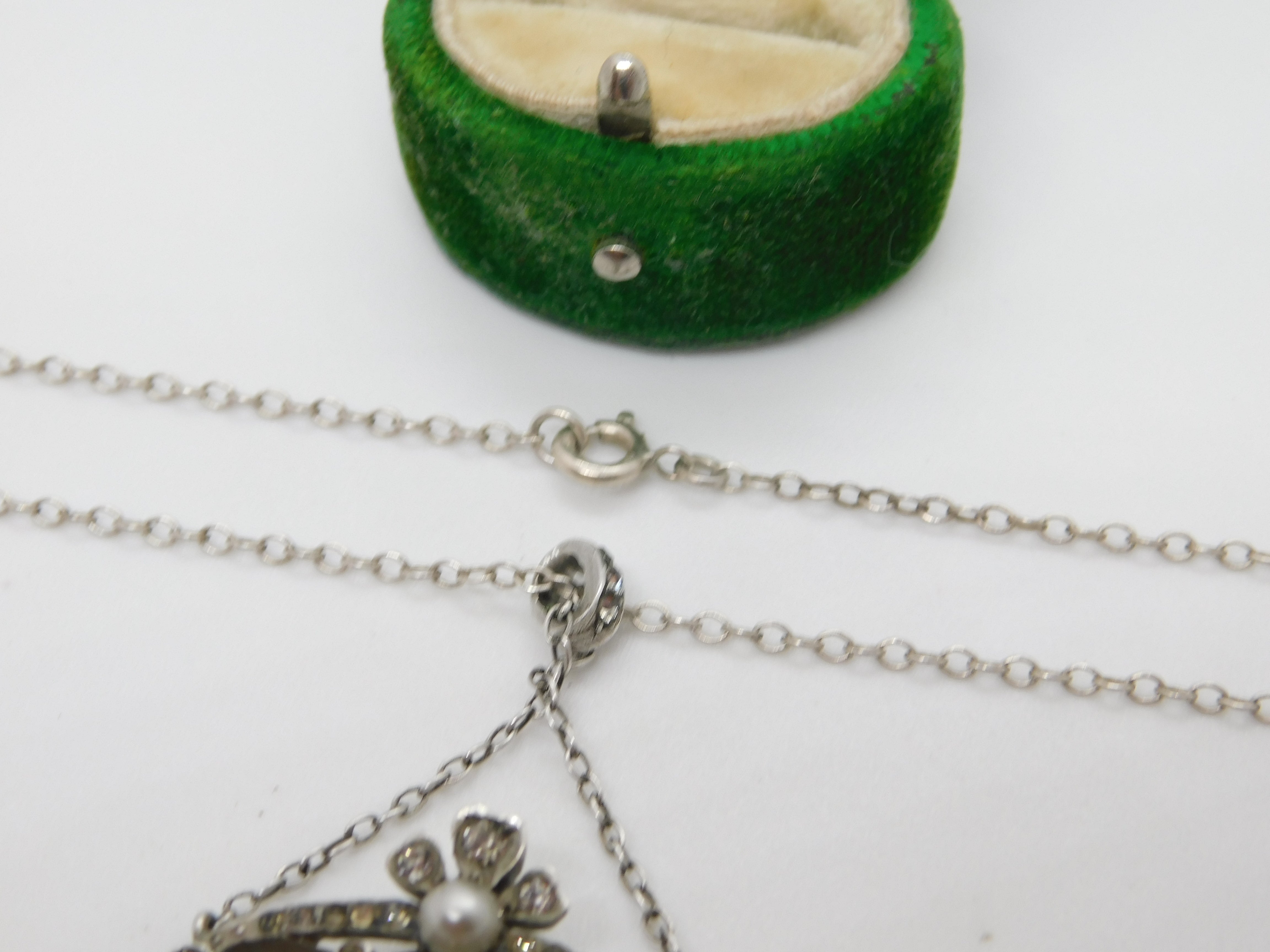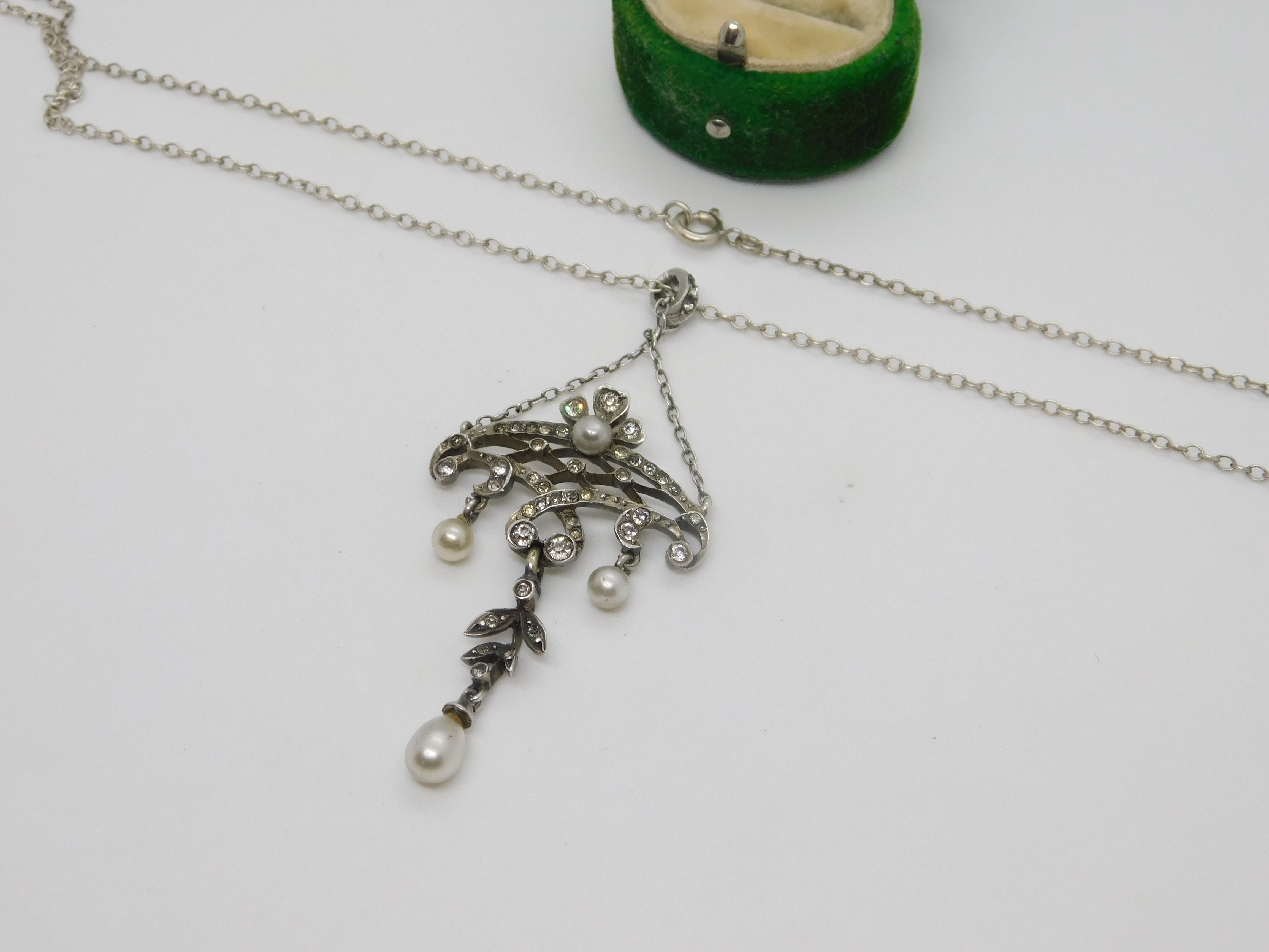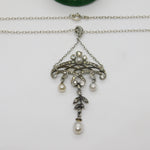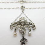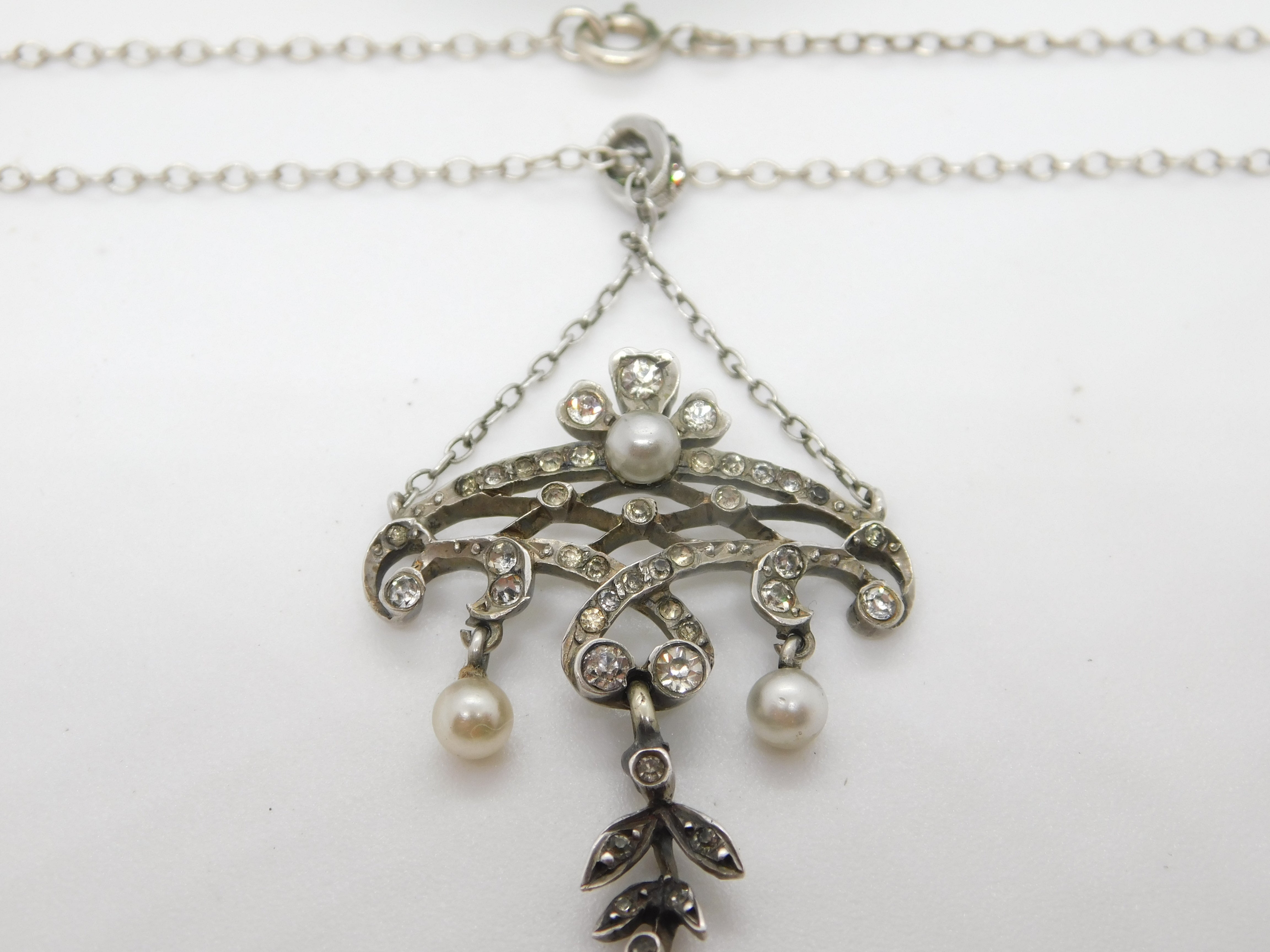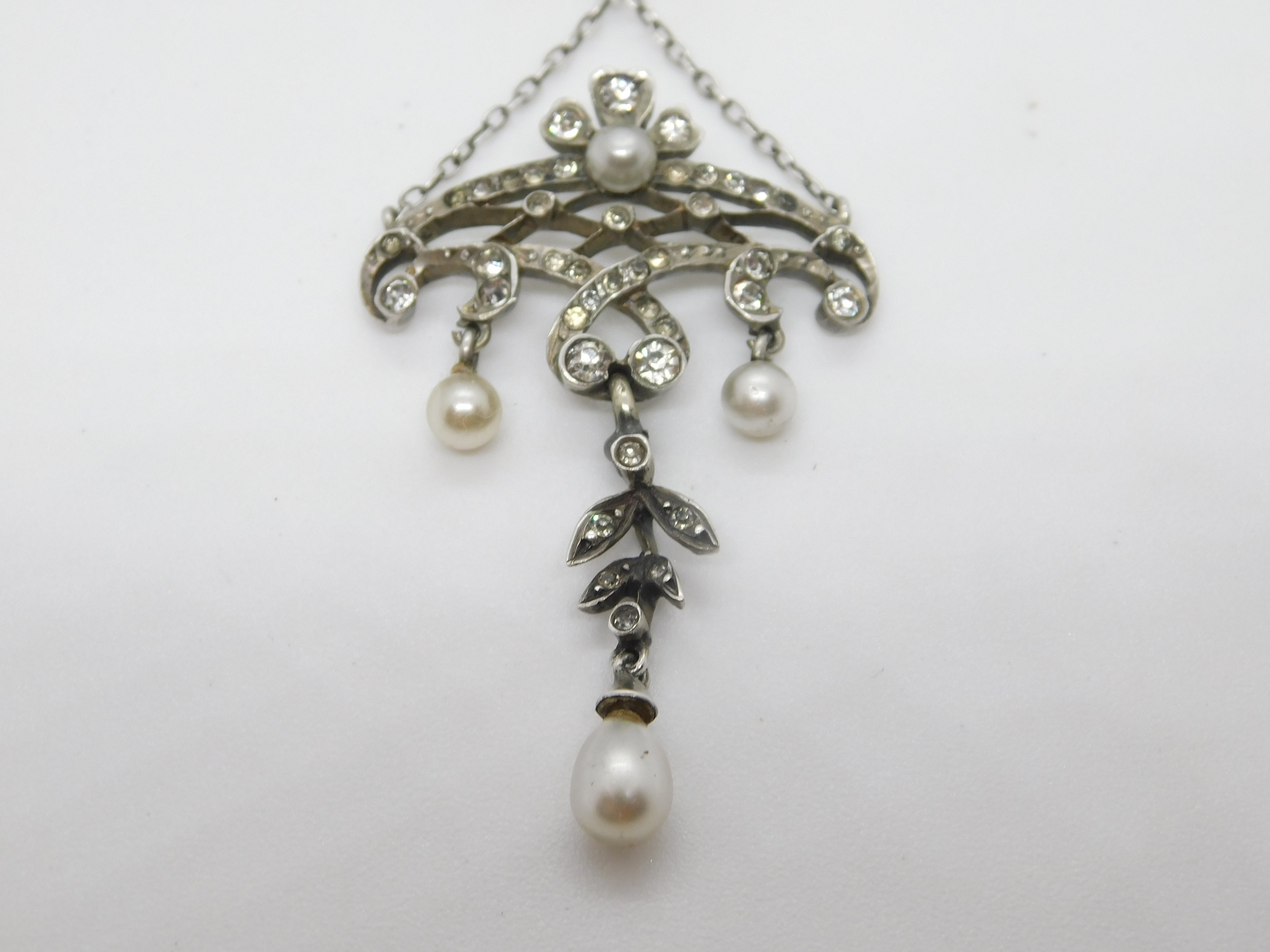 Belle Époque Sterling Silver, Paste & Pearl Set Lavalier Drop Necklace c1890