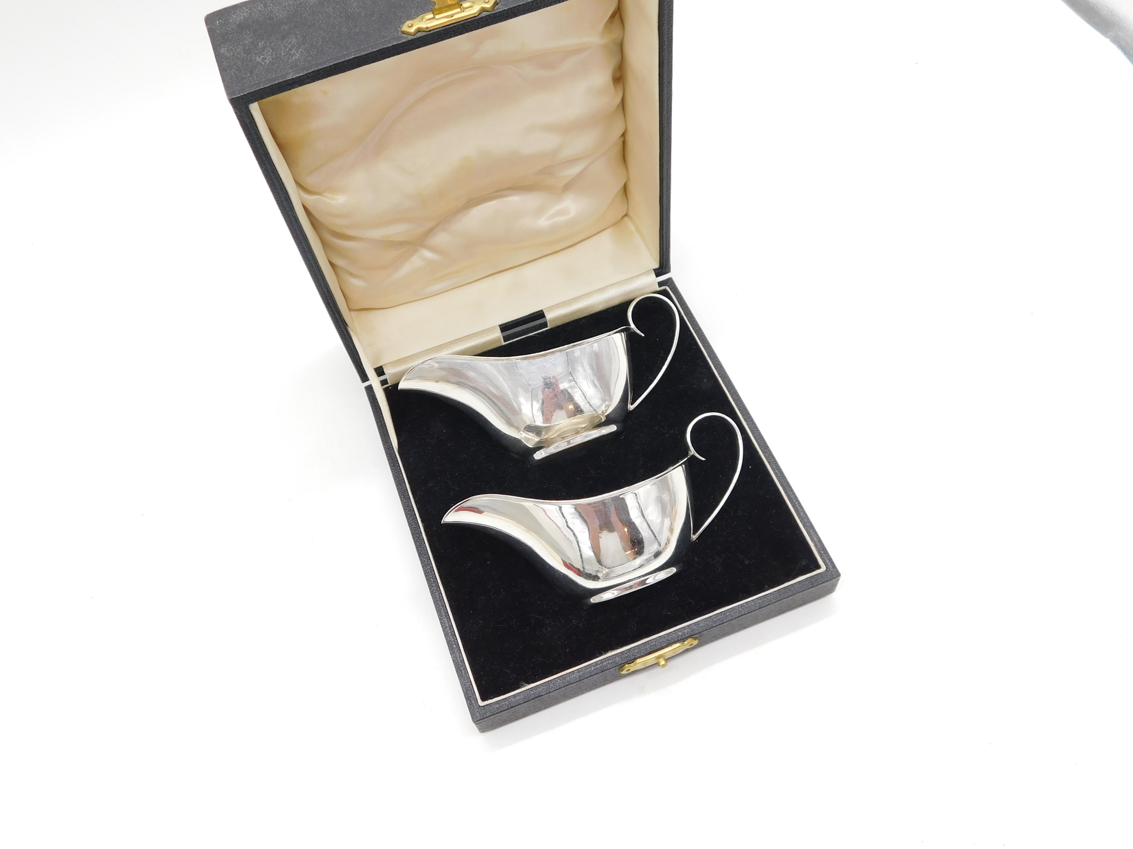 Boxed Pair of Sterling Silver Sauce Boats Antique 1939 Birmingham Art Deco
