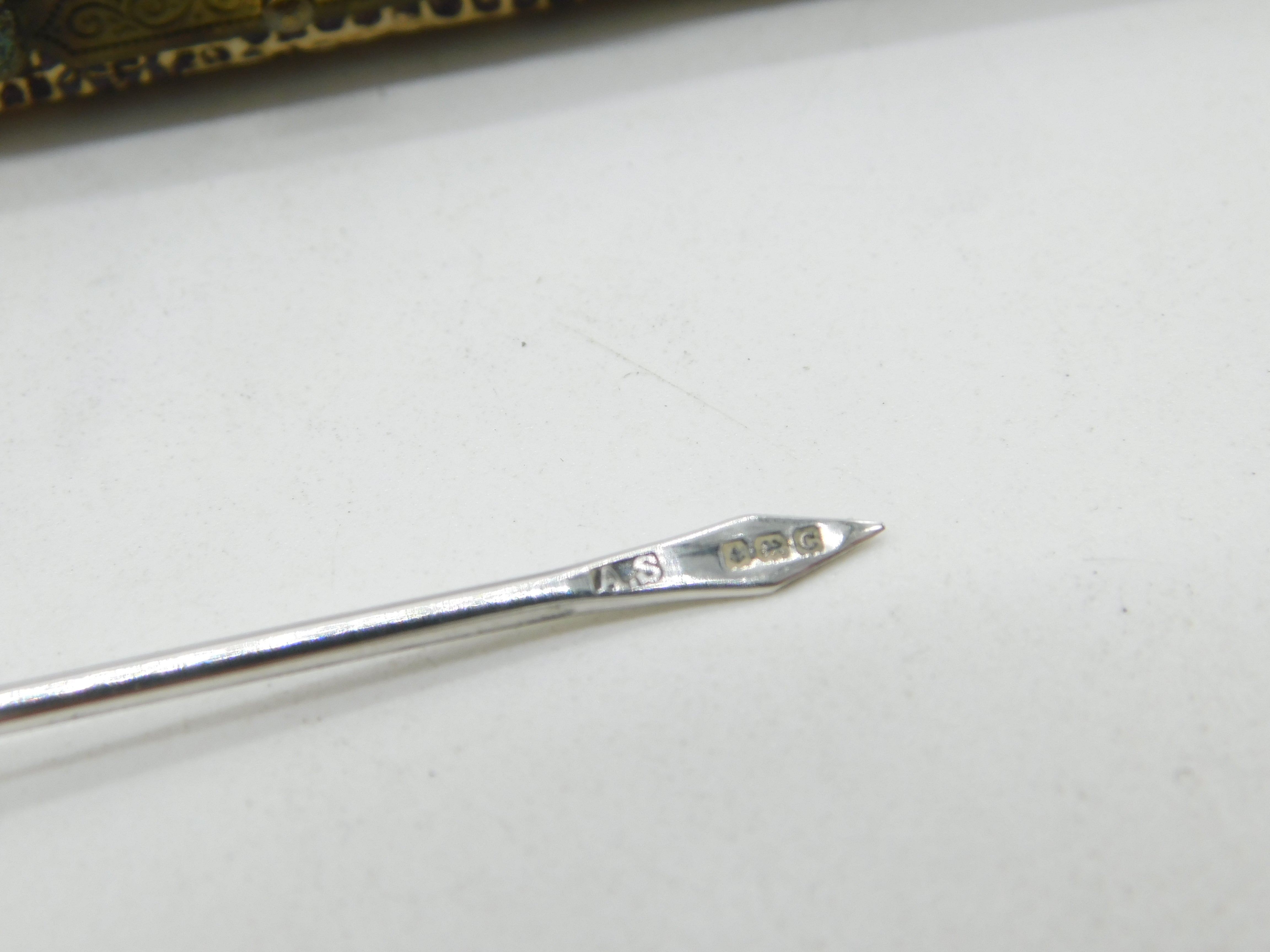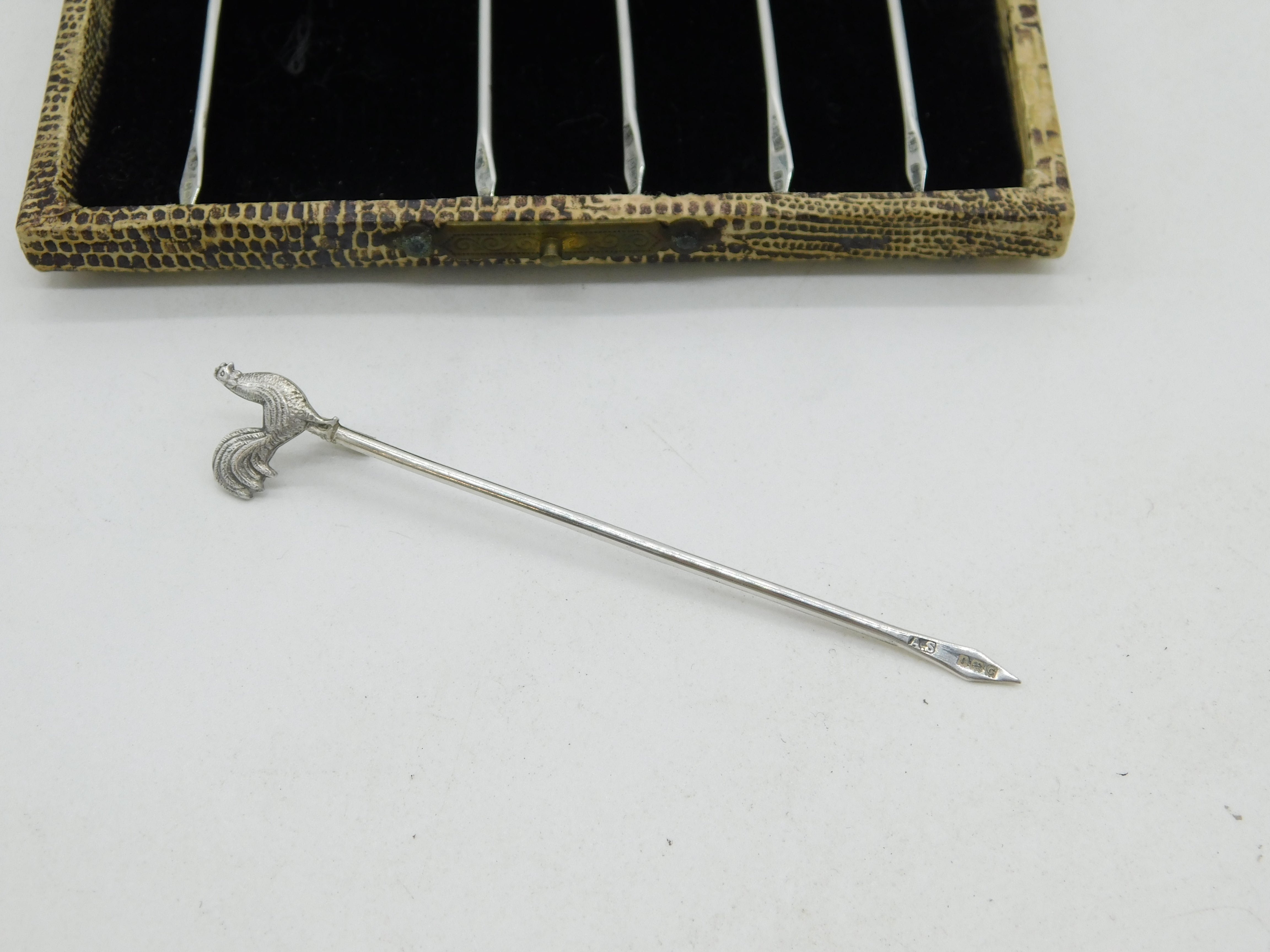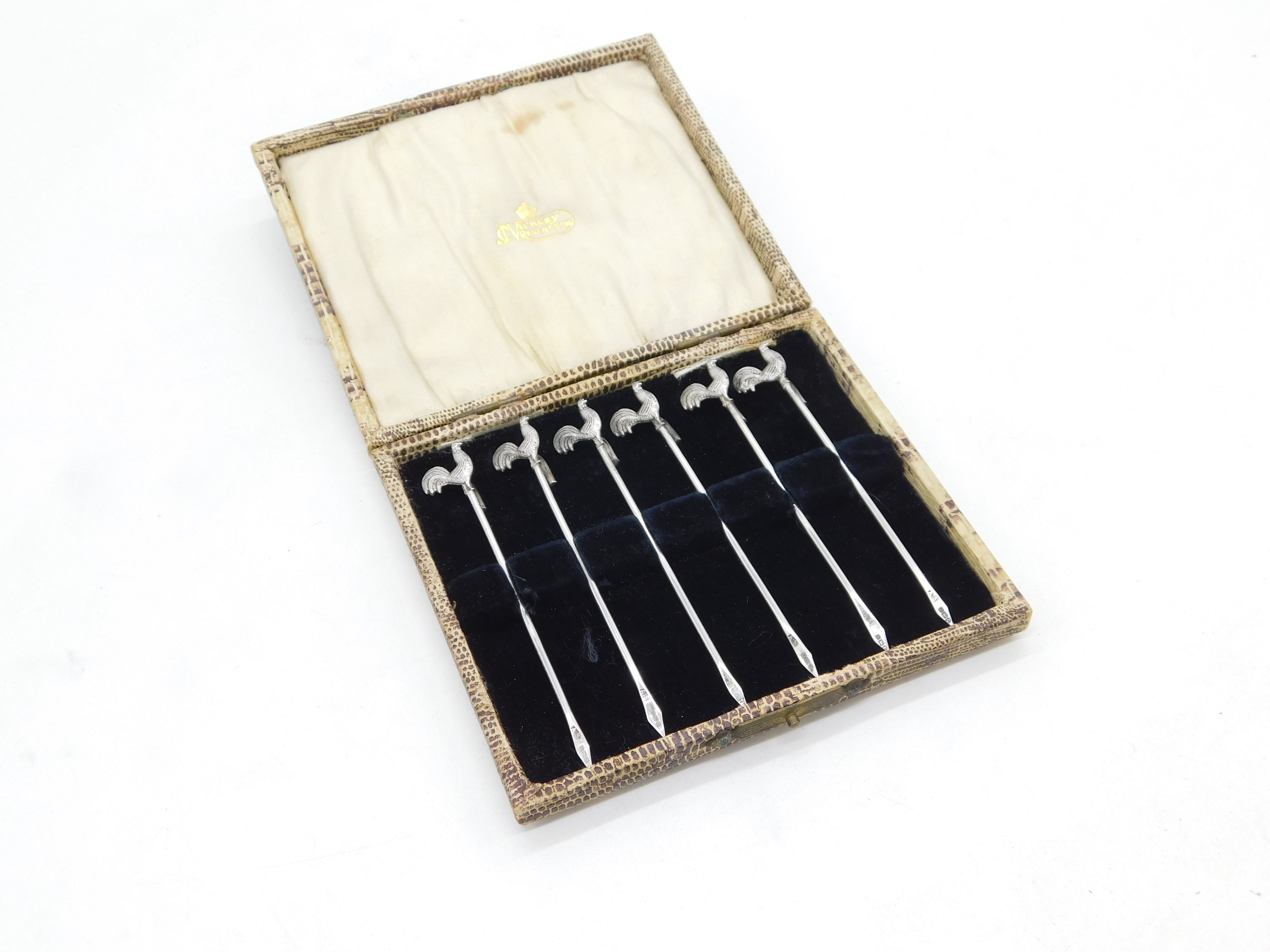 Boxed Set of Sterling Silver Chicken Terminal Cocktail Sticks Antique 1902 Birmingham