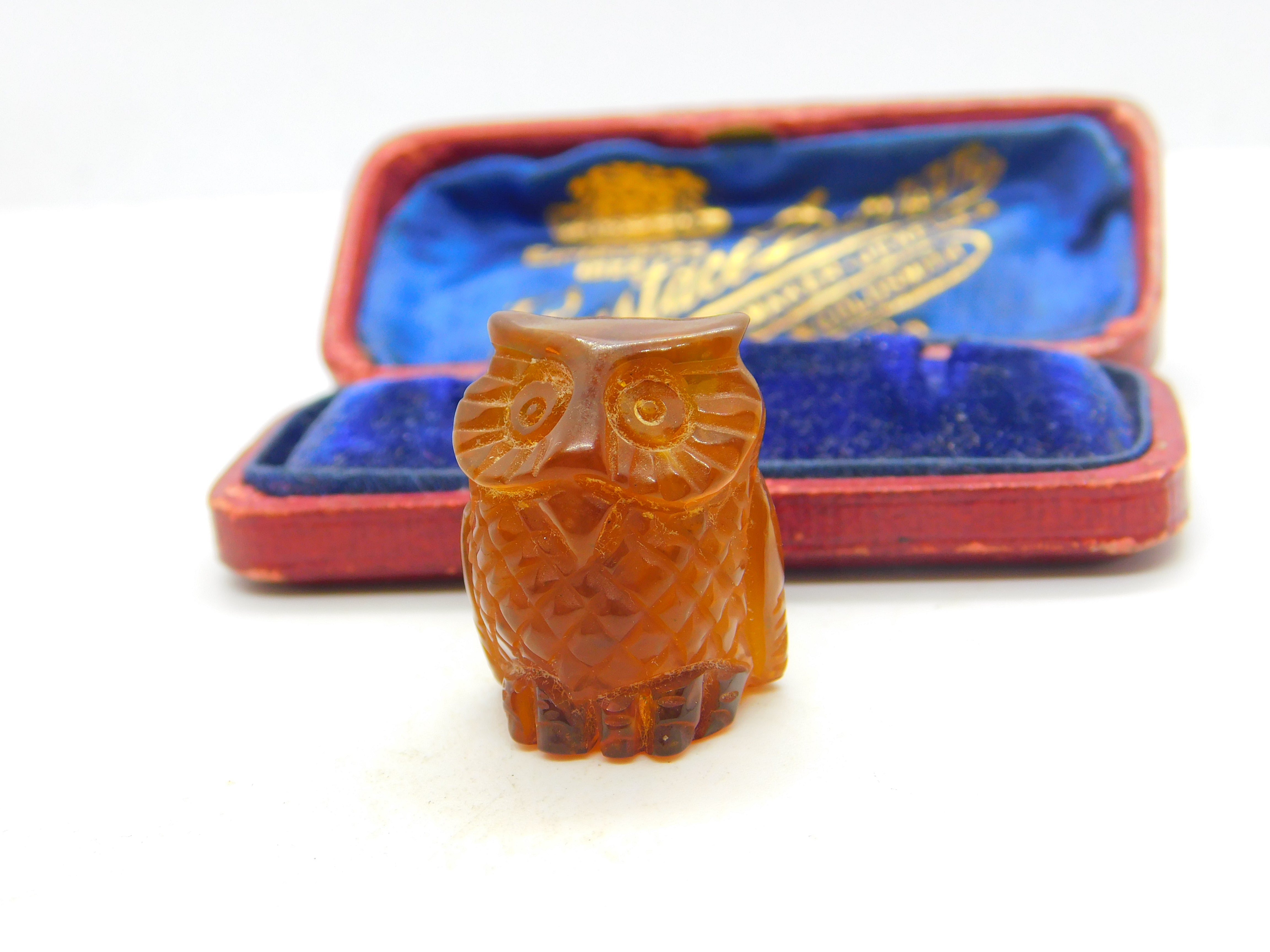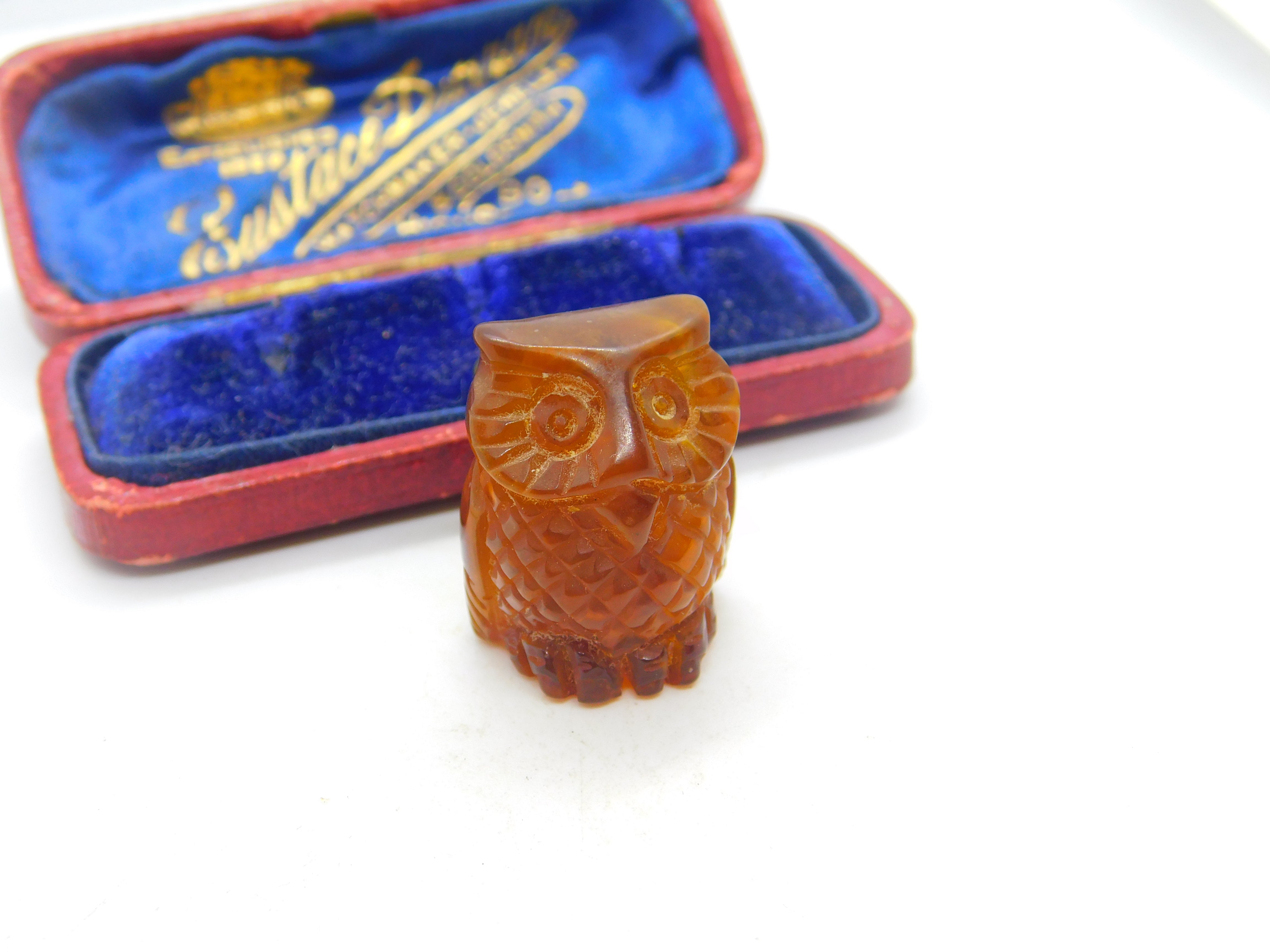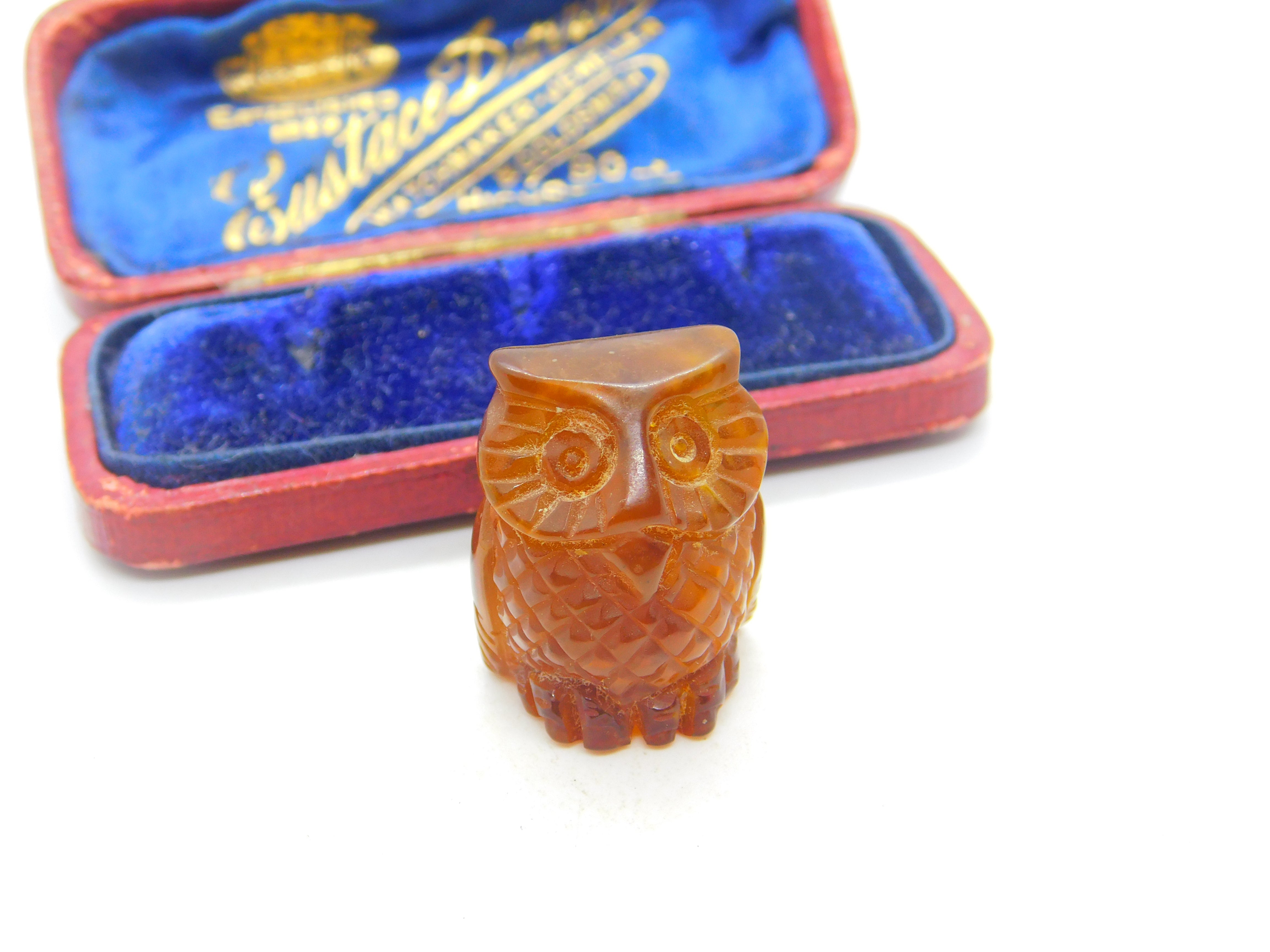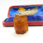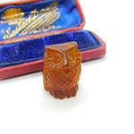 Carved Natural Baltic Amber Wise Owl Figure Antique c1920 Art Deco